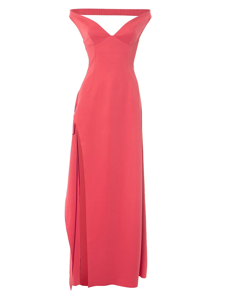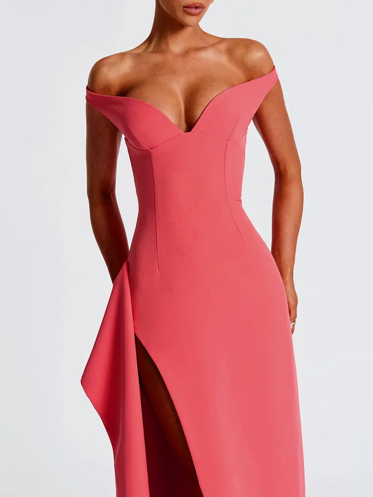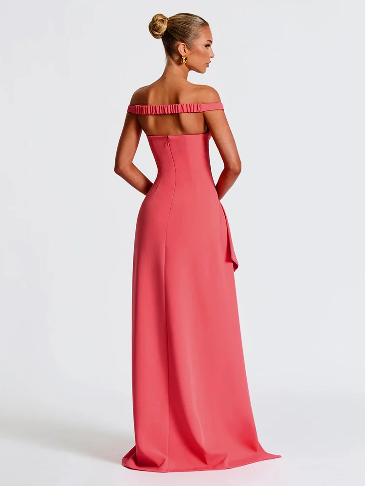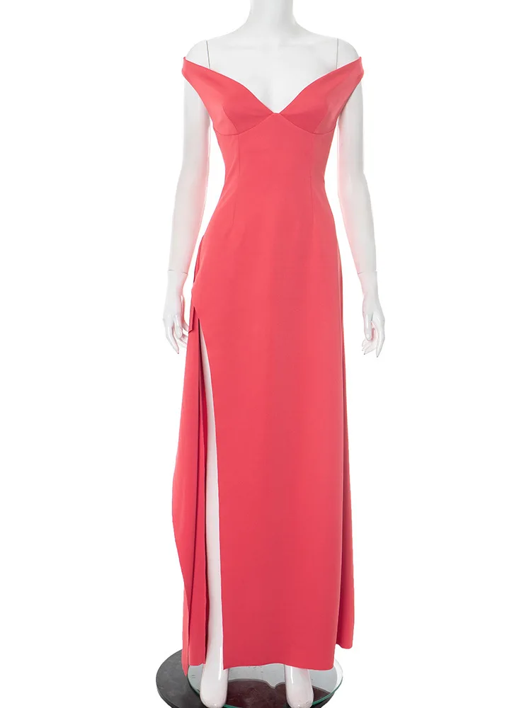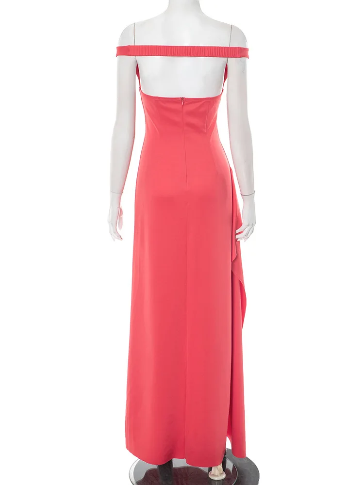 Off-shoulder Backless Split Sexy Maxi Dress Women Gown Pink Summer New Zipper Strapless Evening Club Party Long Dress