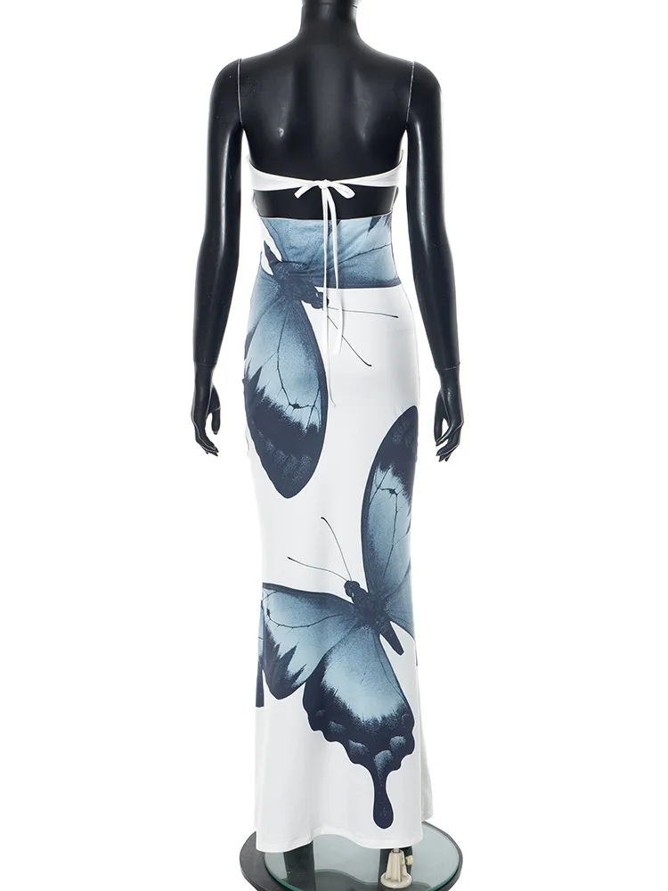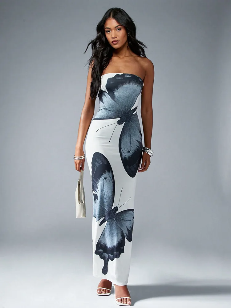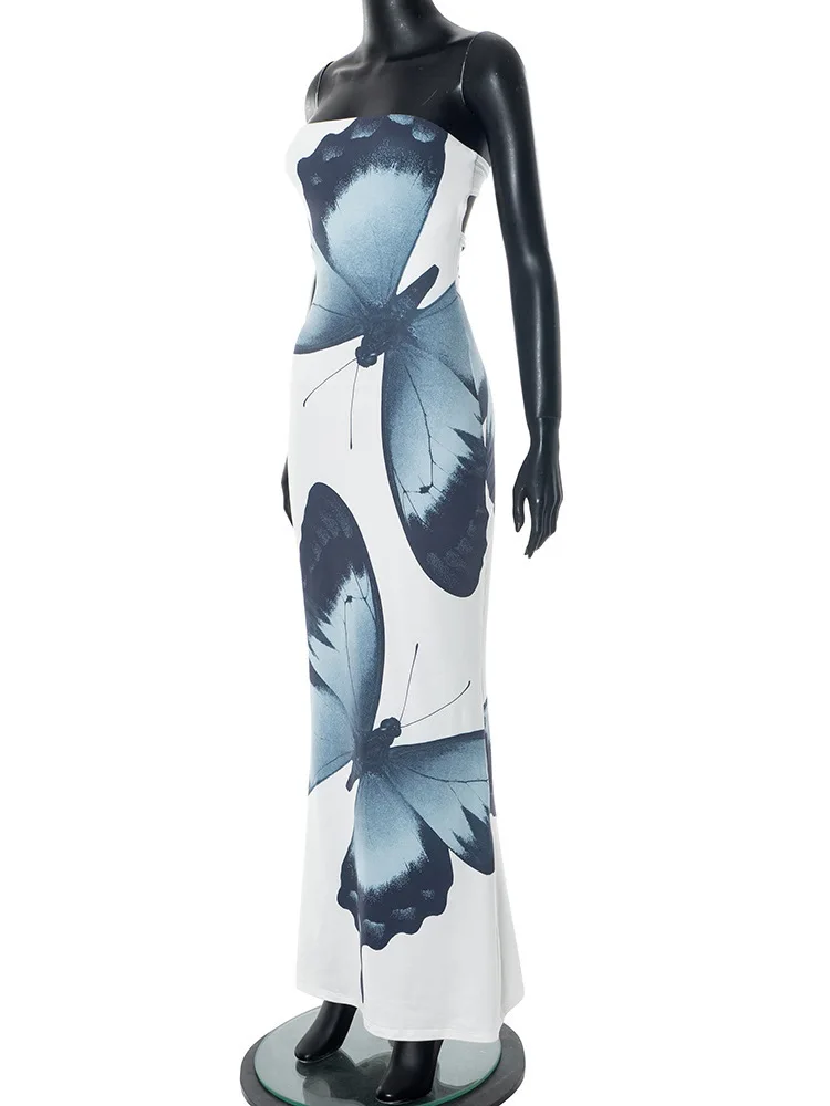 Off-shoulder Print Sexy Maxi Dress Women Summer New Strapless Sleeveless Backless High Waist Beach Holiday Long Dress