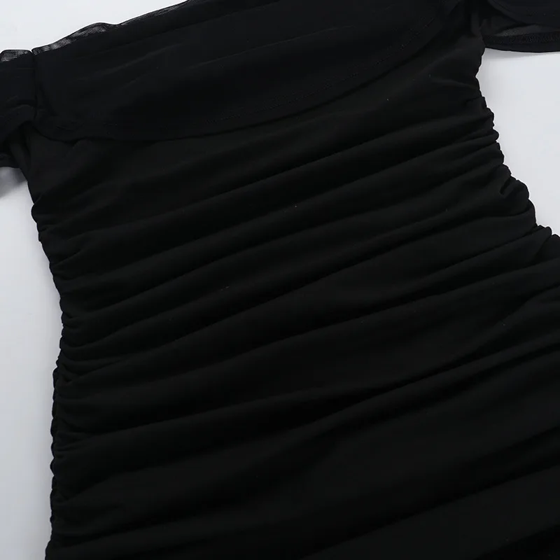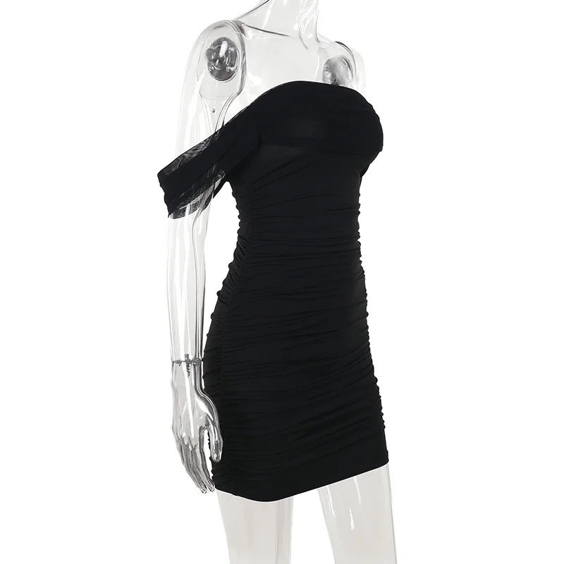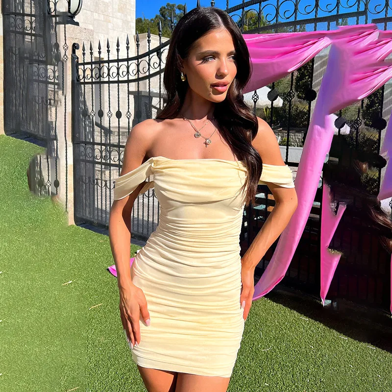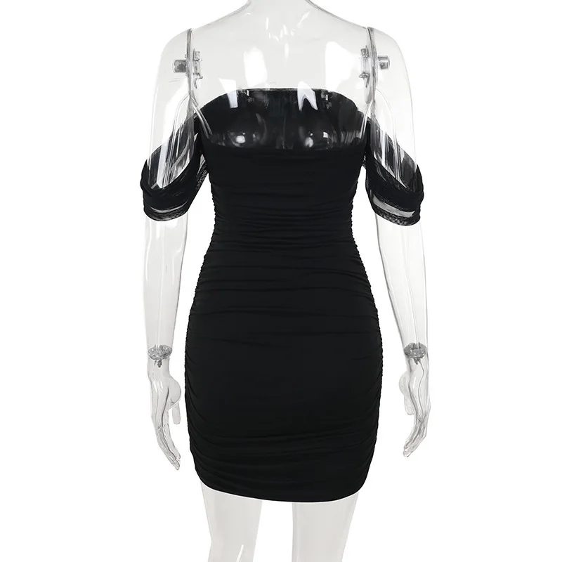Off Shoulder Short Sleeve Mini Dress For Women Sexy Ruched Backless Bodycon Club Party Dresses 2025 Elegant Vestido