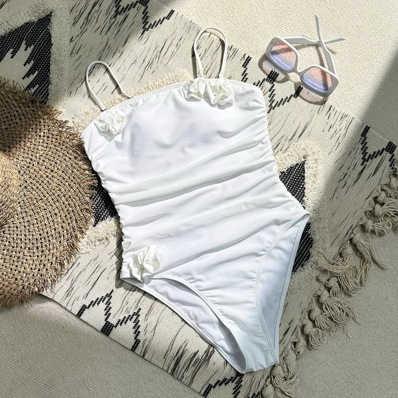One Piece Swimsuit Women 2024 Sexy 3D Flower Swimwear Cut Out Bathing Suit for Women High Waist Monokini S-XL