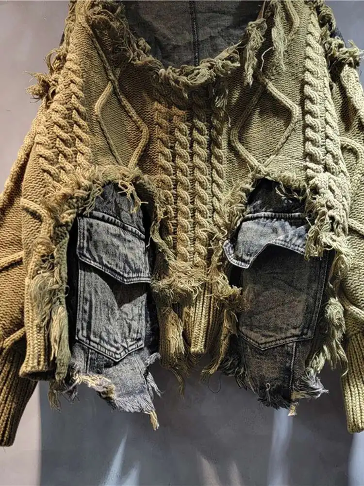 Orange Denim Big Size Knitting Sweater Round Neck Long Sleeve Women Pullovers New Fashion Tide Spring Autumn 2025 16U1329
