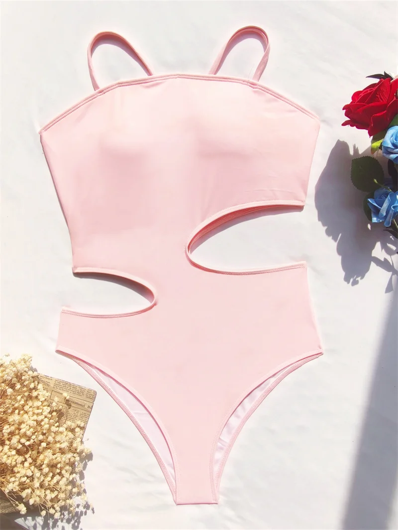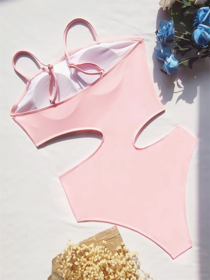 Pink One Piece Swimsuit Hollow Out Swimwear for Women Sexy Bathing Suit High Waist Swimwear Push Up Bodysuit