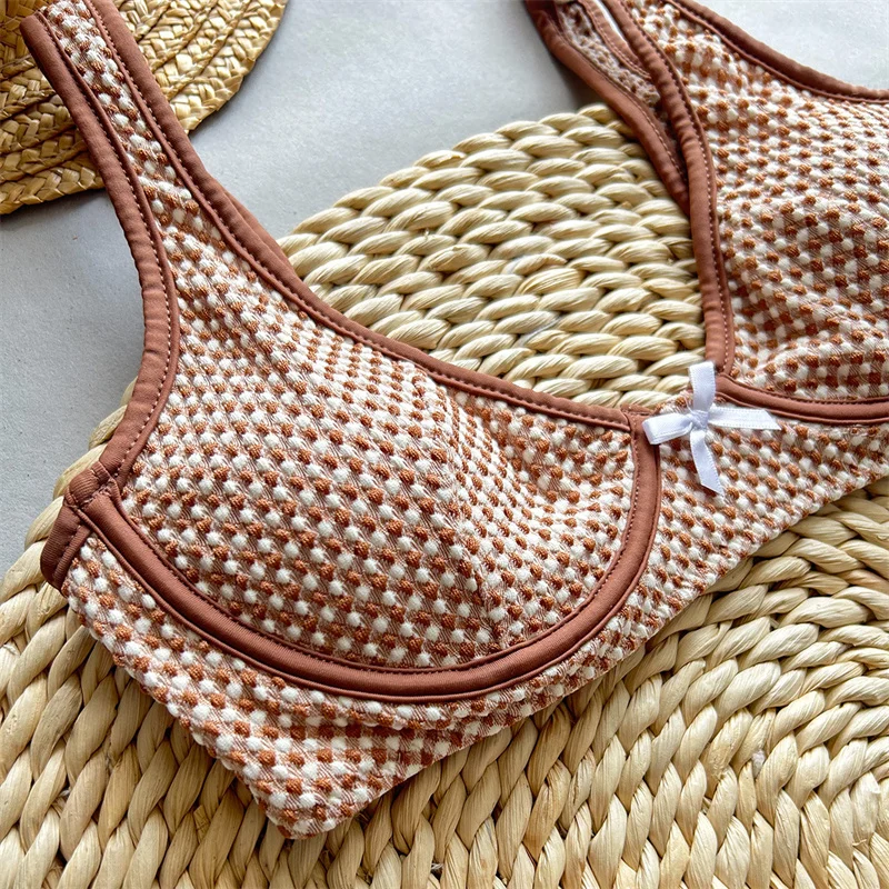 Plaid Bandeau Swimwear Underwire Bikini Sets 2024 Sexy Backless Women Swimsuit Thong Biquini Brazilian Bathing Suit