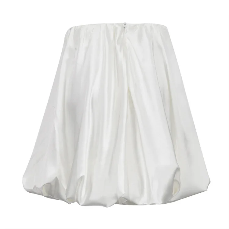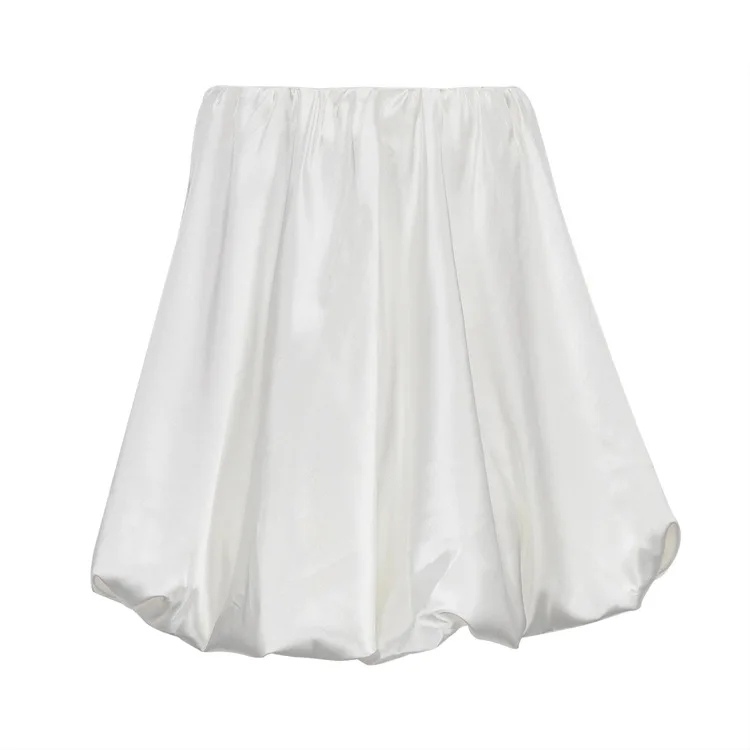 Pleated A-line Skirt White Women Ruffles Sweet Hottie Preppy Style Elastic Elastic Waist Slim Thin SimpleCasual Summer Wholesale