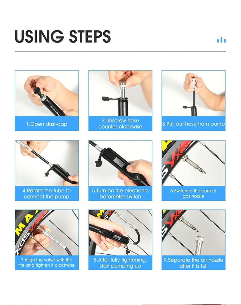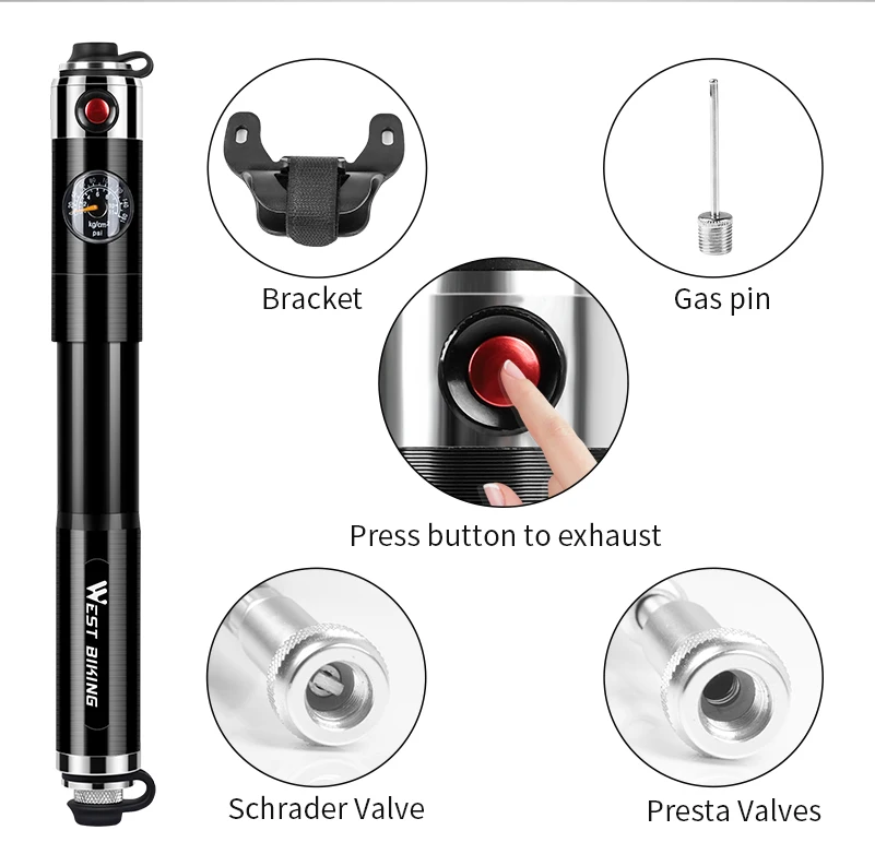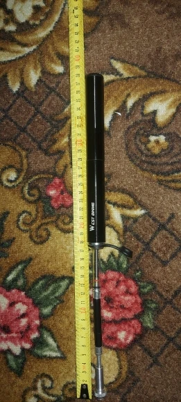 Thank you. For a small small, compact size, quite a good pump. Pumped up a completely deflated camera in 3-5 minutes. Suitable for Shredder and throne. Pump itself telescope. Very well done. Material is aluminum. Does not allow air anywhere, does not dangle. Perfect, smooth, smooth, no scratches. The only one scared a little as the transparent hose disappeared from the inside, where the monometer, but it turned out to be a trifle, the inner part unfolds and pushed a little, pulled the inside where this hose is screwed in, twisted tightly and everything is fine. Probably initially poorly delayed, but this is a trifle, not essential. Shakes easily the dimensions in the photo. Satisfied. I forgot to add, minus just a tight-fitting rubber protective plug, does not hold well, not tight, but it does not affect the work.