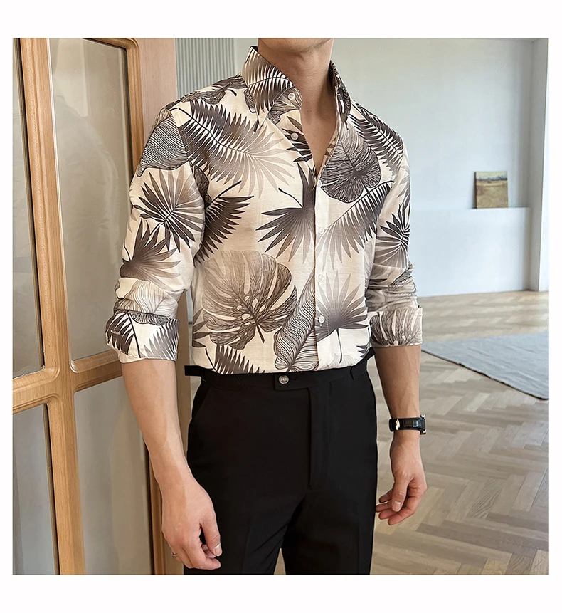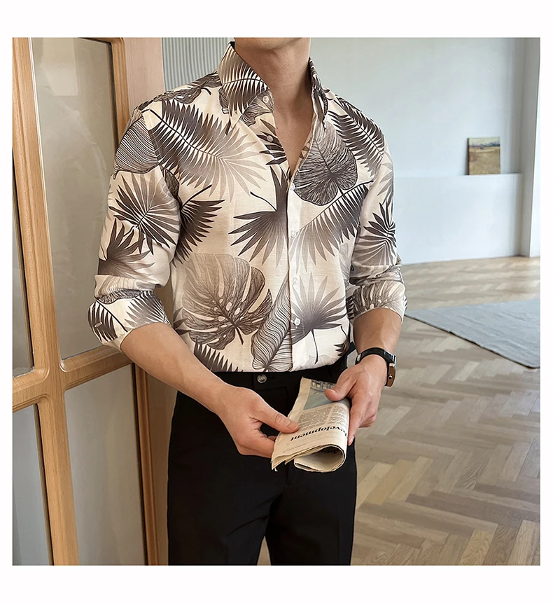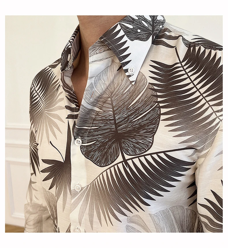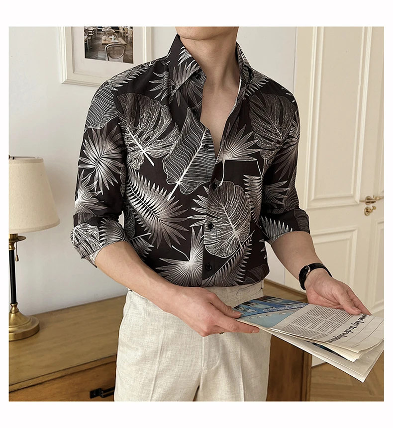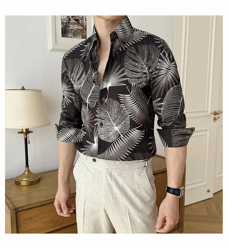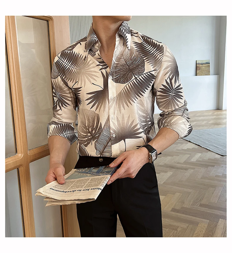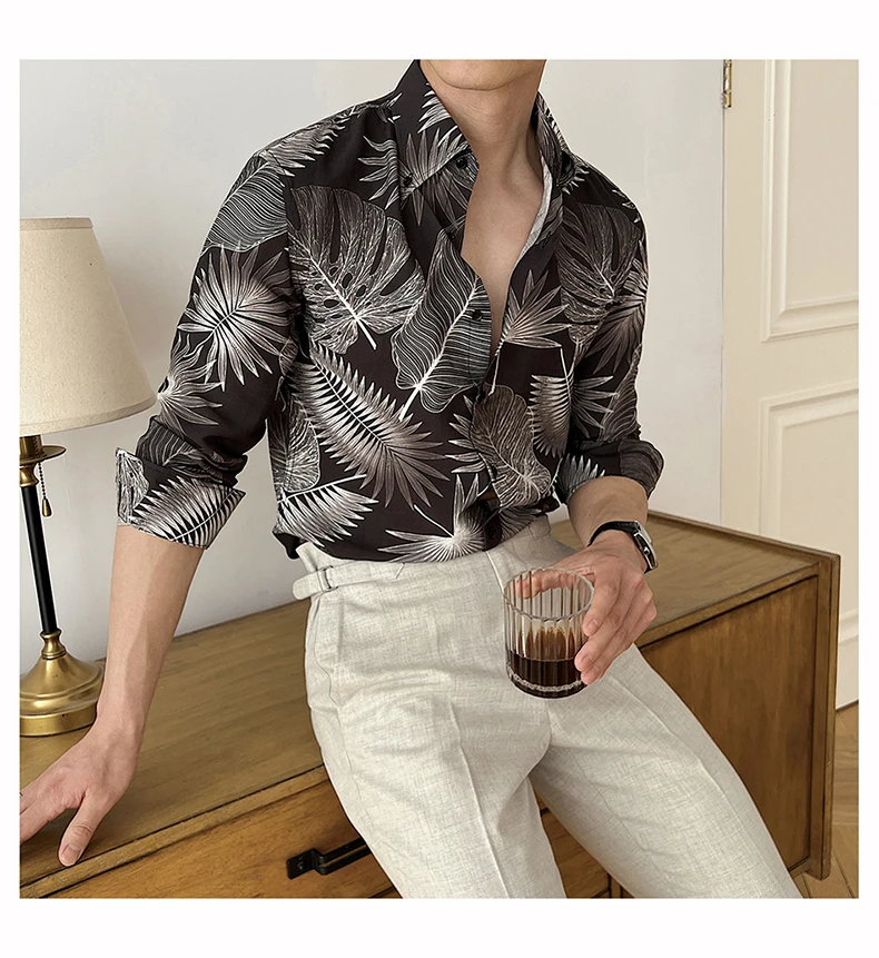 Printing Design Men's Shirts New British Long Sleeve Clothing Loose Lape Collar Single Breasted Male Top Summer 2025 9W1574