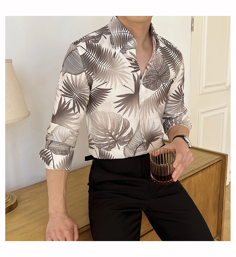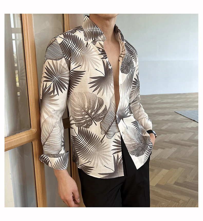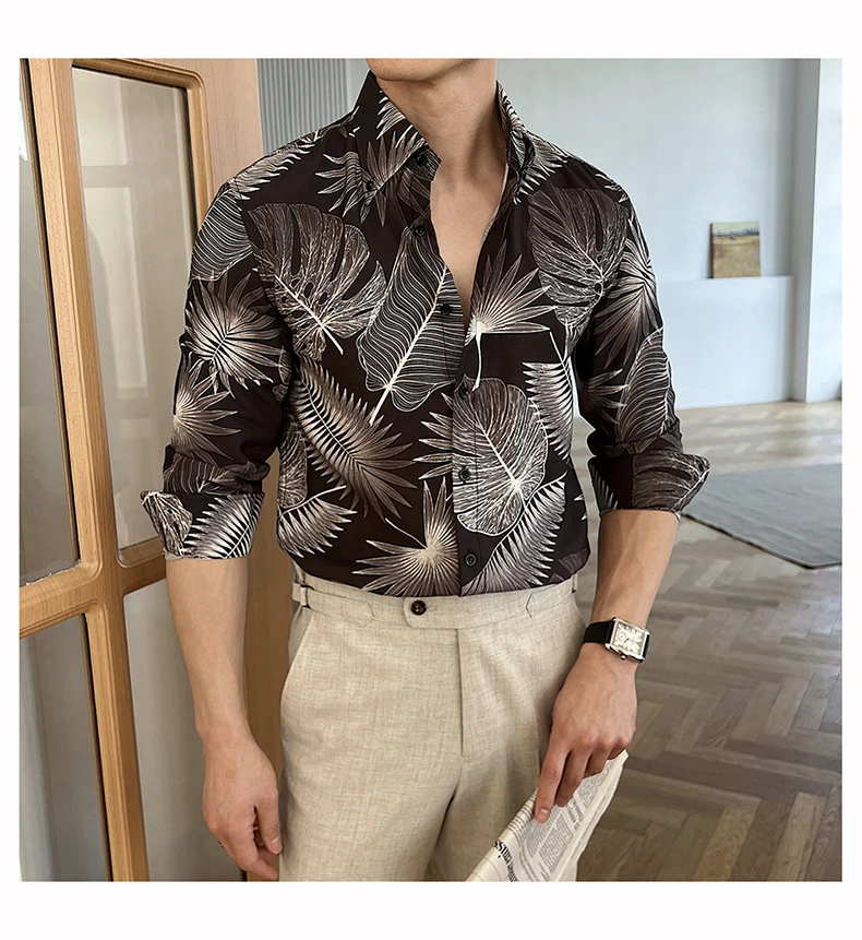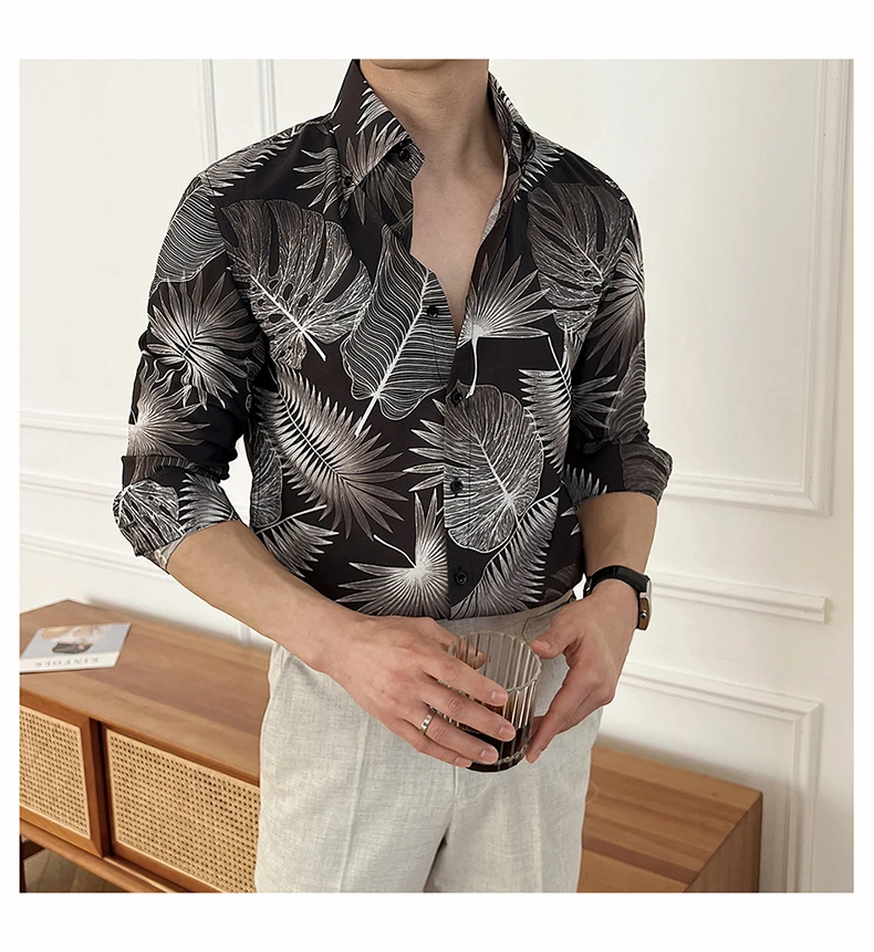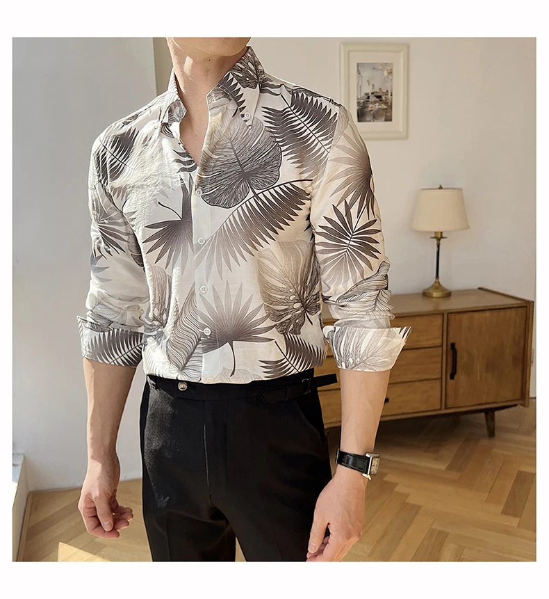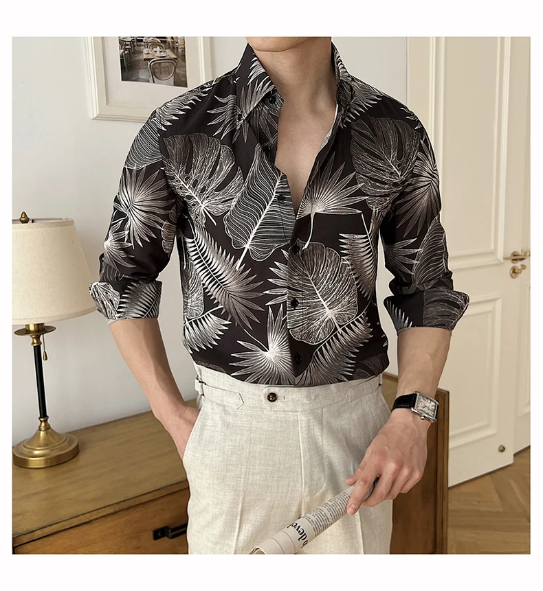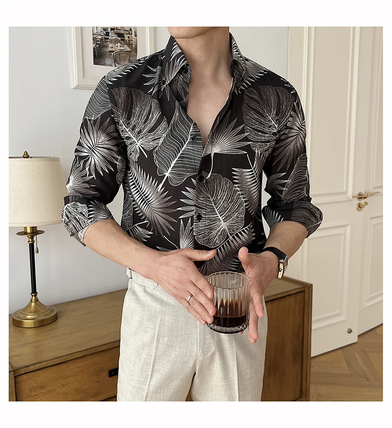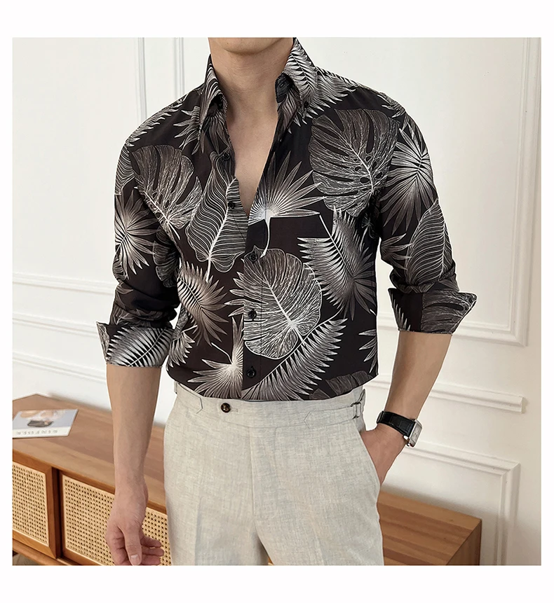 Printing Design Men's Shirts New British Long Sleeve Clothing Loose Lape Collar Single Breasted Male Top Summer 2025 9W1574