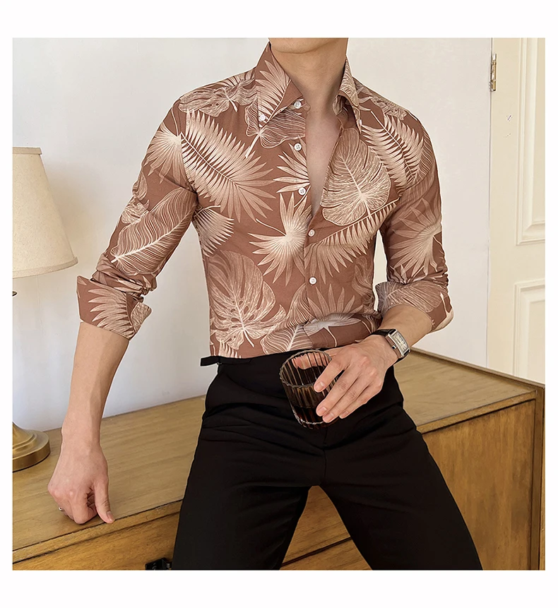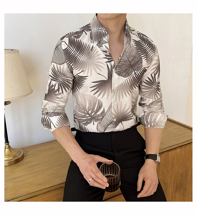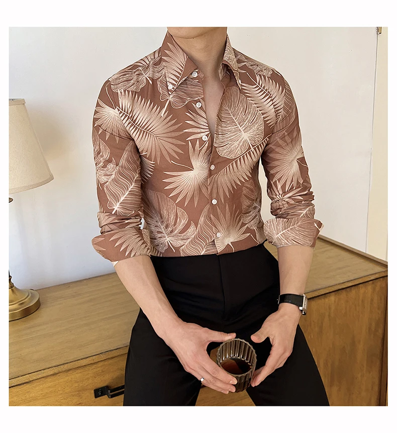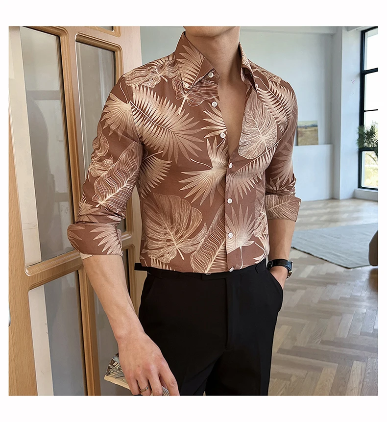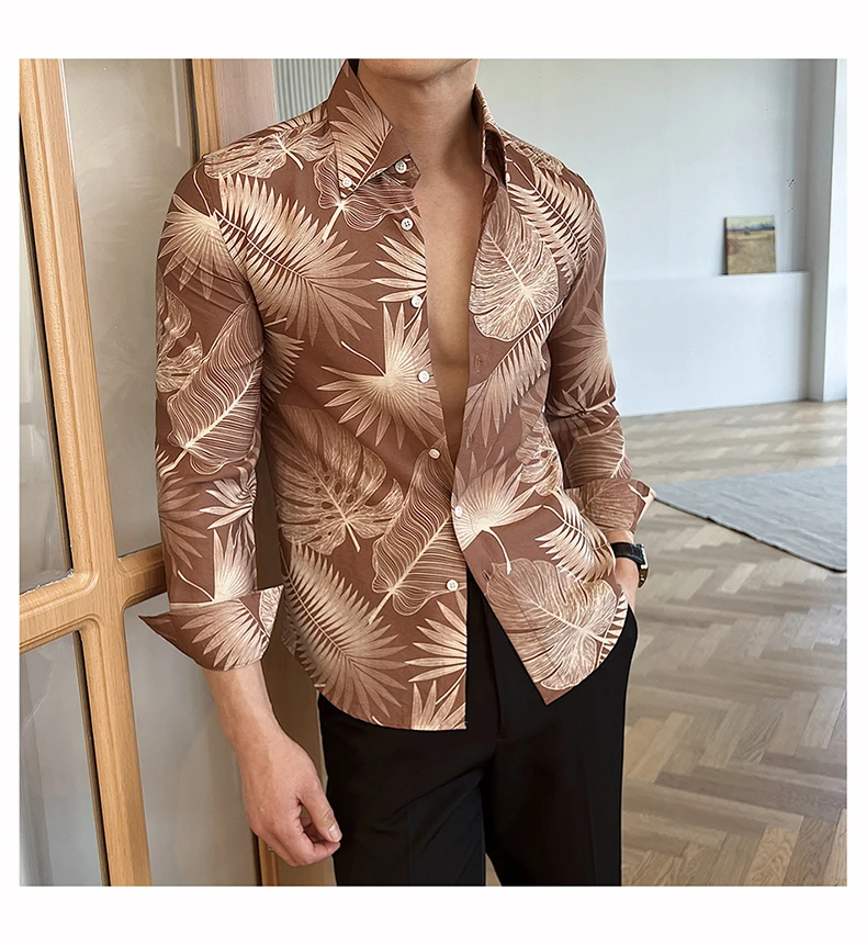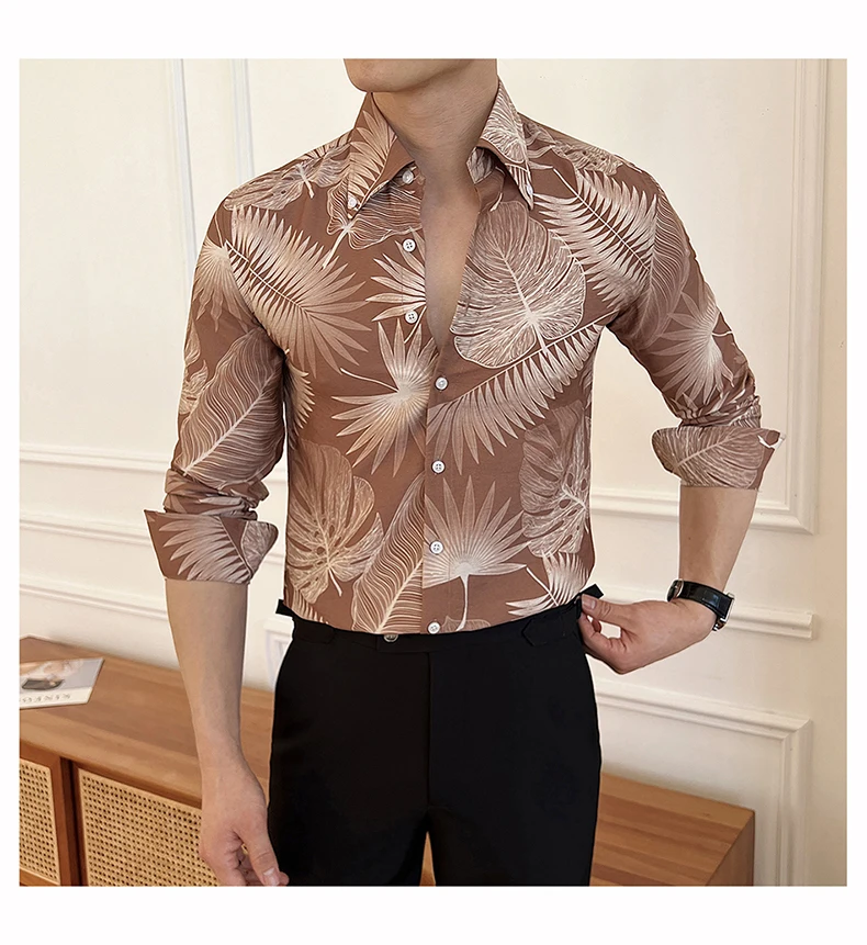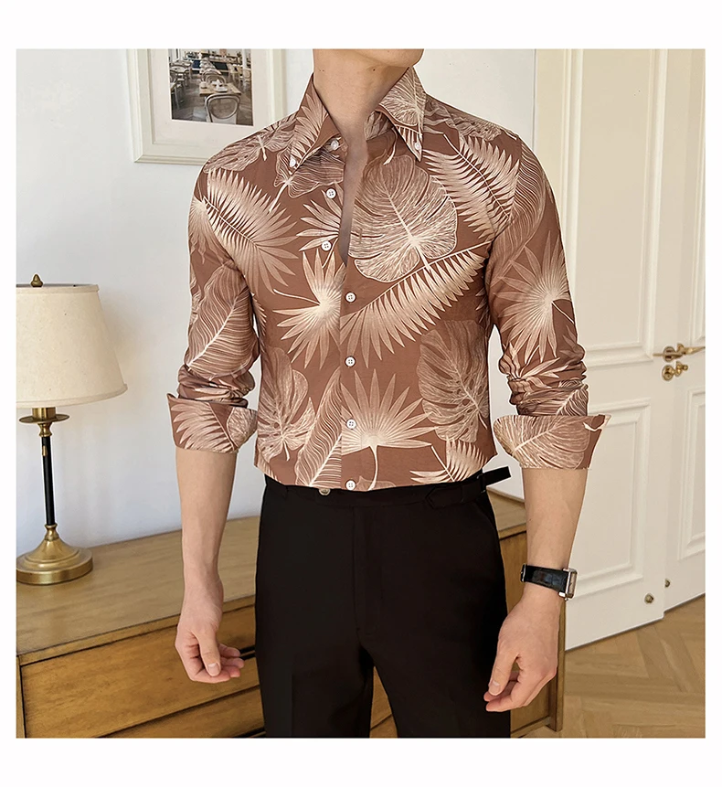 Printing Design Men's Shirts New British Long Sleeve Clothing Loose Lape Collar Single Breasted Male Top Summer 2025 9W1574