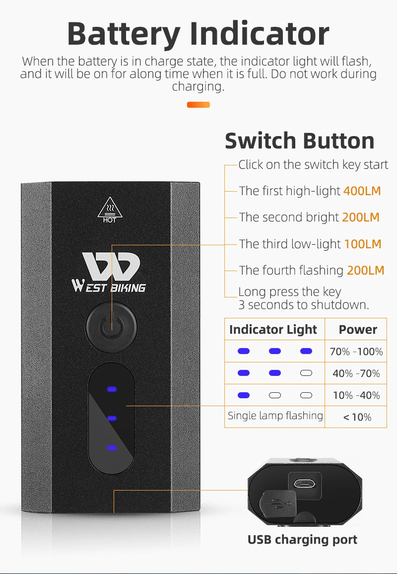 Light mode:Strong Light/Medium Bright/Low Bright/Flashing