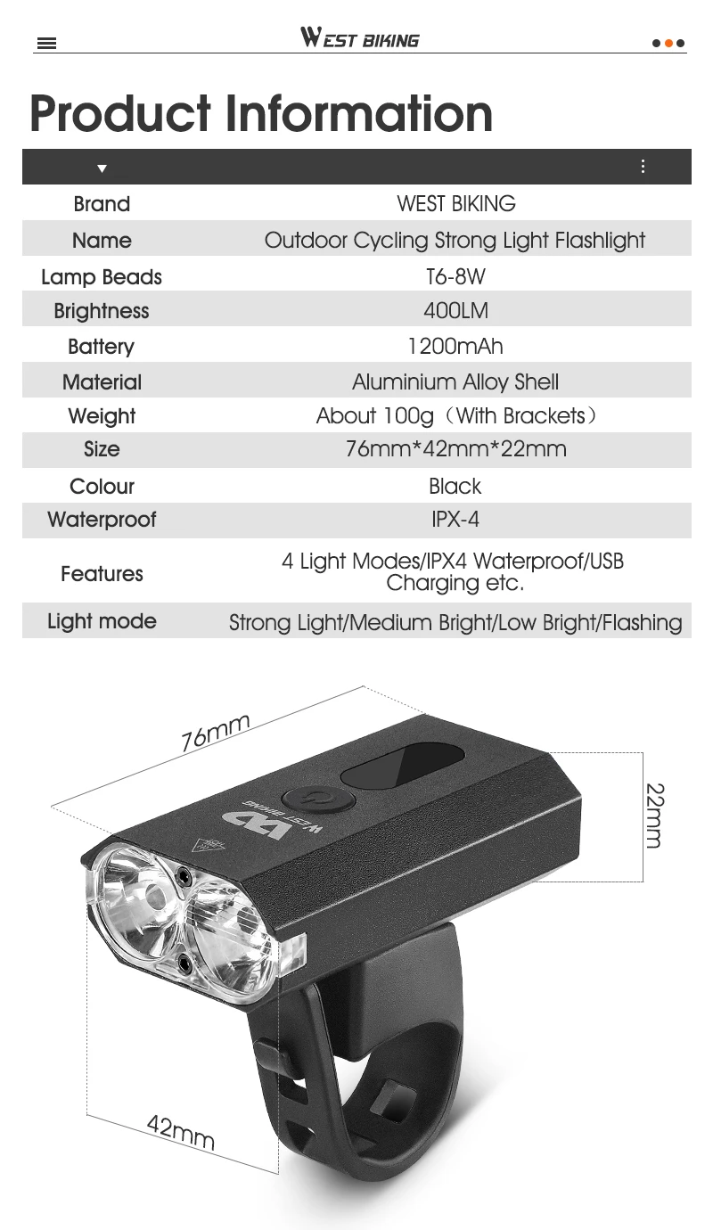 Strong Light 400 Lumens-Lasting 2.5 Hours
