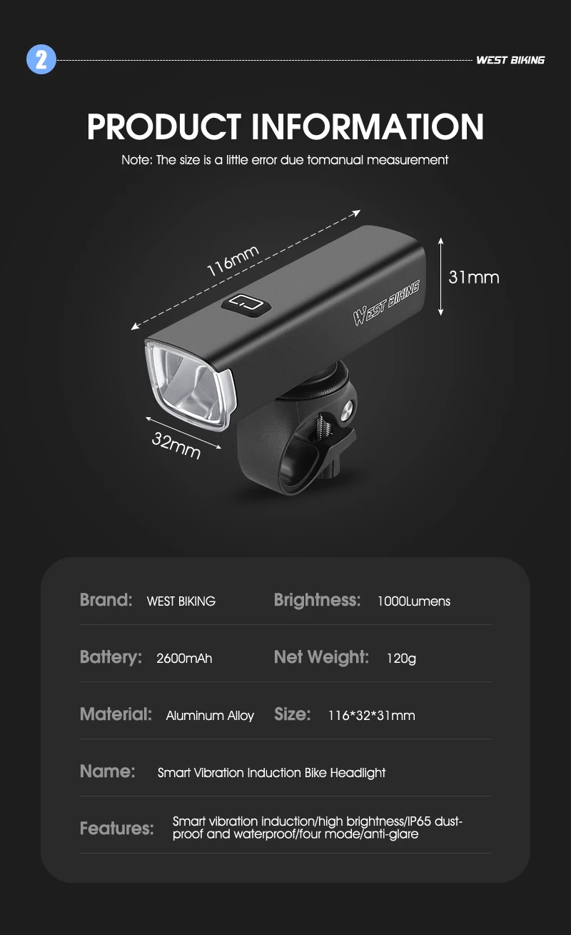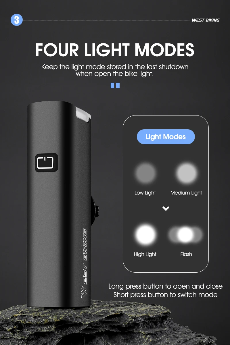 Memory Function:Keep the light mode stored in the last shut down when open the bike light.