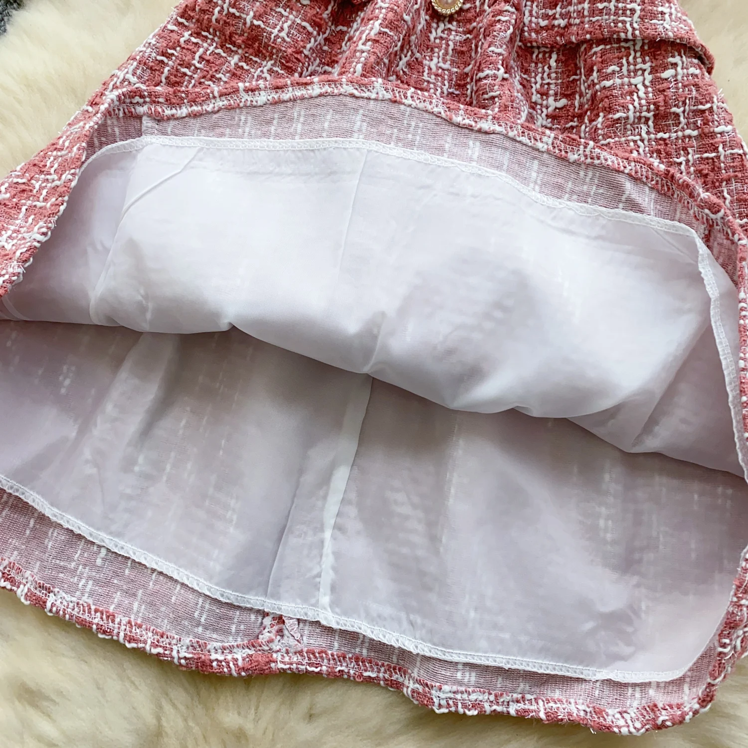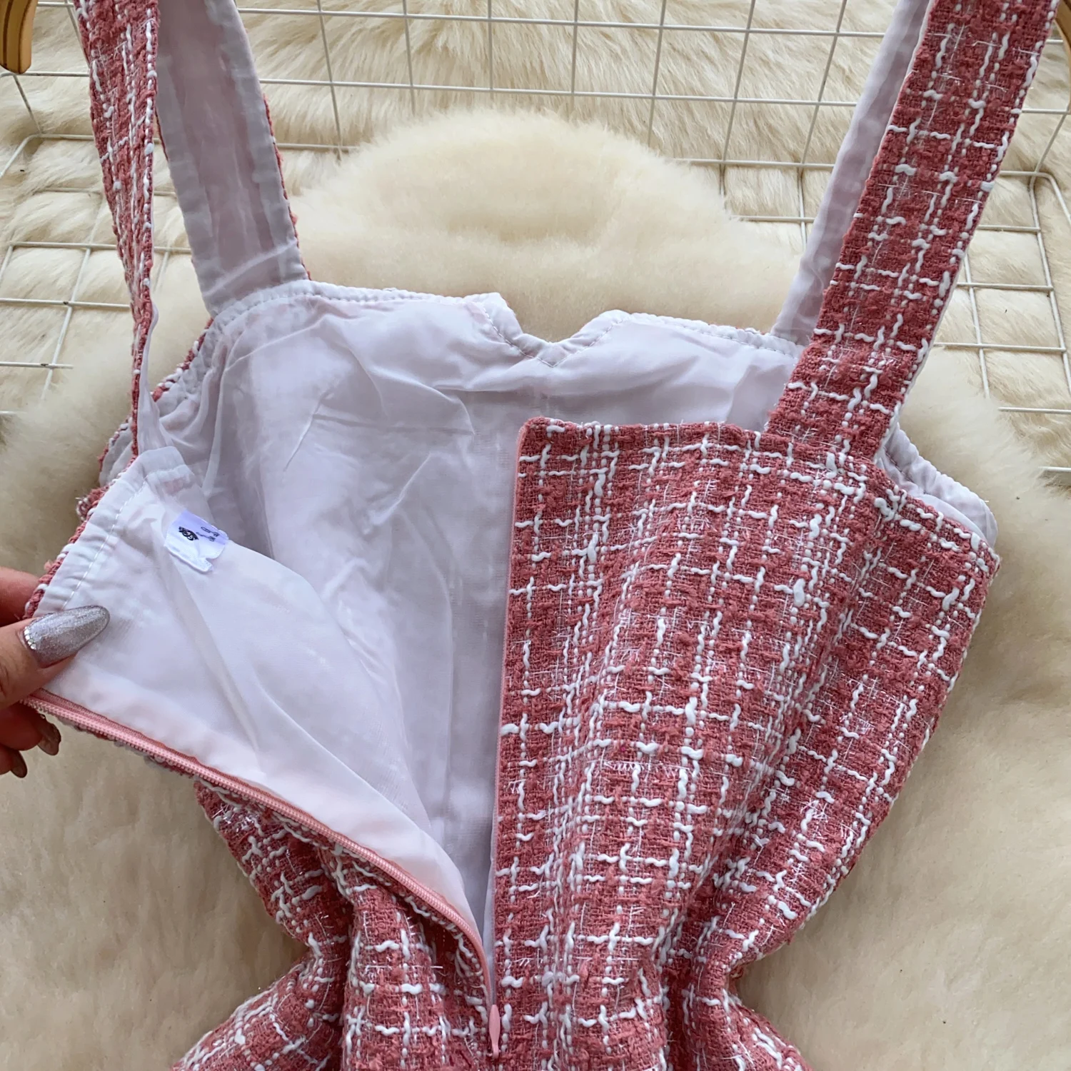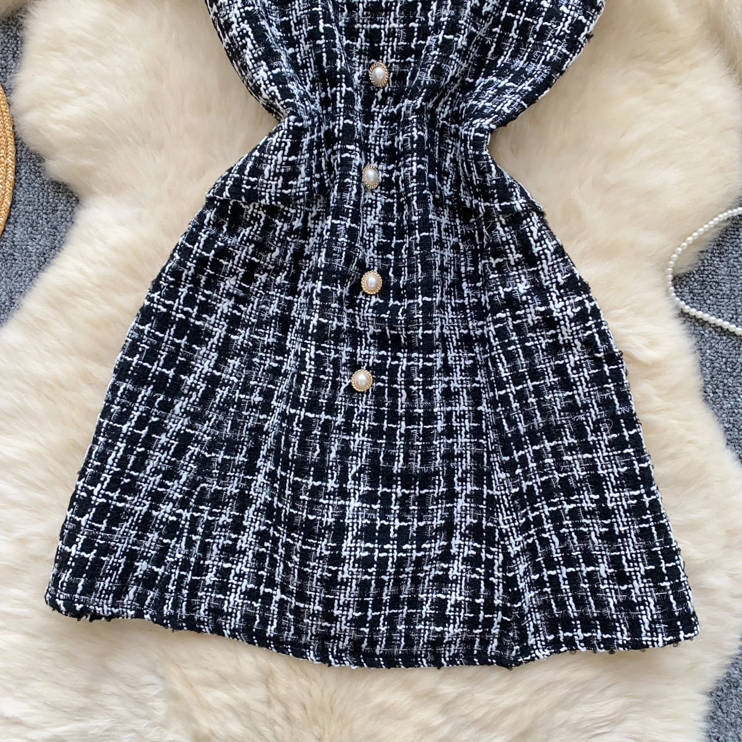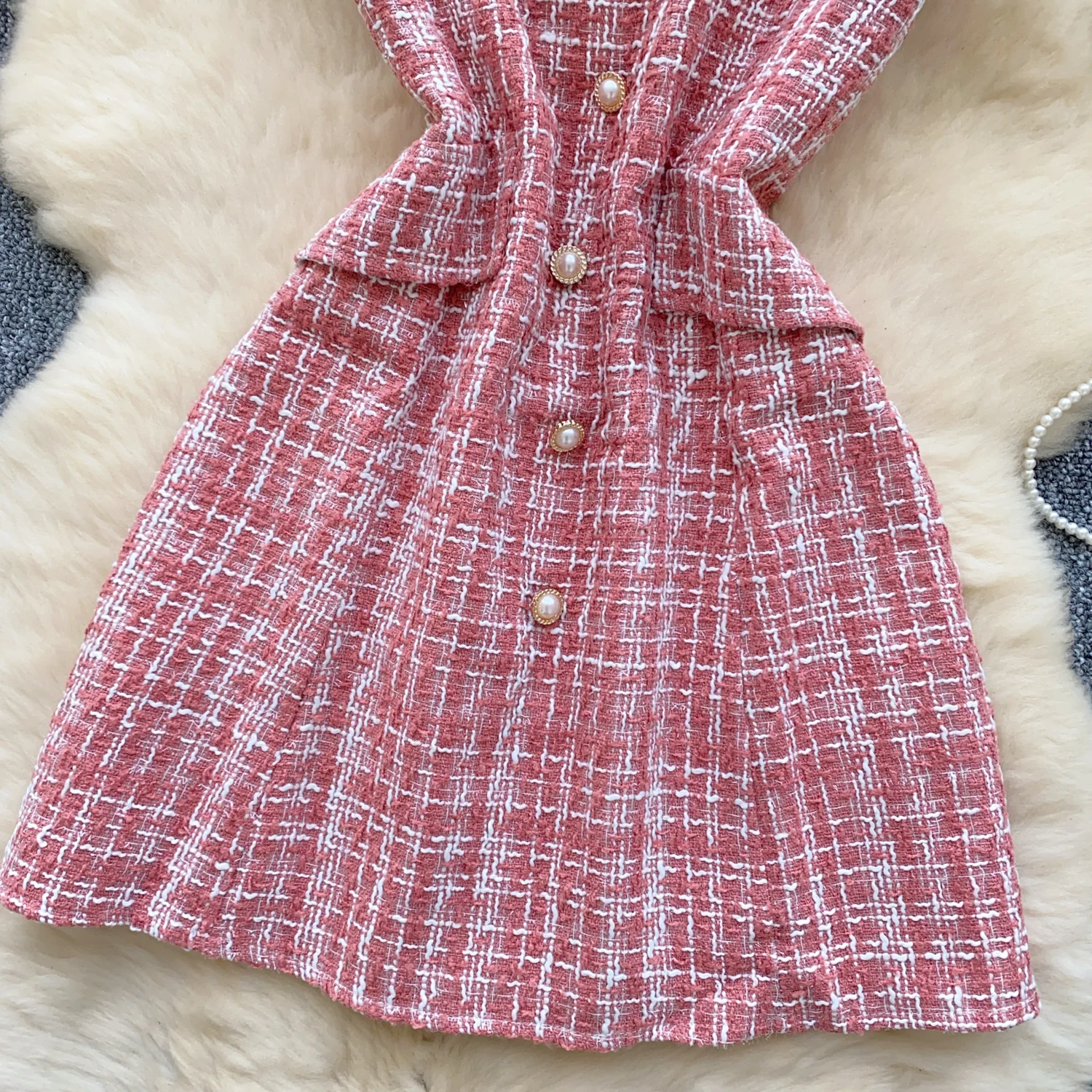 Retro 2024 Autumn Winter New Pink Plaid Woolen Sleeveless Mini Slip Dress Women's Black Button Elegant Short Tweed Dress Popular