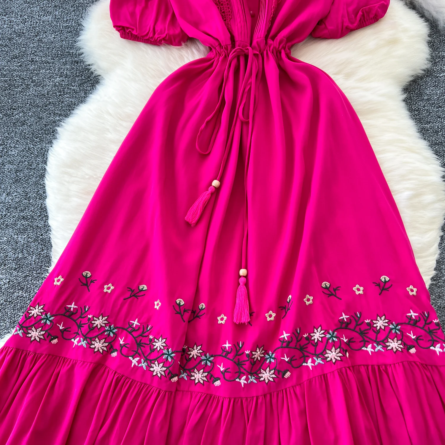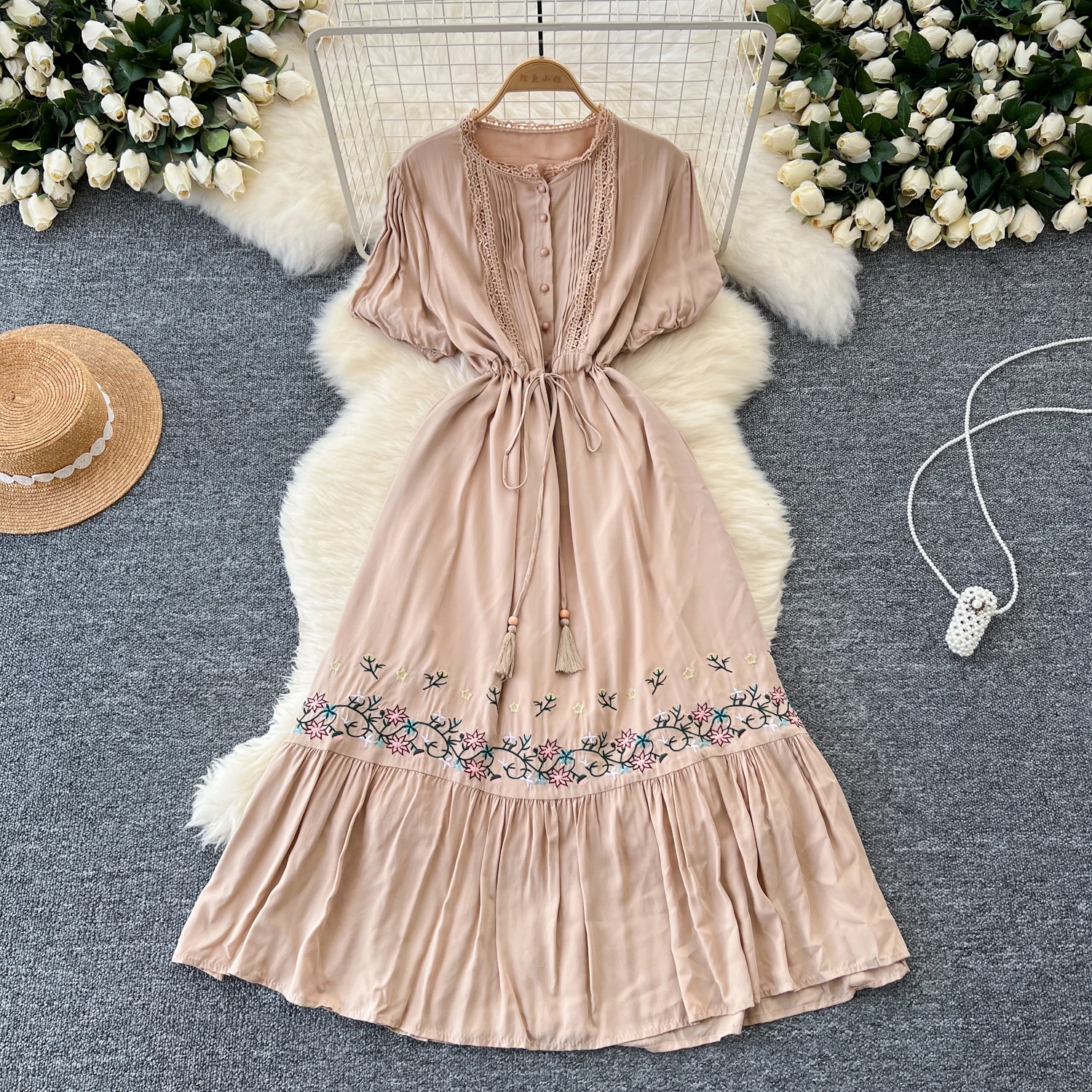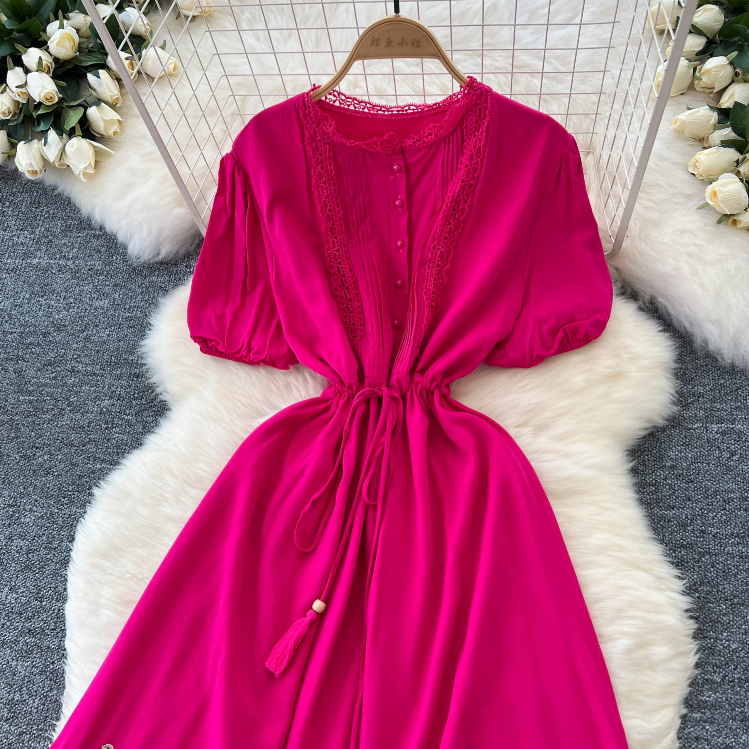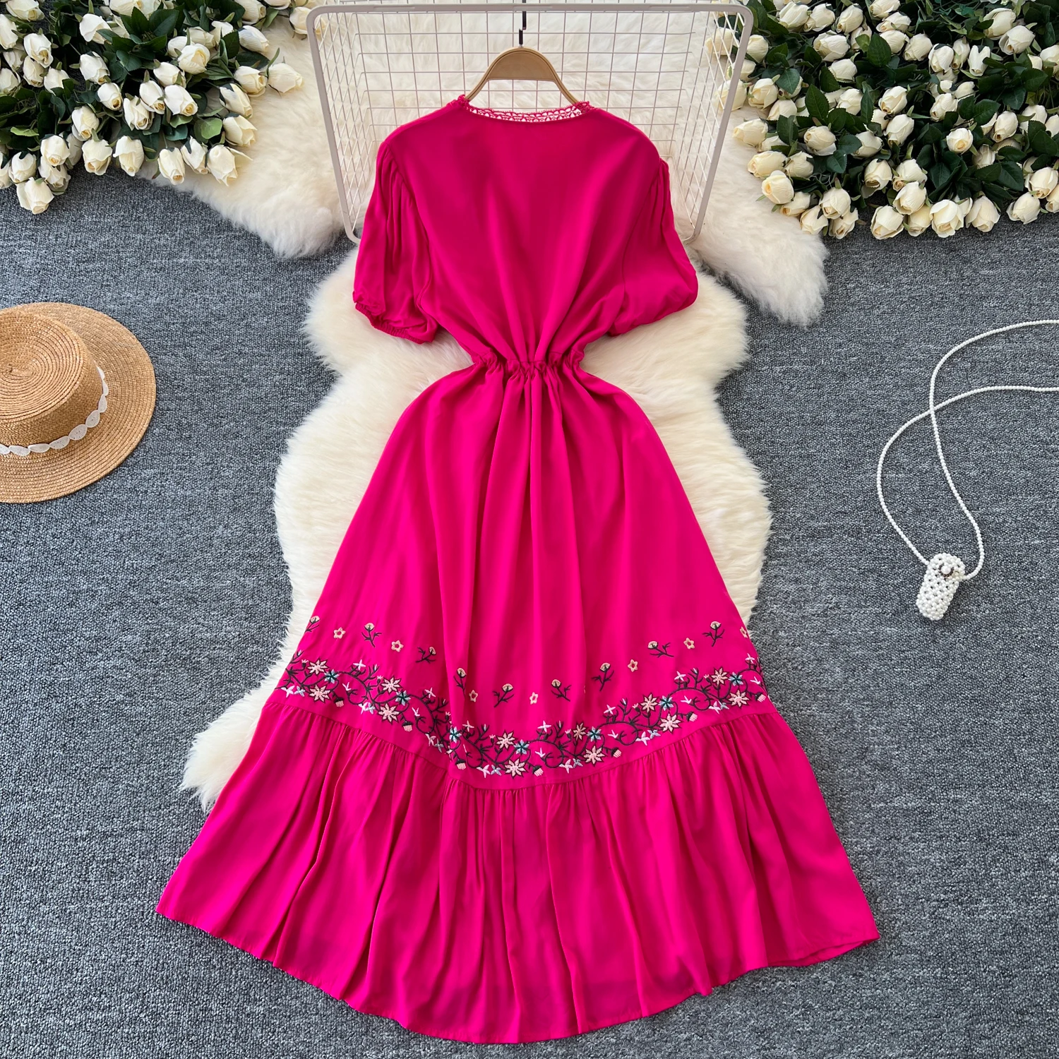 This elegant and fashionable dress is designed to make a statement at any occasion. Crafted from quality materials, it features a flattering silhouette that enhances the figure while providing comfort. The sophisticated design is complemented by intricate detailing, making it suitable for both formal events and upscale gatherings. Available in a variety of colors, this dress is a versatile addition to any wardrobe, ensuring you stand out with grace and style. Do you wanahavit?