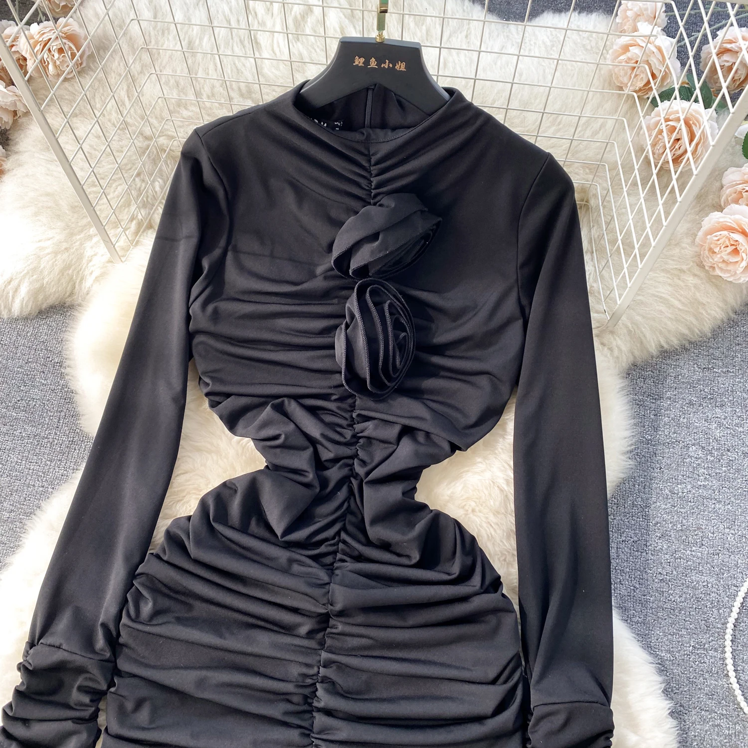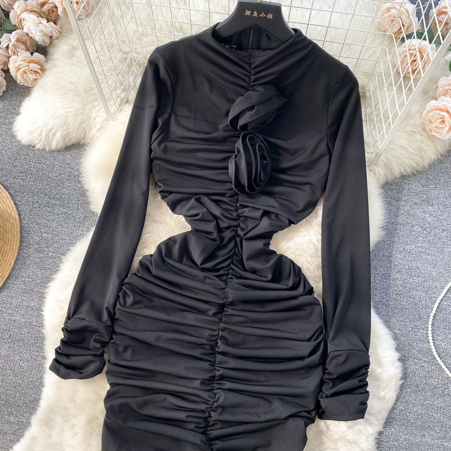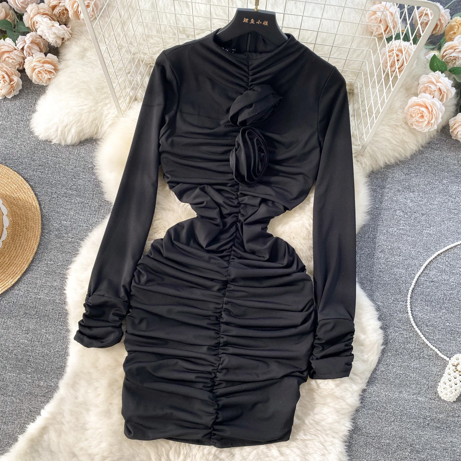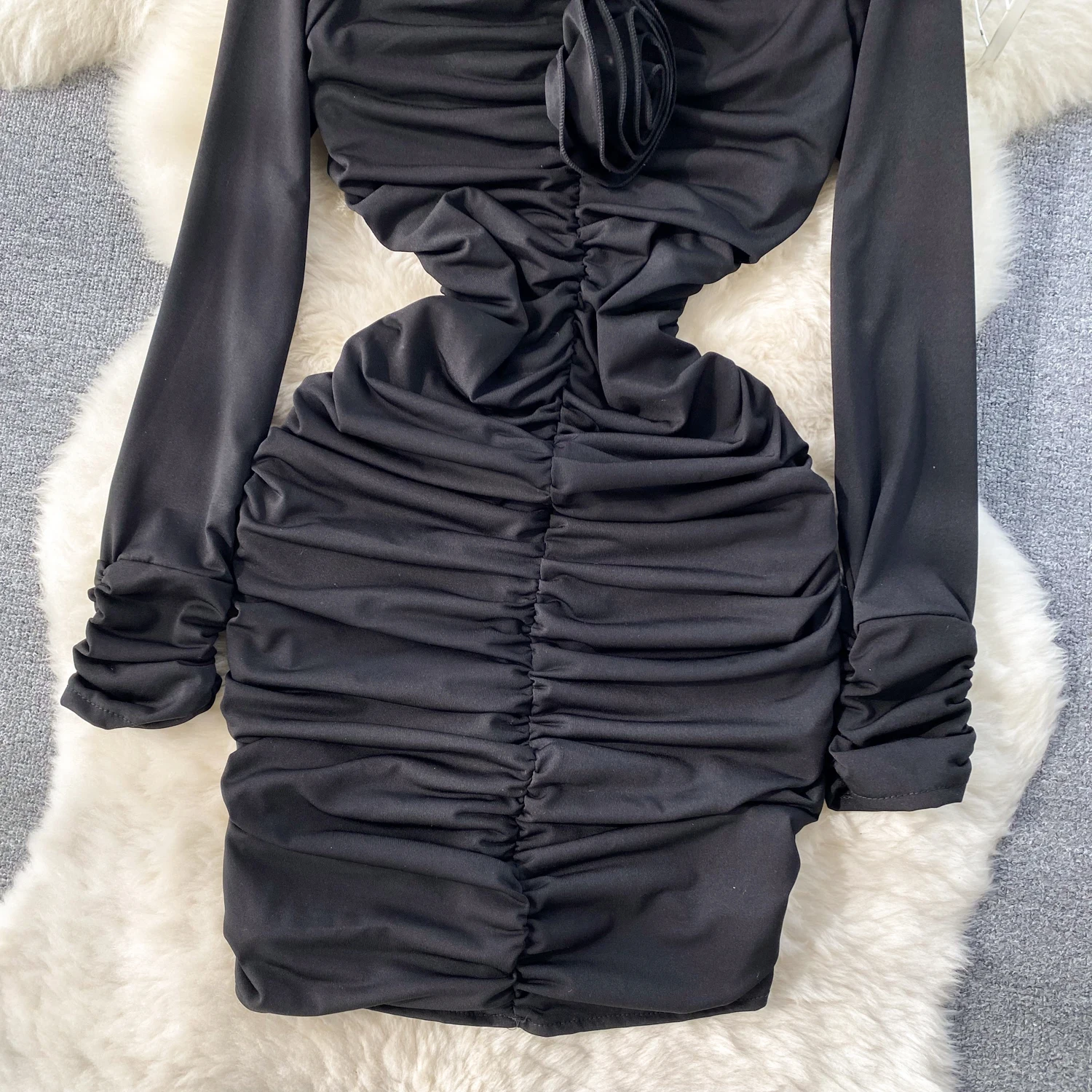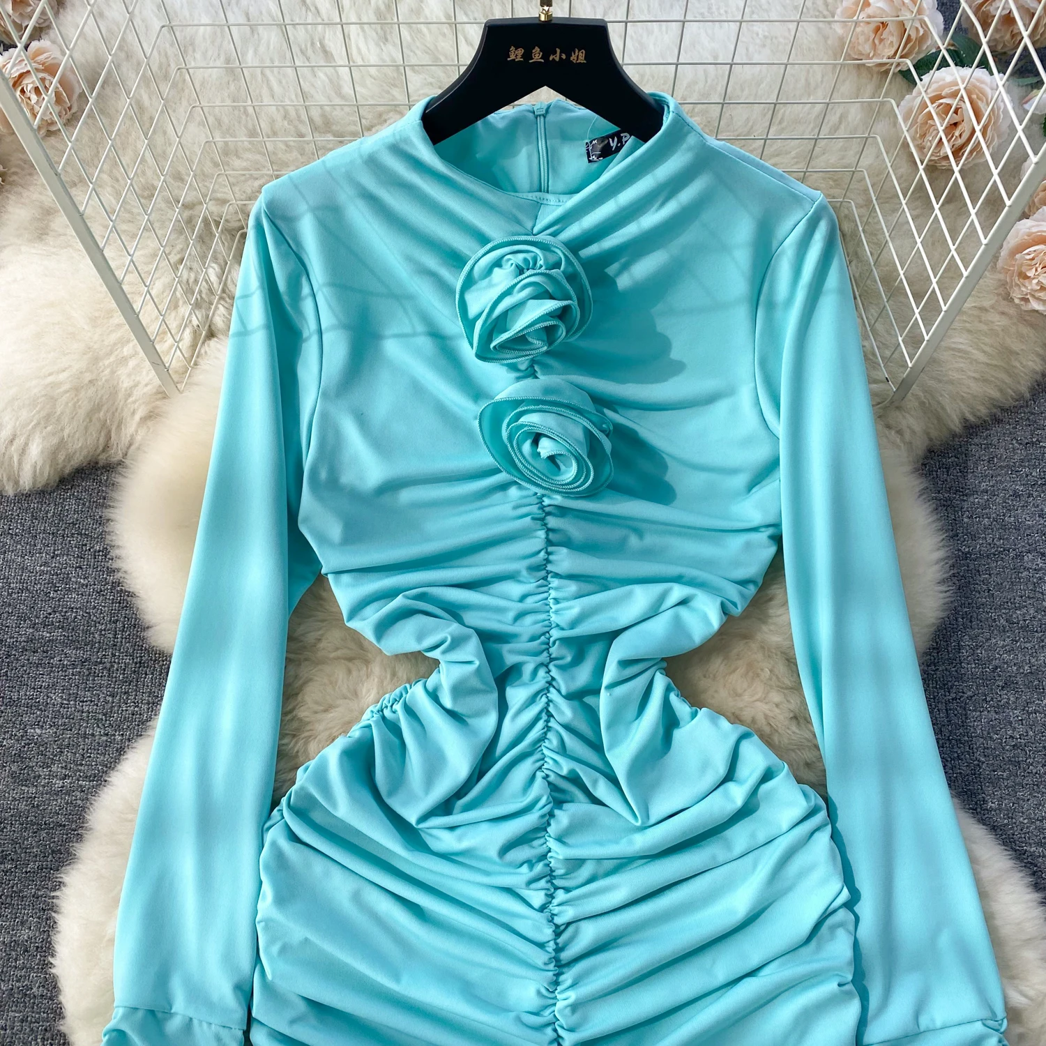 Retro Blue Bodycon Pleated Dress Women Long Sleeved Gray Dresses Women Autumn Black Sexy Club Dress Festival Night Party Dresses