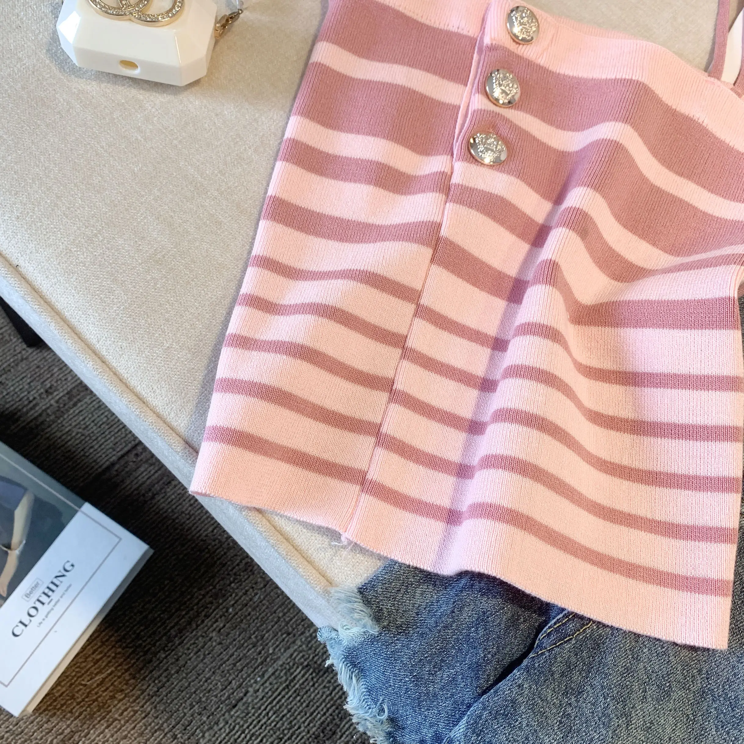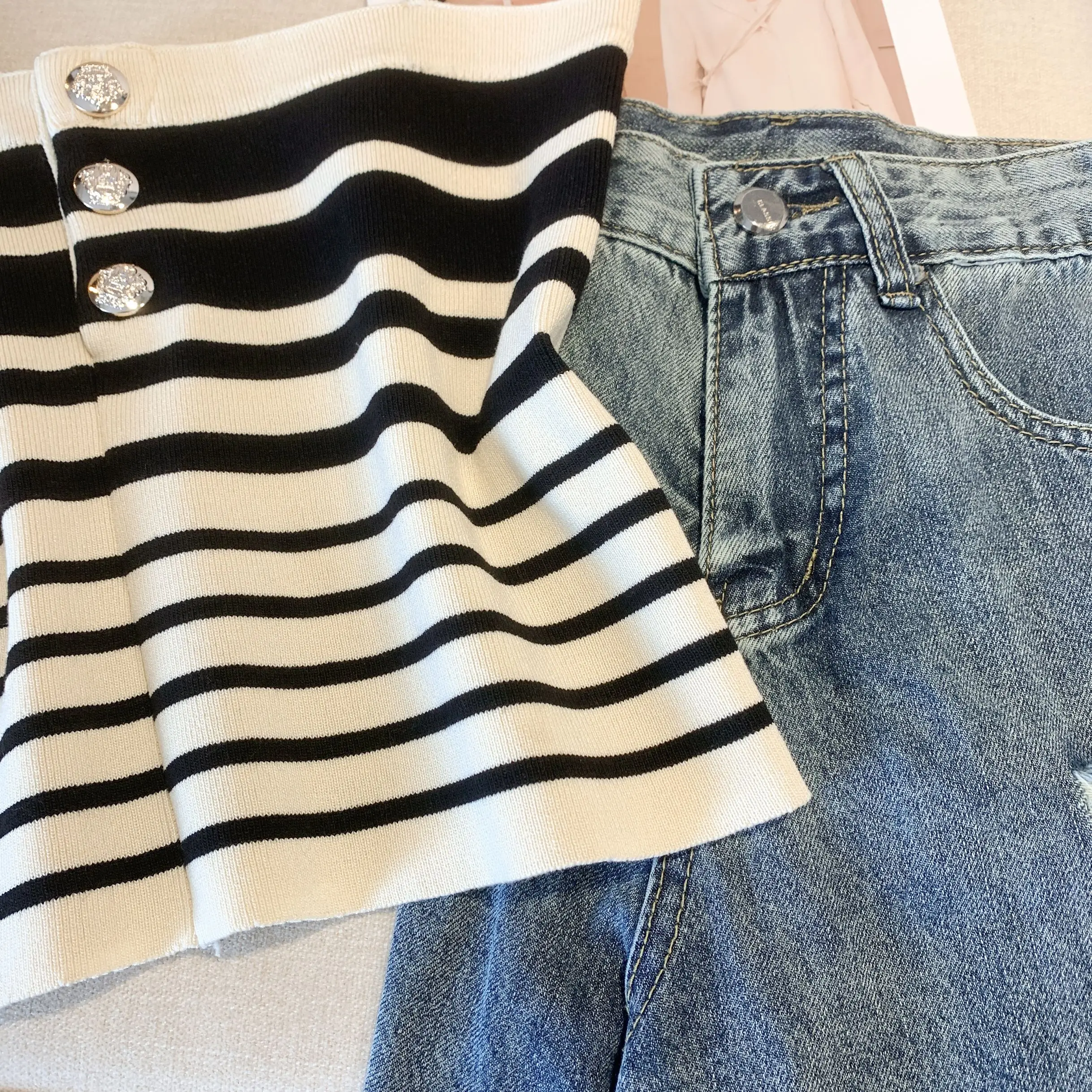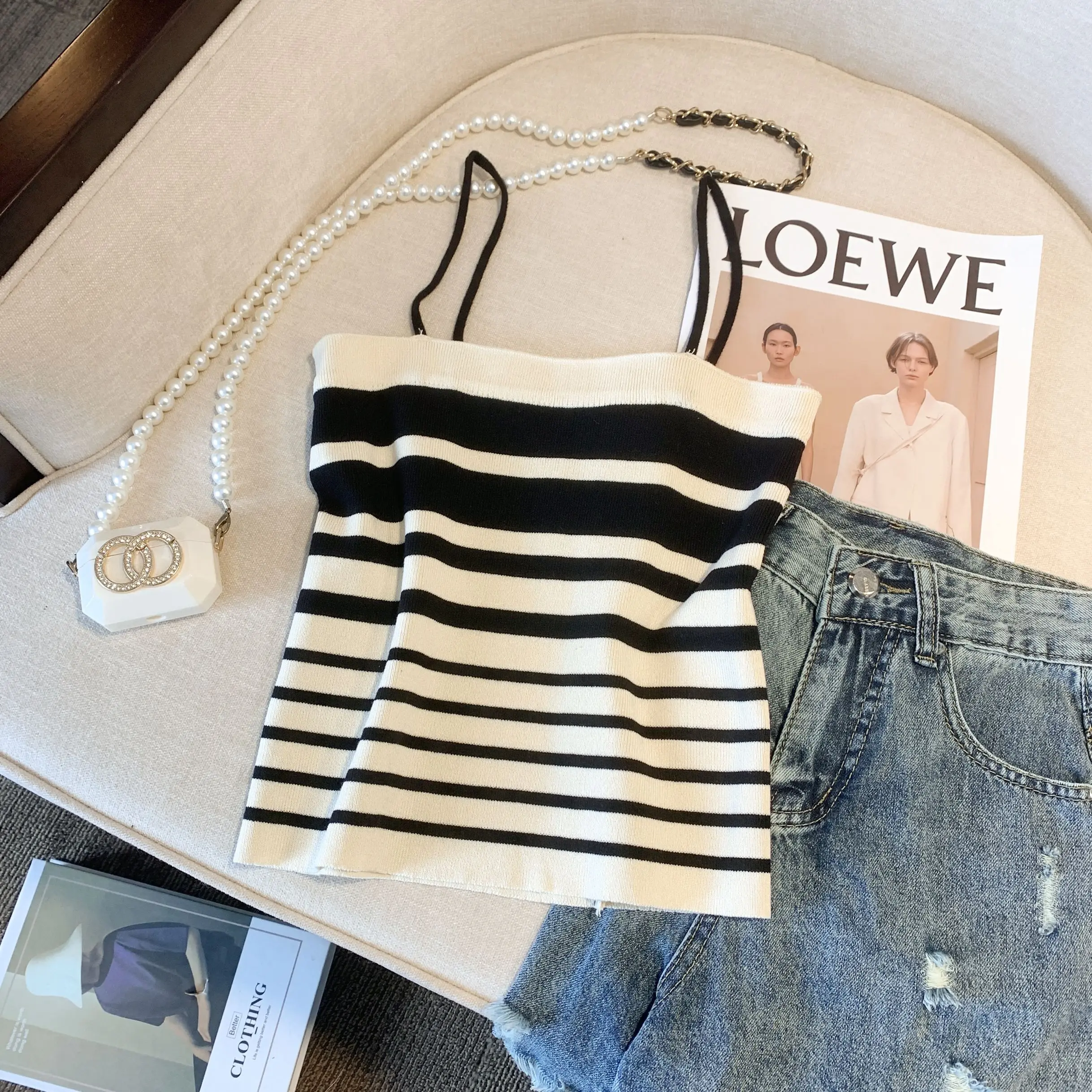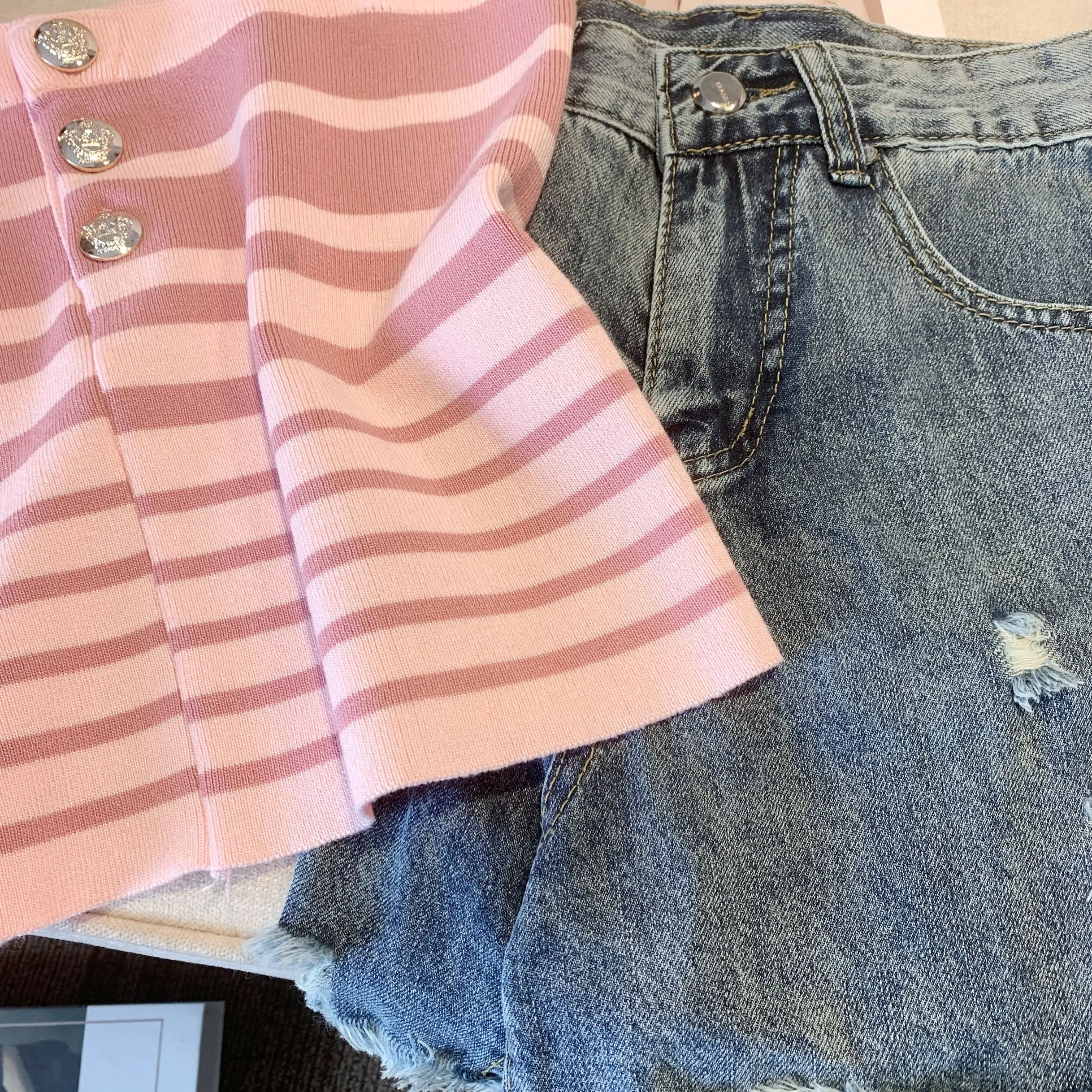Retro Women Black White Striped Knit Crochet Top Summer Sexy Pink Patchwork Backless Single Breasted Short Spaghetti Strap Tops