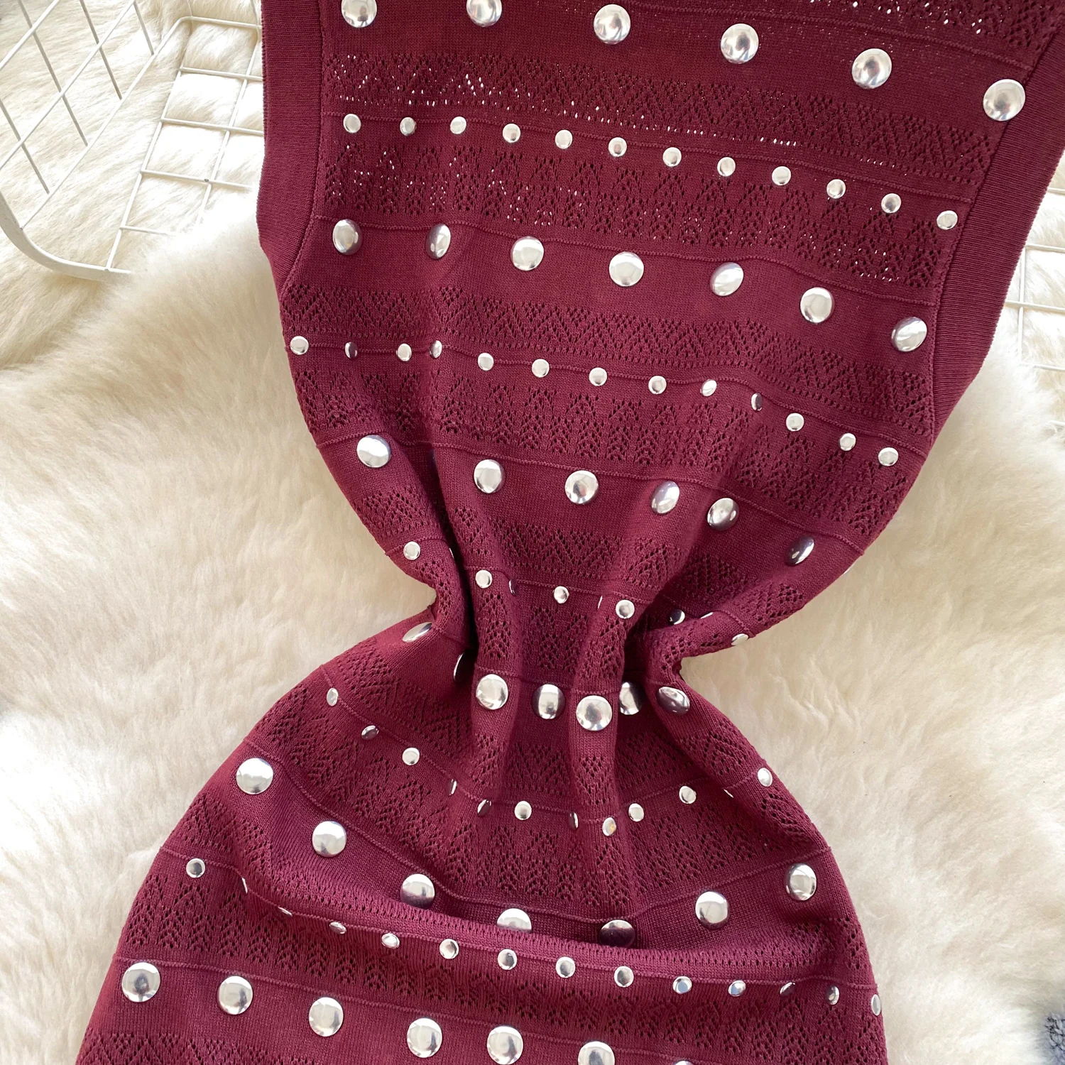 Retro Women's Black Diamond Elegant Sleeveless A-line Vest Dress Summer Red Slim O-neck Holiday Ruffles Fishtail Long Dress Chic