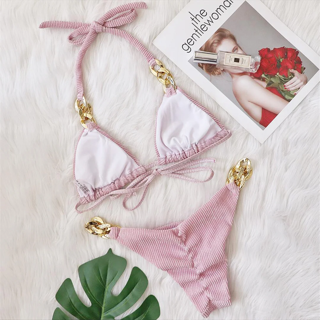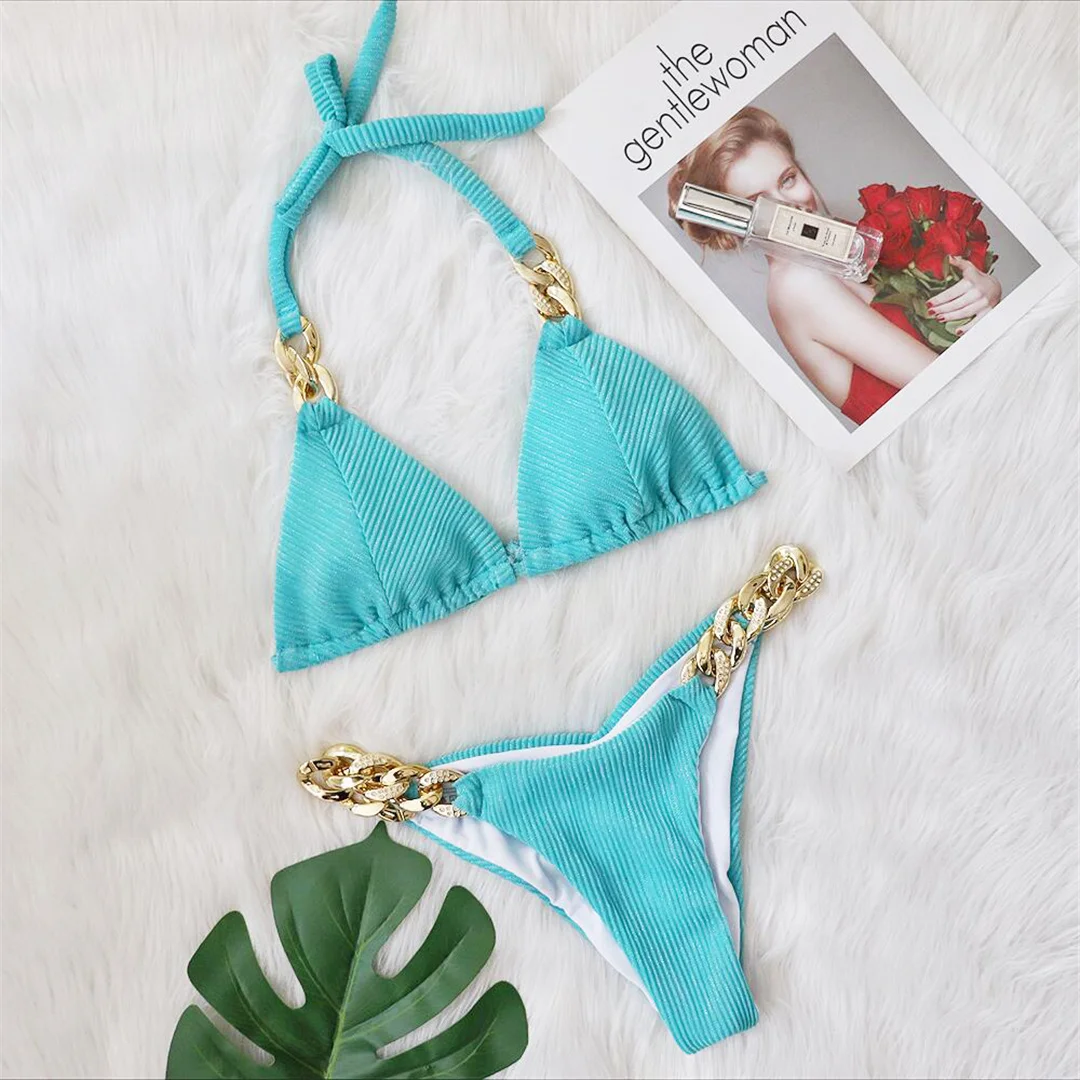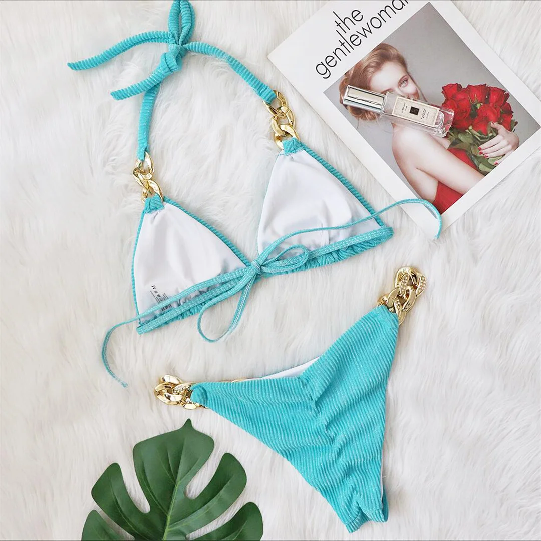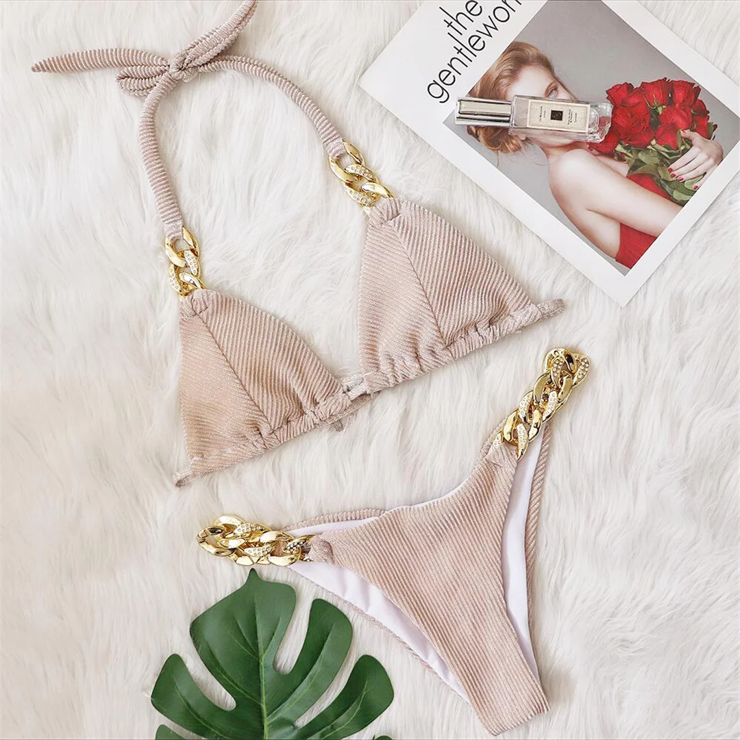 Rhinestone Brazilian Scrunch Butt Bikini Women Swimwear Female Swimsuit Two-piece Bikini set Bather Bathing Suit Swim V3185G