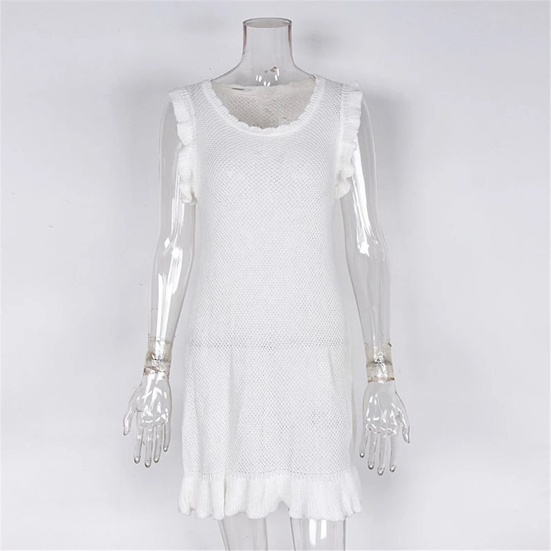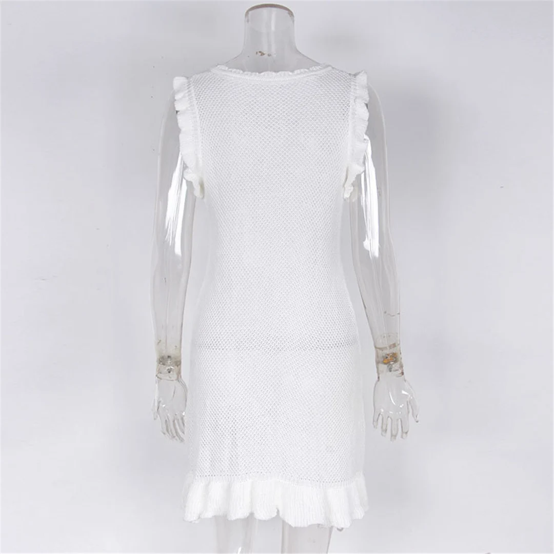 Ruffled Hollow Out Crochet Knitted Tunic Beach Cover Up Cover-ups Beach Dress Beach Wear Beachwear Female Women V5471