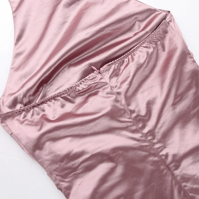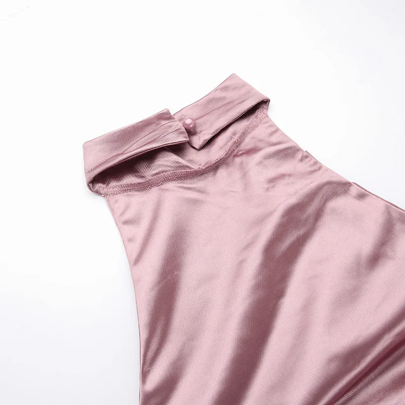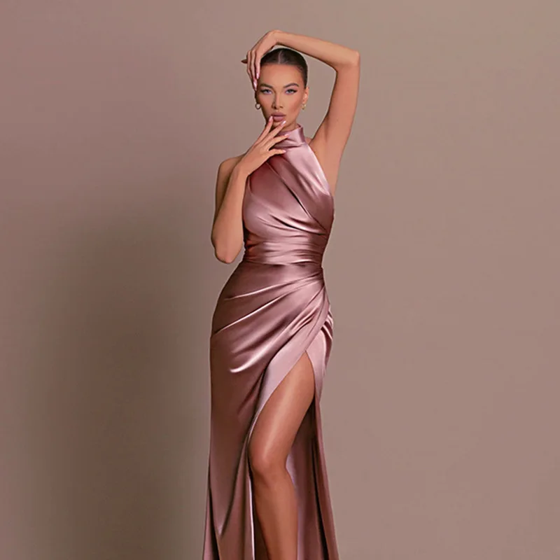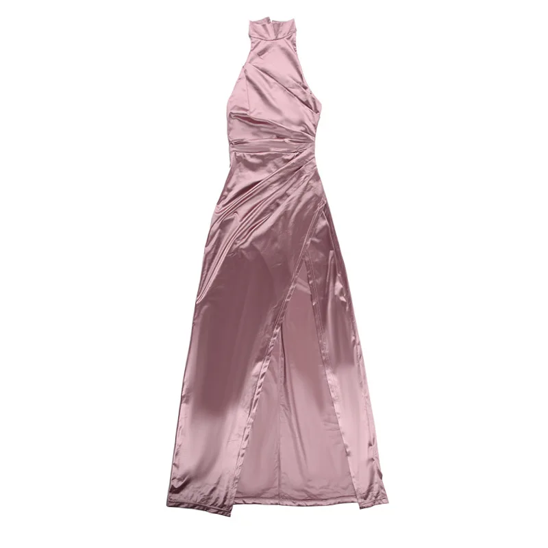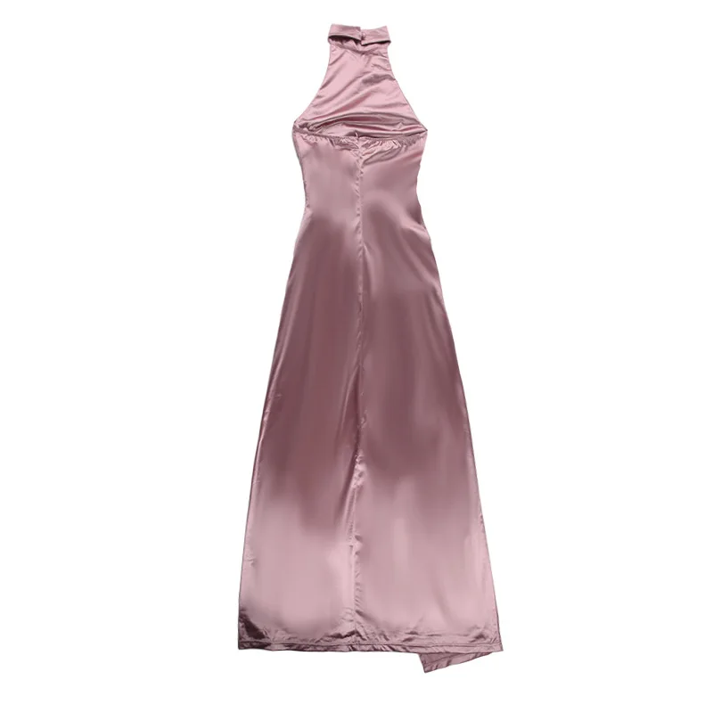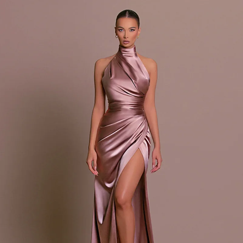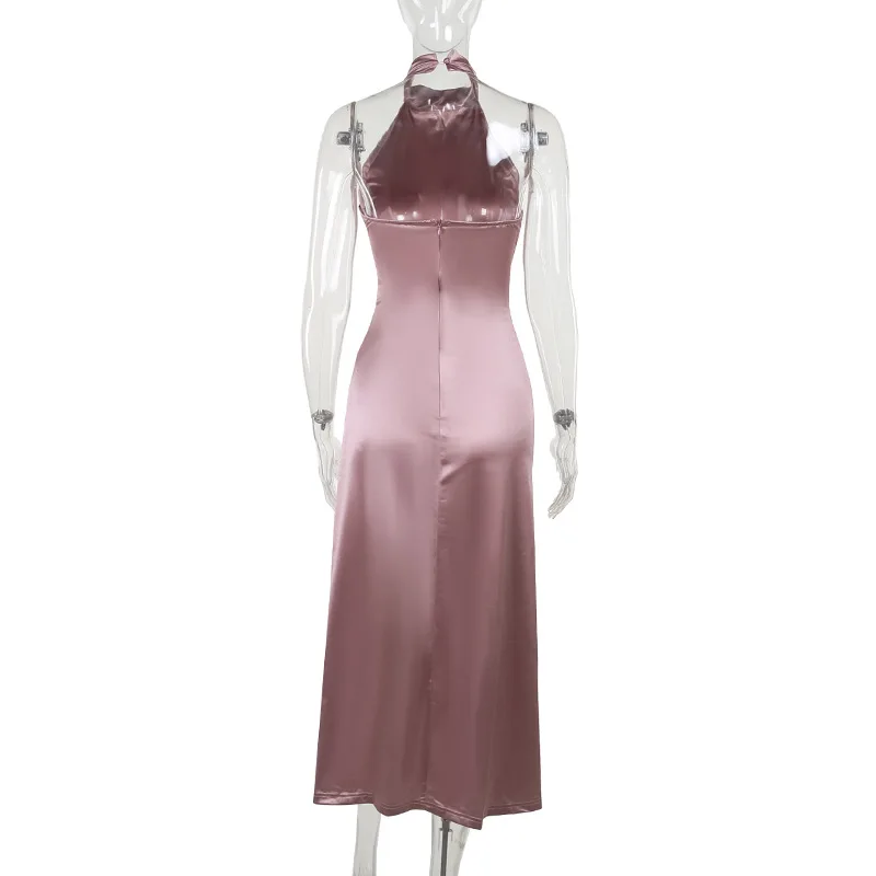 Satin Hanging Collar Sleeveless Split Slim Fit Dress Women Slim 2024 Summer New Long Dress Elegant Party Evening Dress