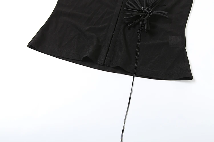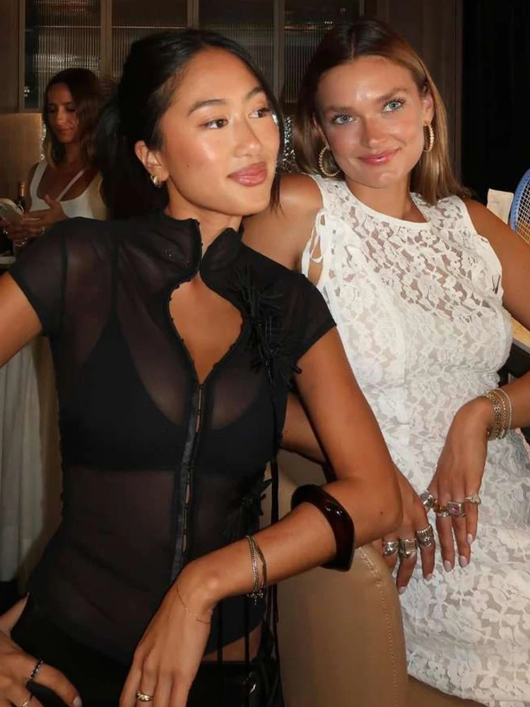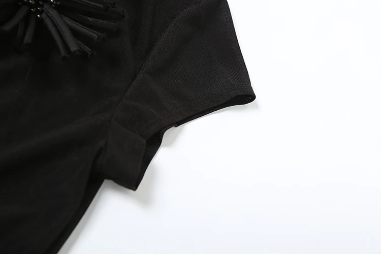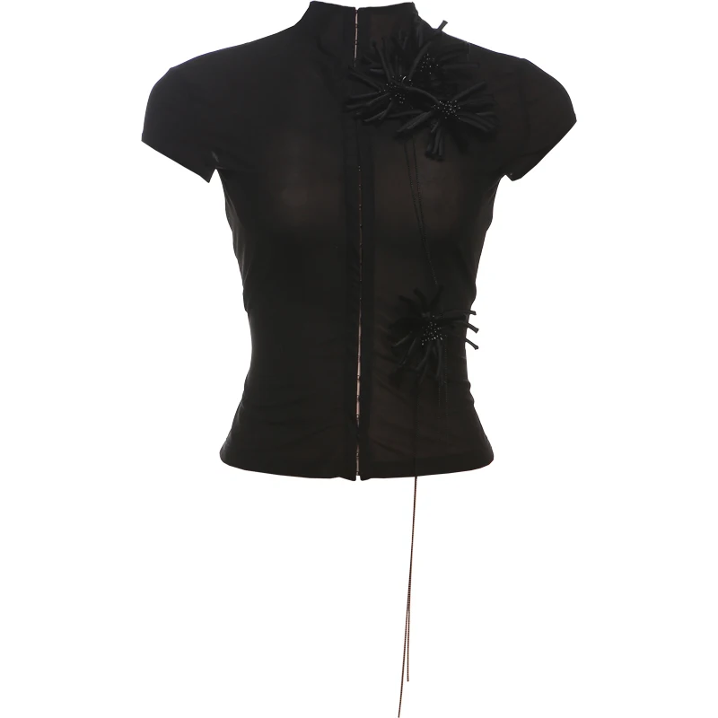 See Through t-Shirt Women Single-Breasted Half-High Neck Tassel Midnight Hottie Versatile Street Skinny Fashionable Tops