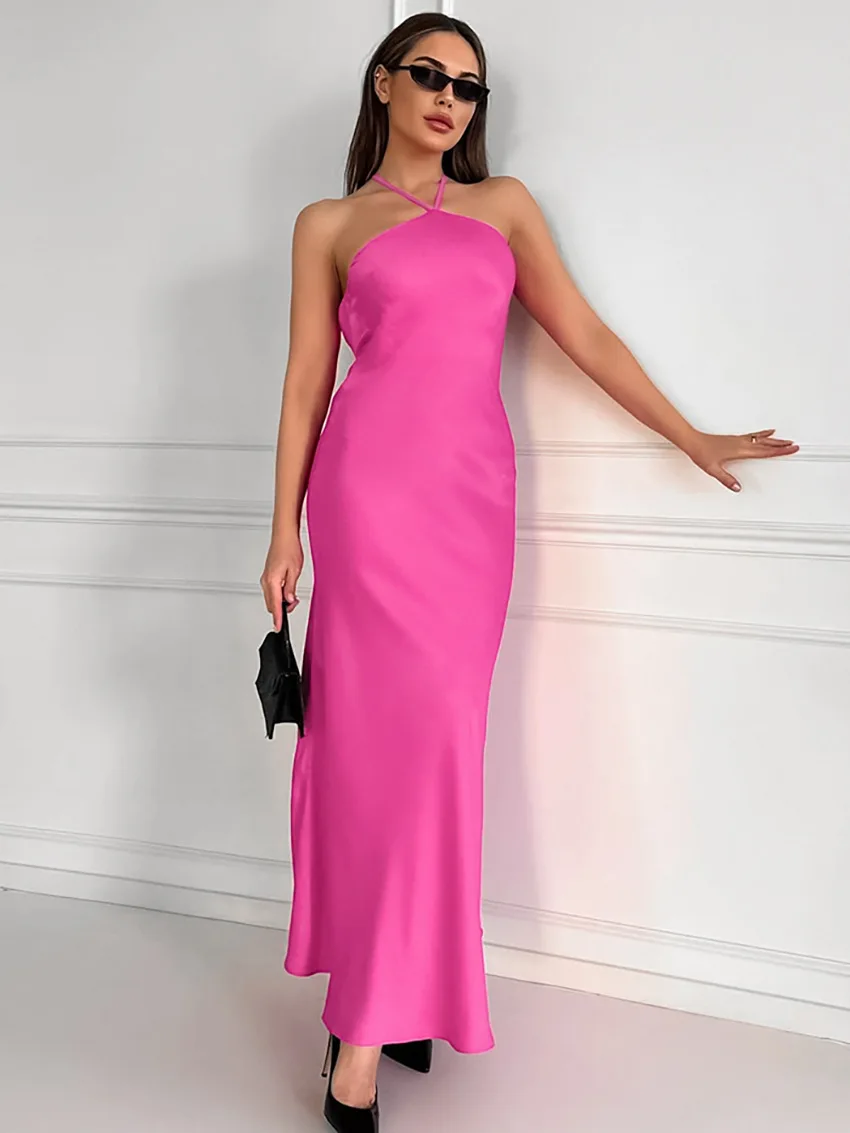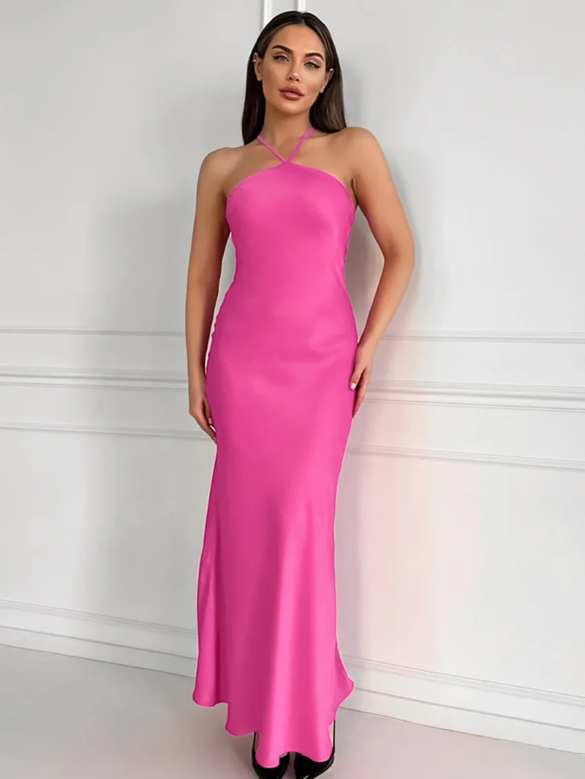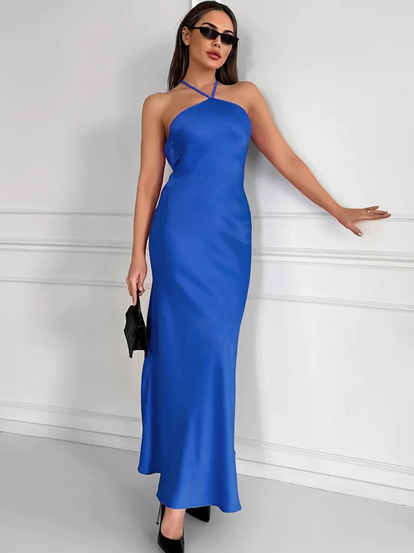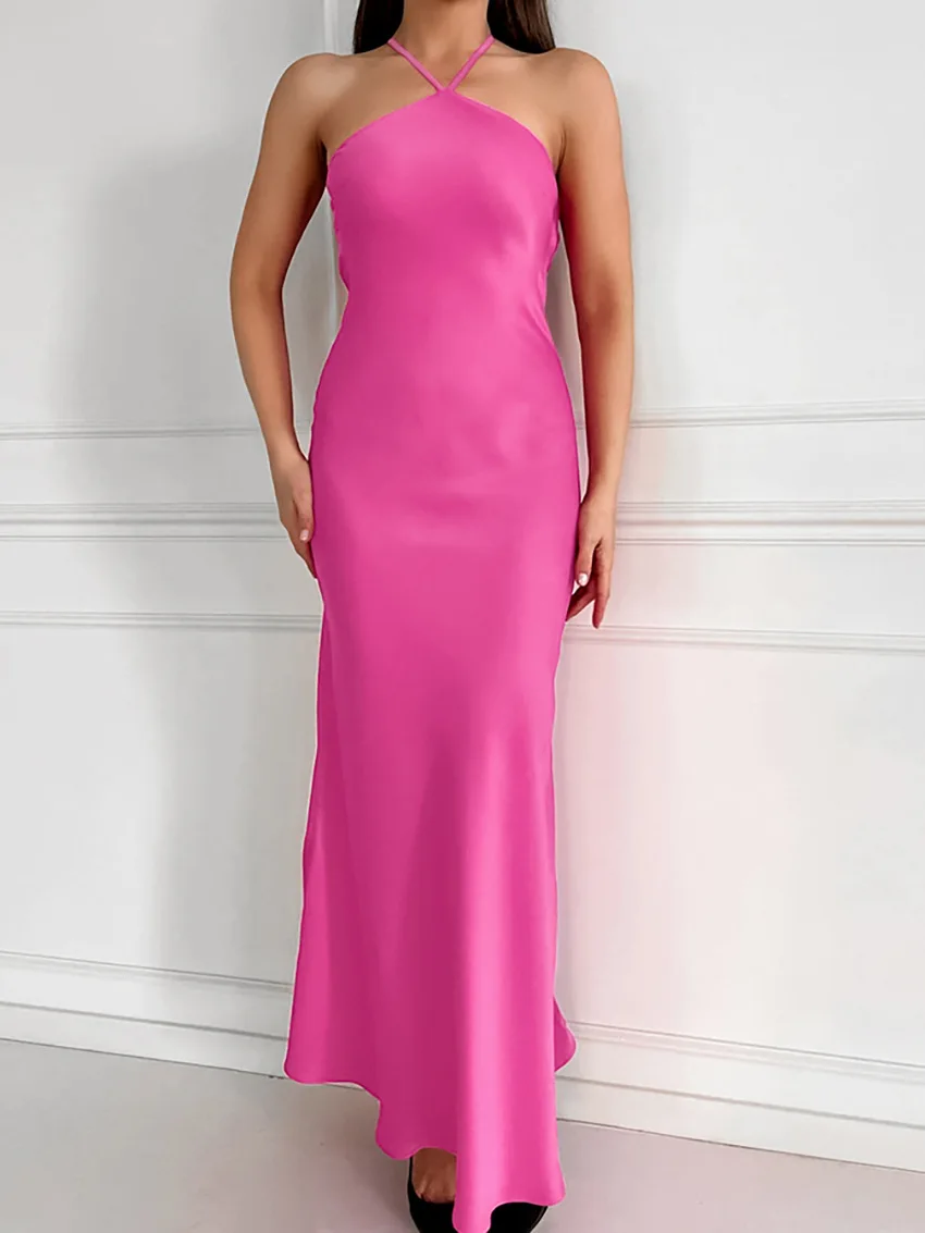 Sexy Backless Hanging Collar Dress For Women 2024 Summer New 2024 Sleeveless Fishtail Dress Holiday Party Evening Dress