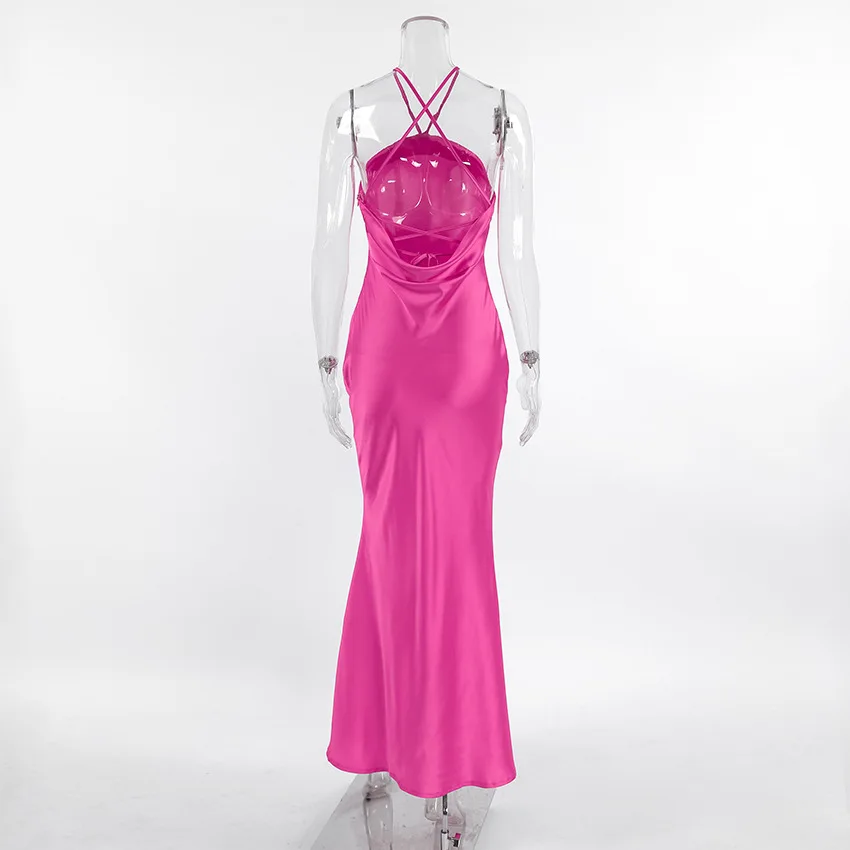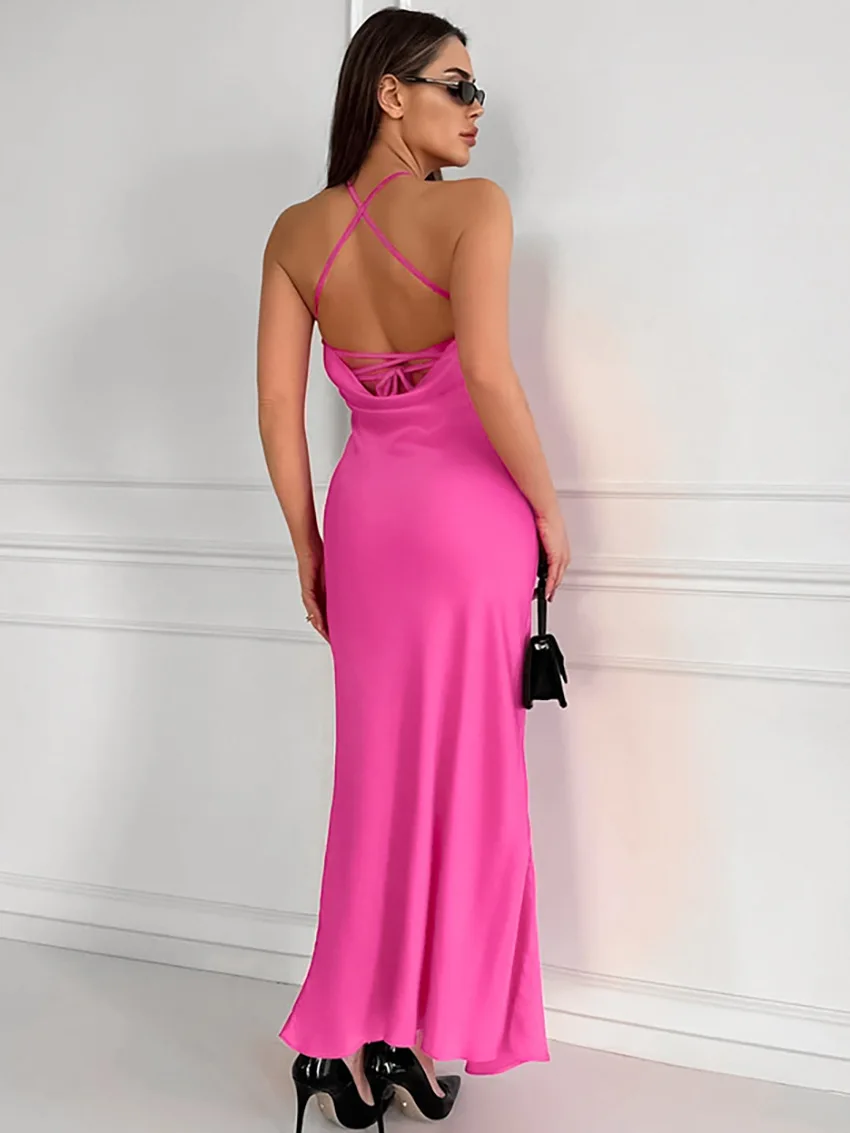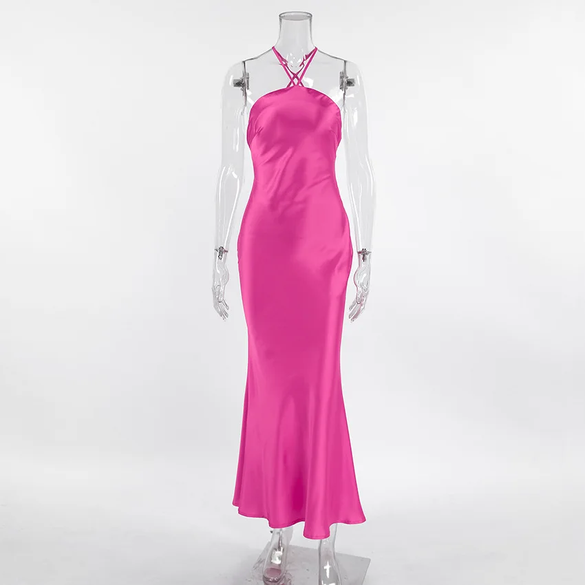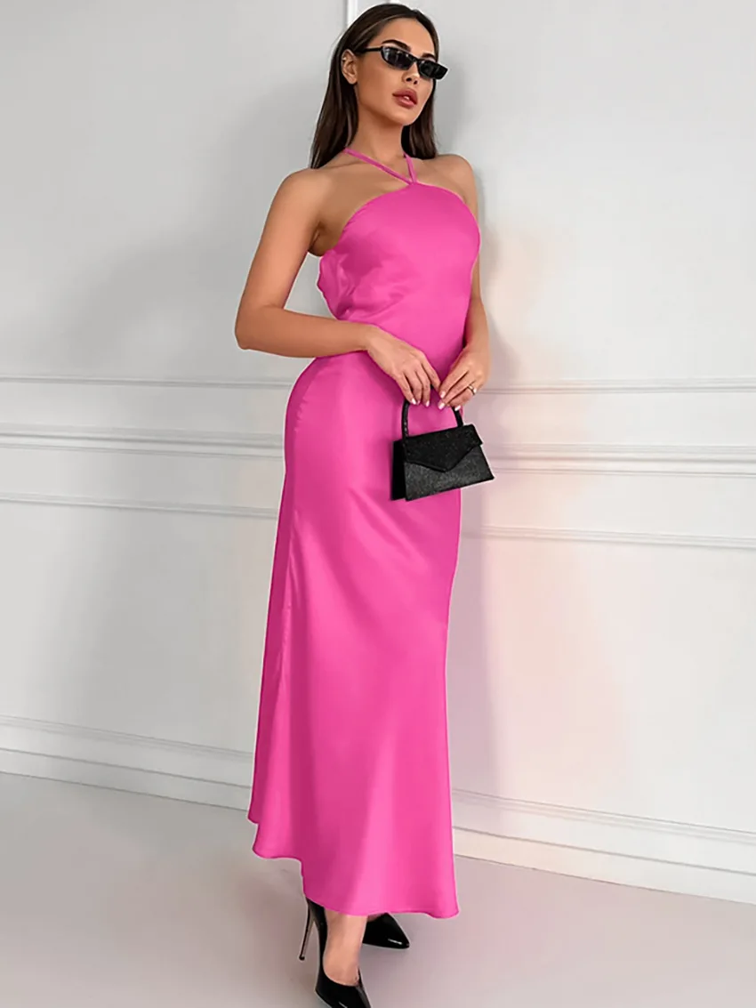 Sexy Backless Hanging Collar Dress For Women 2024 Summer New 2024 Sleeveless Fishtail Dress Holiday Party Evening Dress