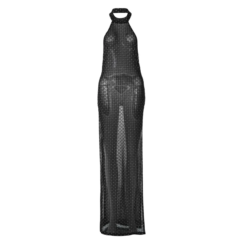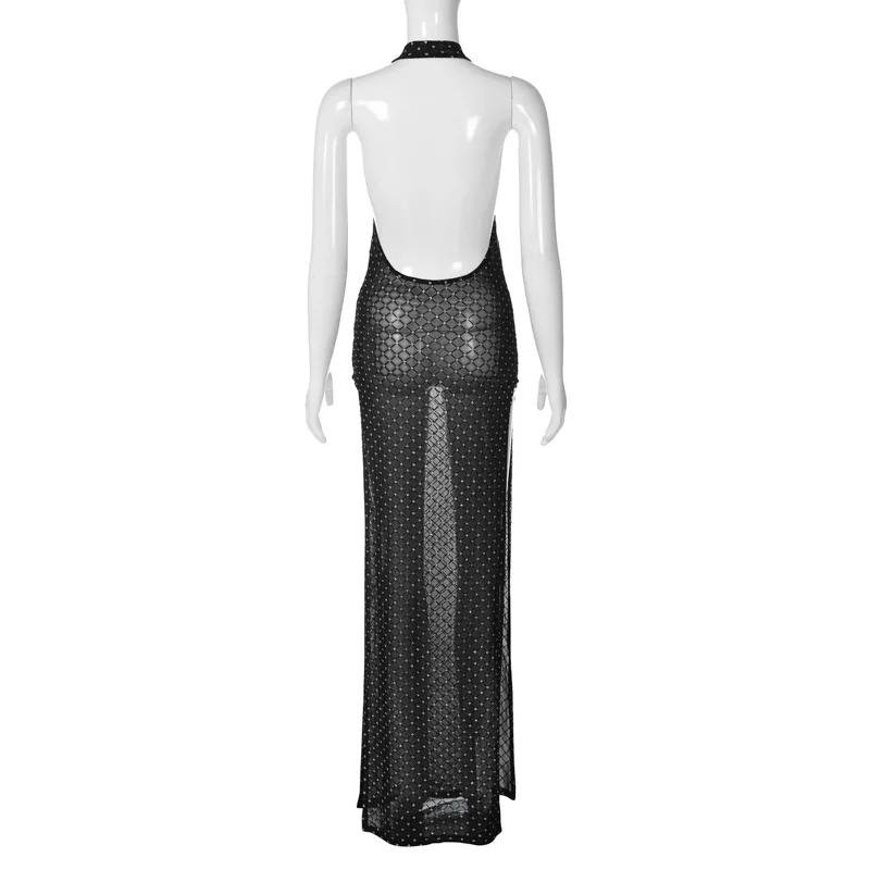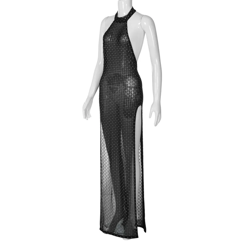 Sexy Backless Slit Perspective Dress For Women Hanging Neck Bodycon Elegant Evening Dress Female Slim Party NightClubwear