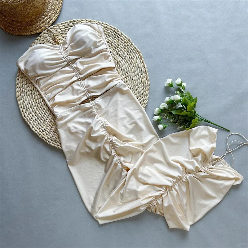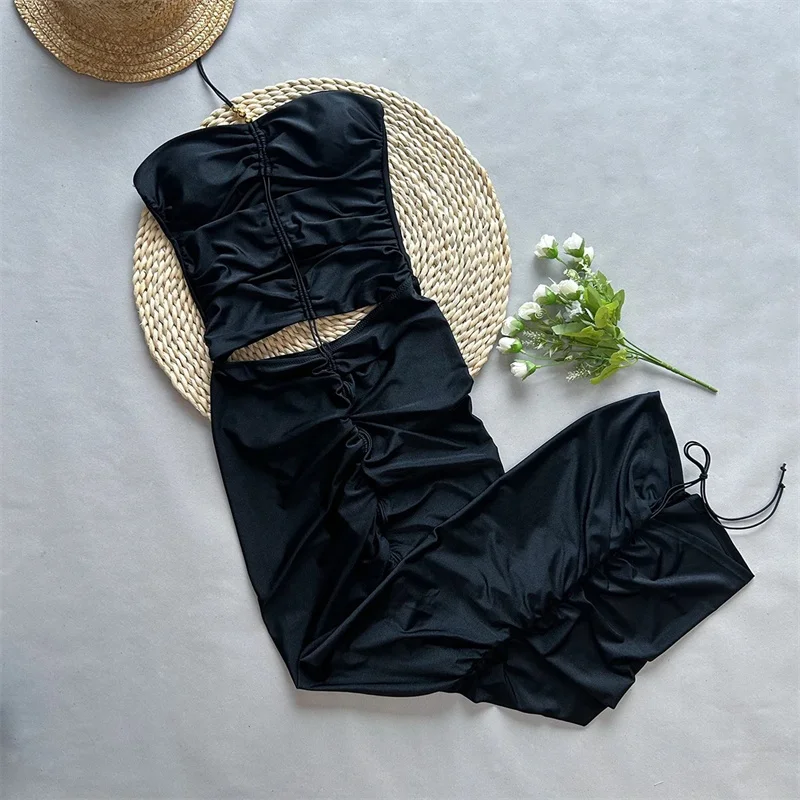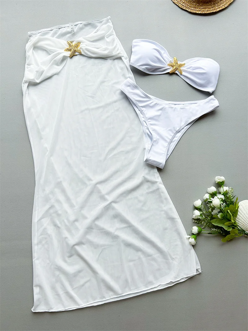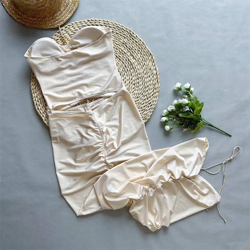 Sexy Bandeau Bikini 2025 Three Piece Swimsuit with Long Dress Thong Swimwear Women Biquini Beachwear