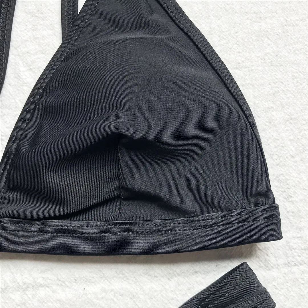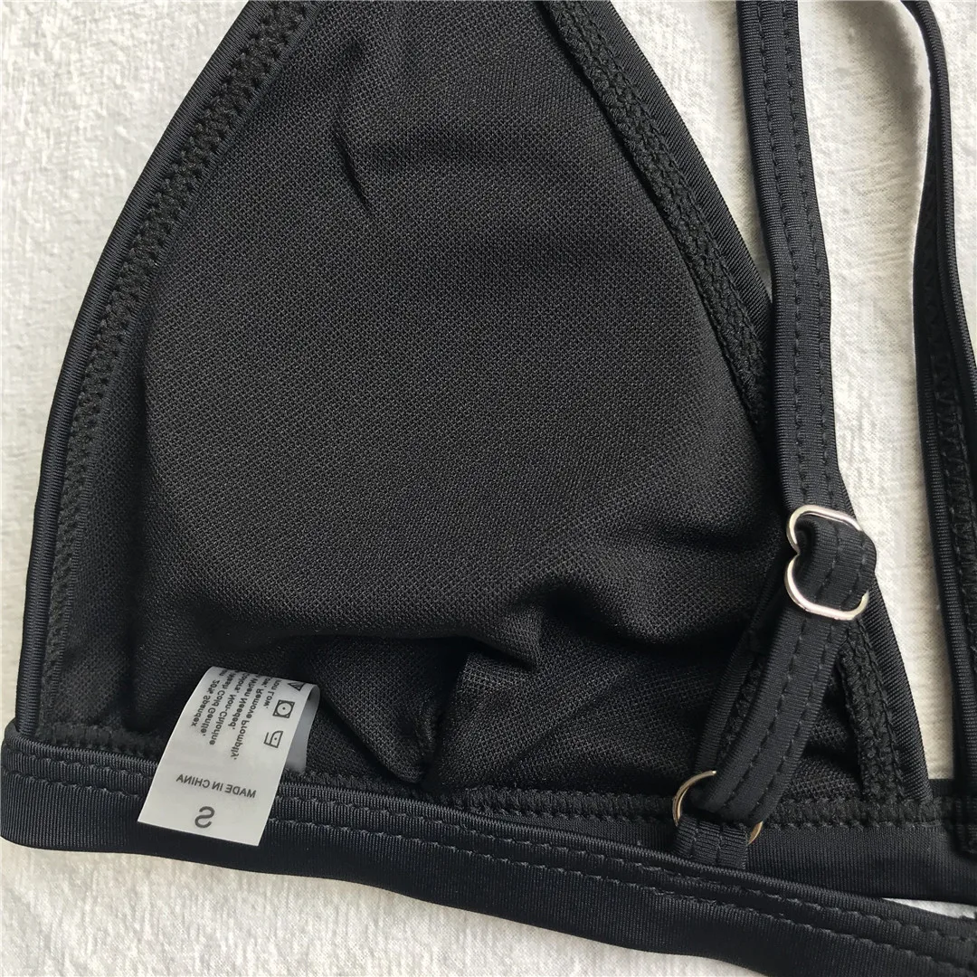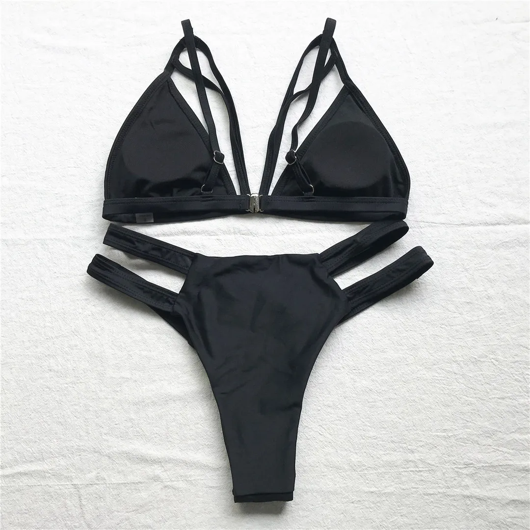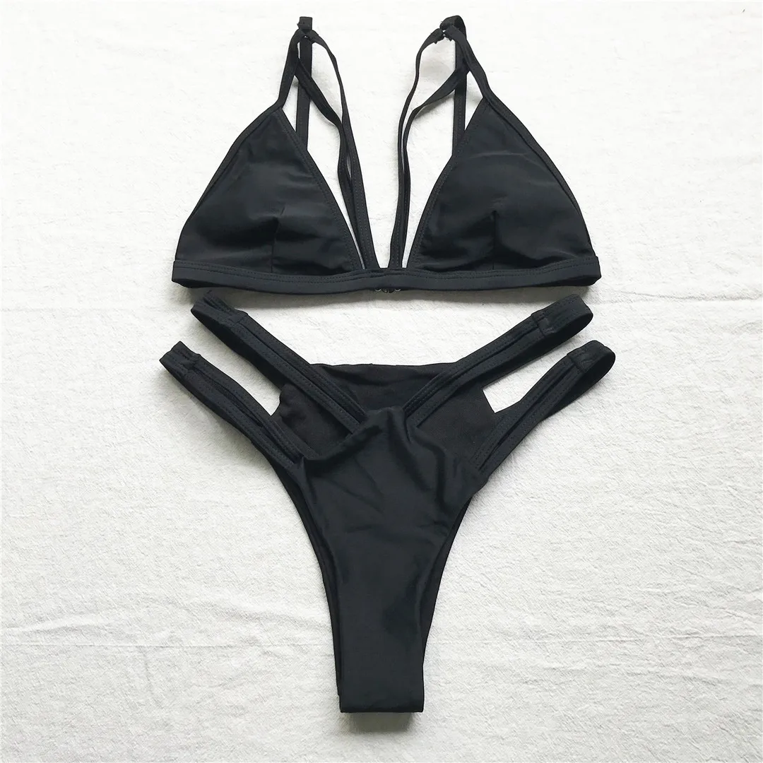 Sexy Black Strappy Bikini Female Swimsuit Women Swimwear Two-pieces Bikini set Padded Bather Bathing Suit Swim Lady V2507