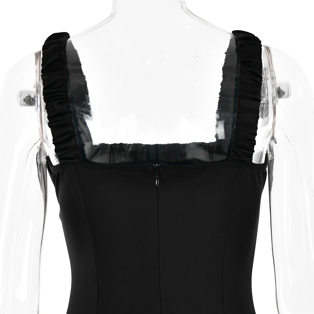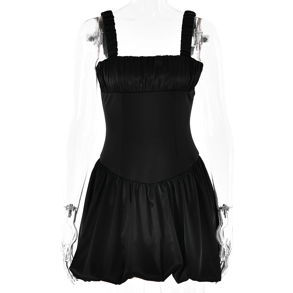 Sexy Camisole Sleeveless Mini Short Skirt Women Pleated Double Layer Dress Tight Zipper Female Party Club Evening Dress