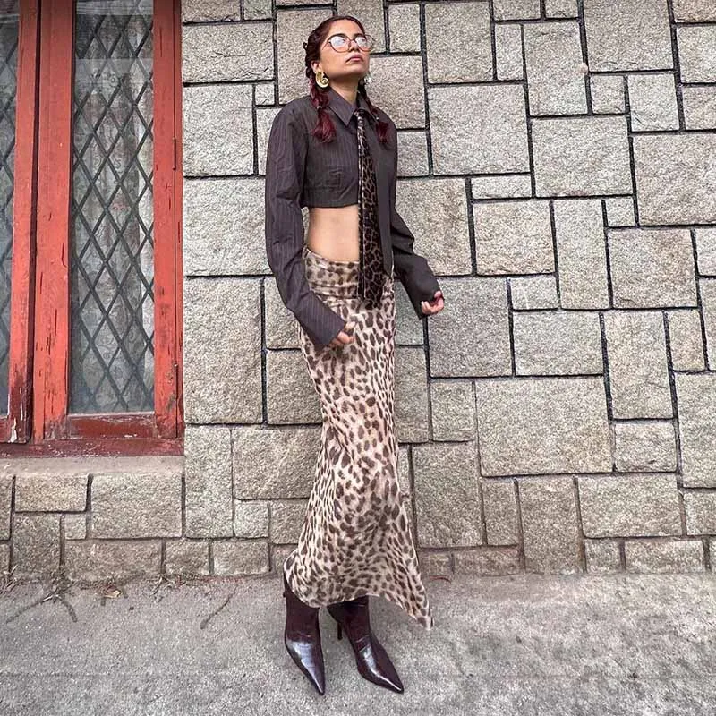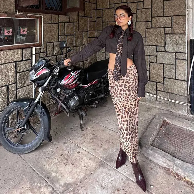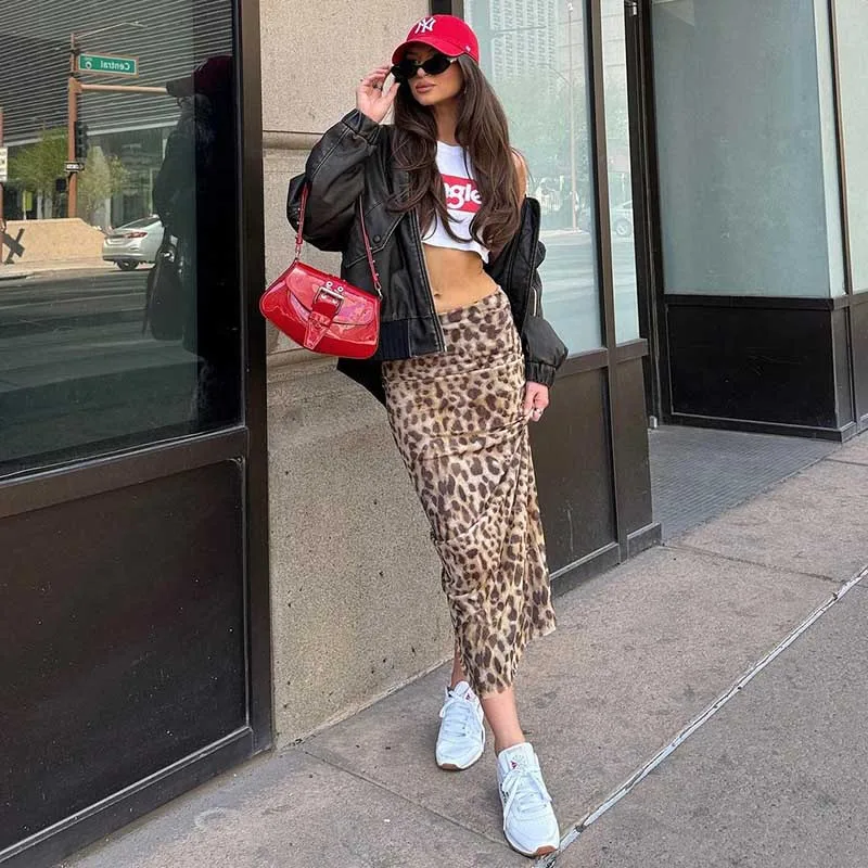 Sexy Elegant Leopard Printed Midi Skirt Women Fashion Dress Lady Clothes Summer Office Party Club Streetwear Wholesale