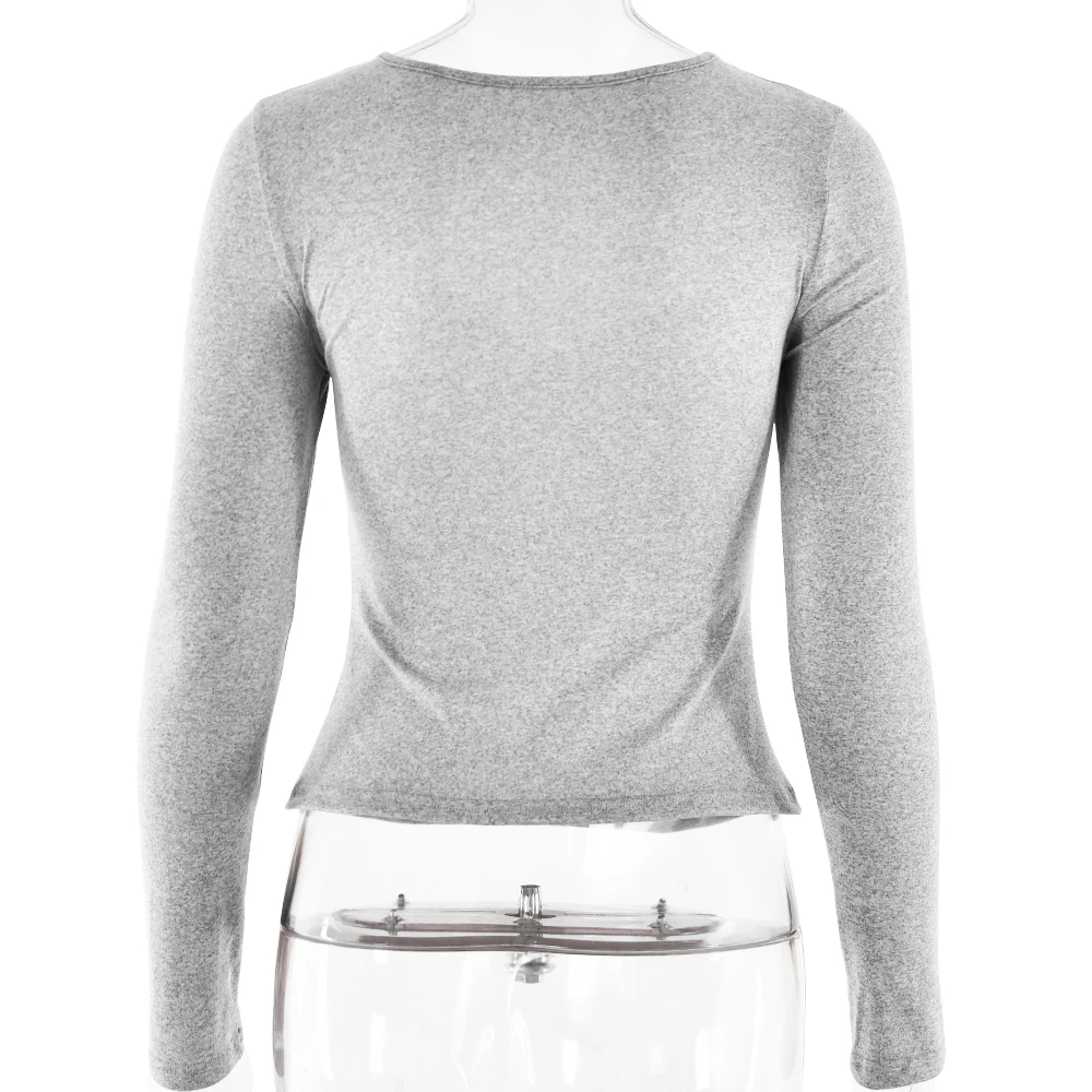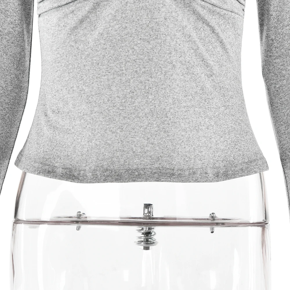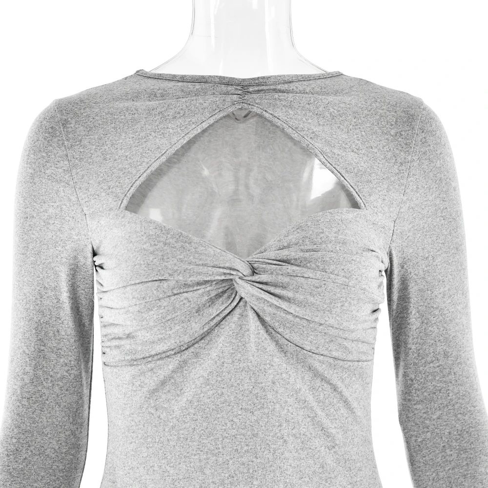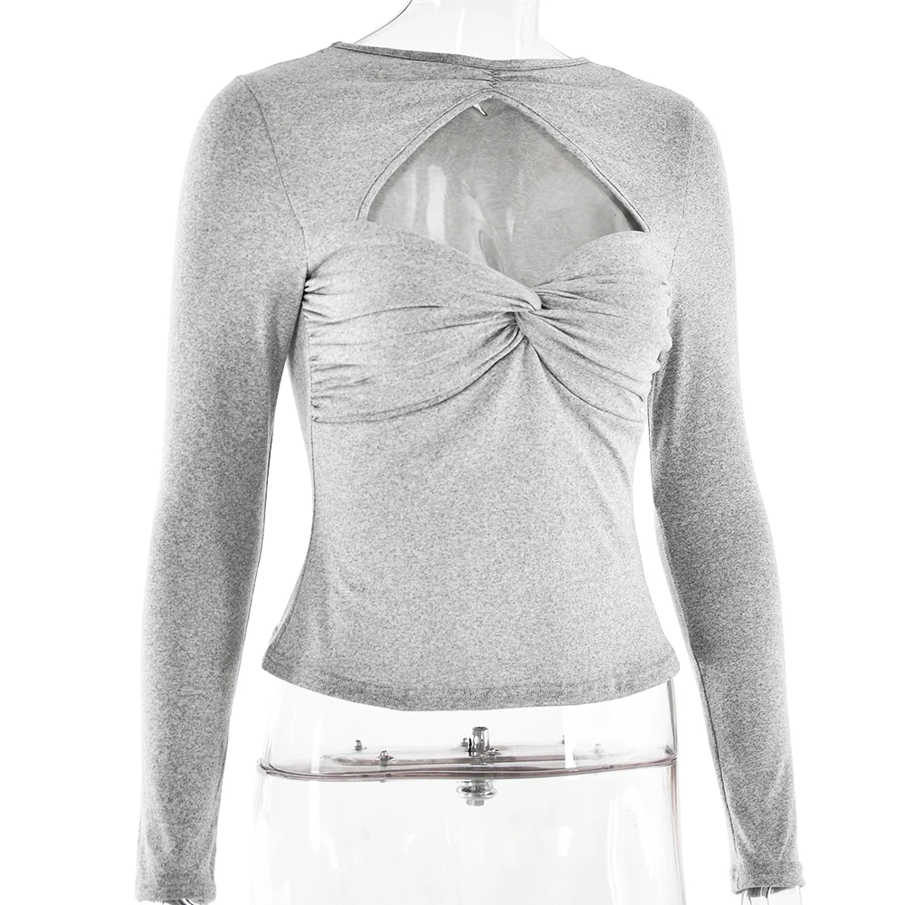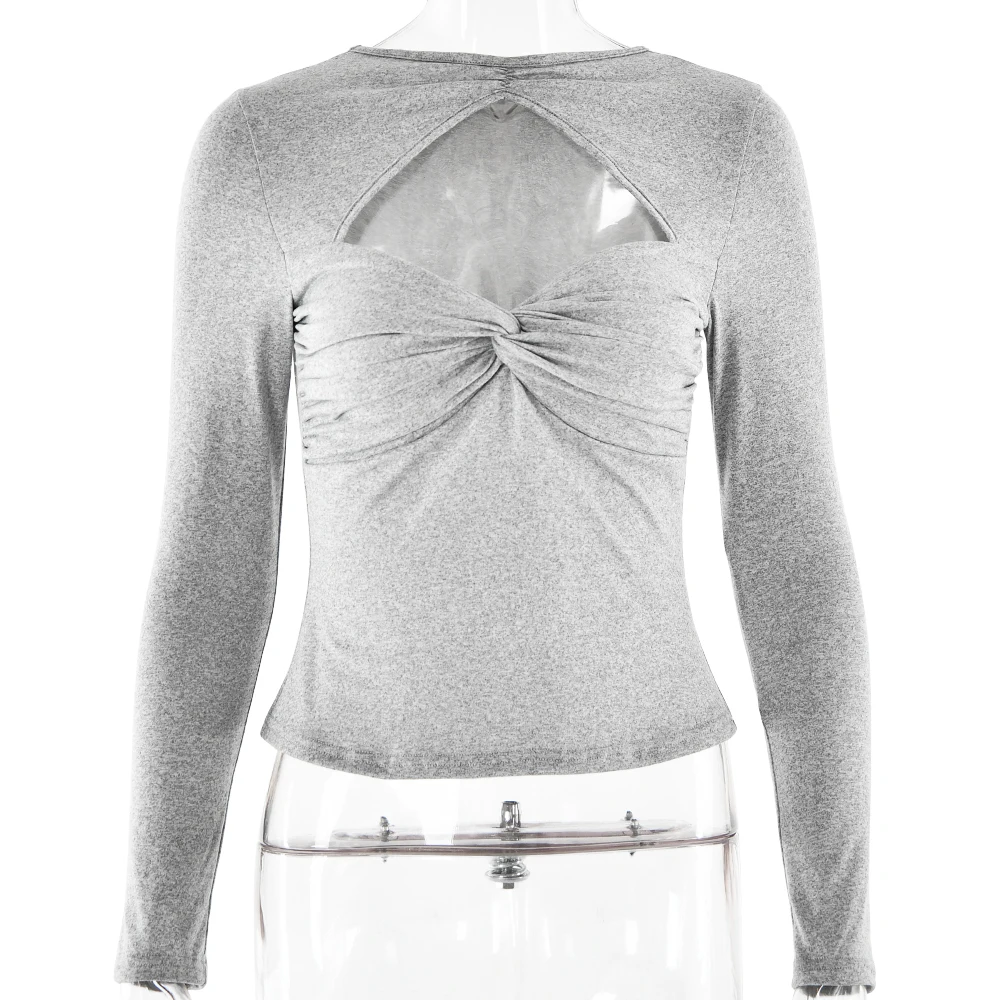 Sexy Hollow Out Long Sleeved Women Top Pleated Elastic Tight Fitting T-shirt Fashionable Street Casual Clothing Female