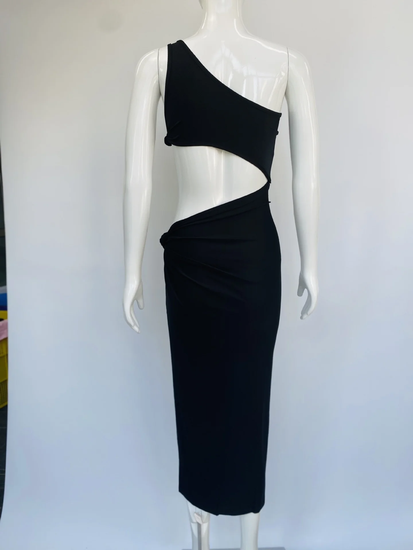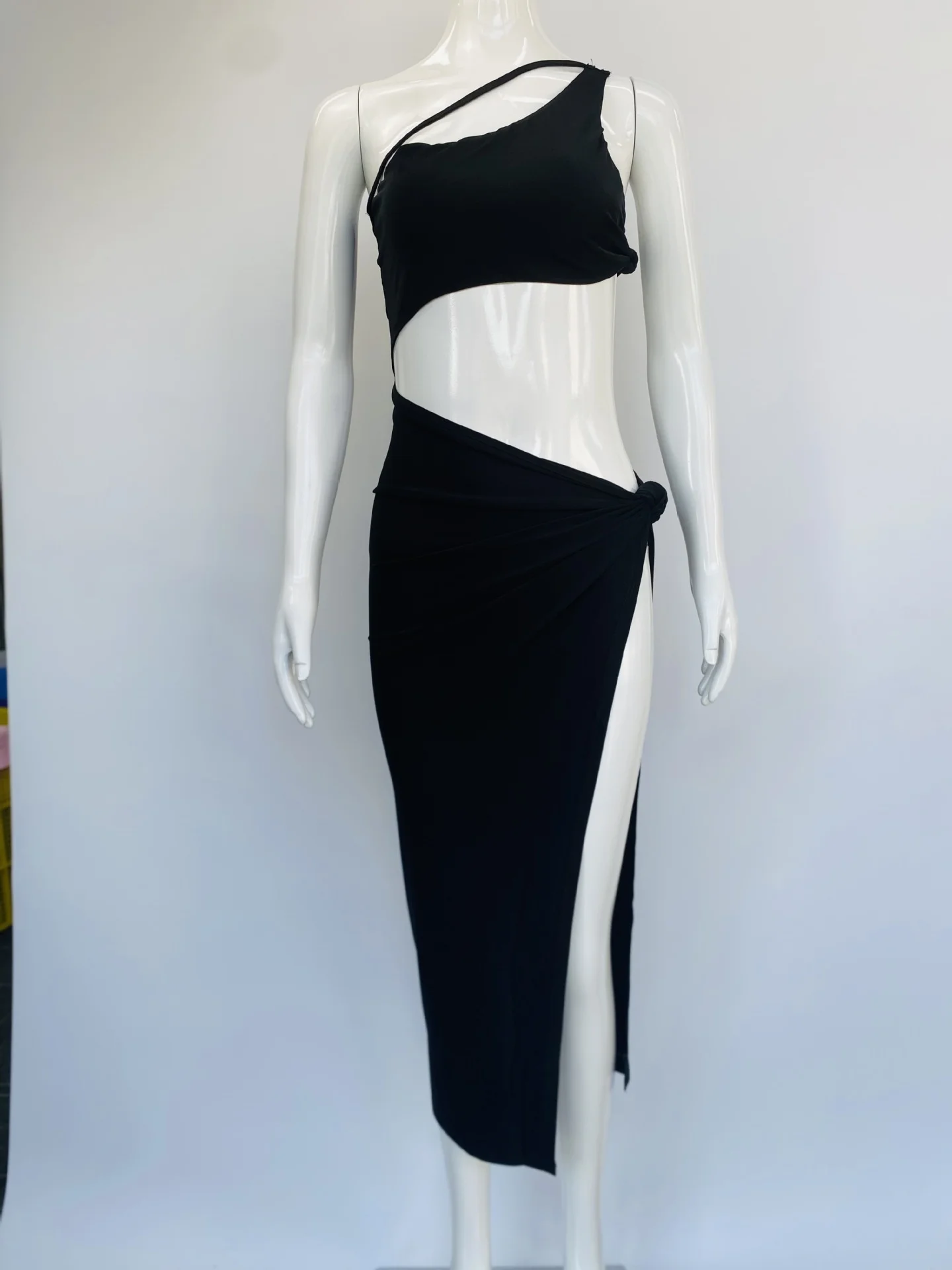 Sexy Hollow Out One Shoulder High Split Women's Dress Backless Irregular Dress Holiday Beach Dress Temperament Slim Fit