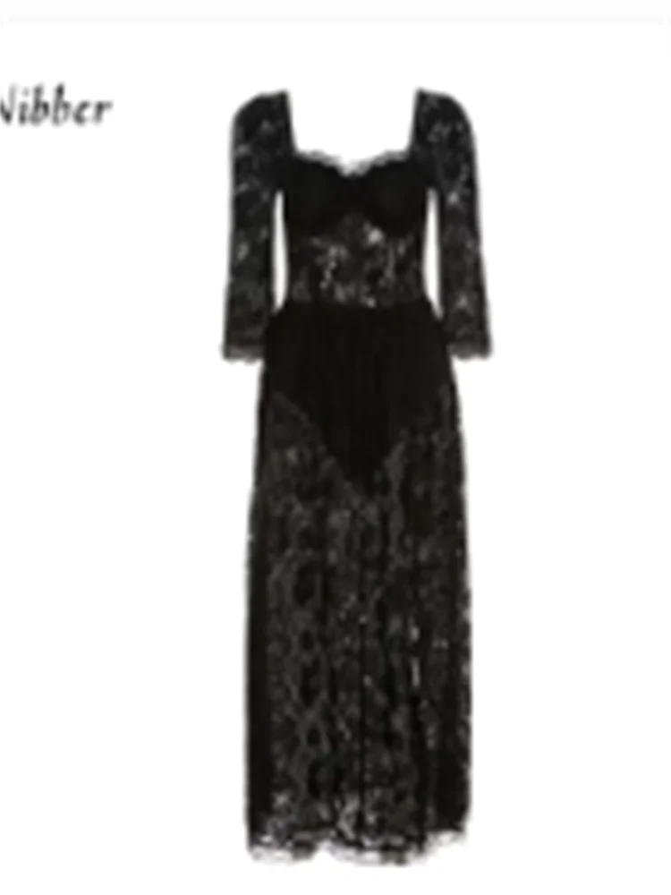 Sexy Hollow See-Though Elegant Dresses Bodycon For Womens Lace 2021 Summer Party Female Loose Long Dress Mujer Vestidos
