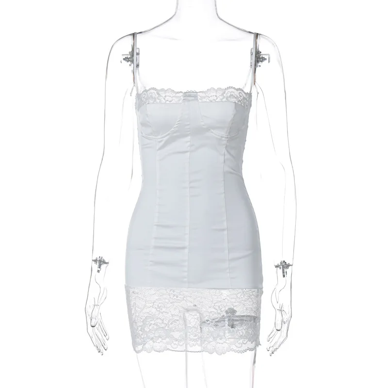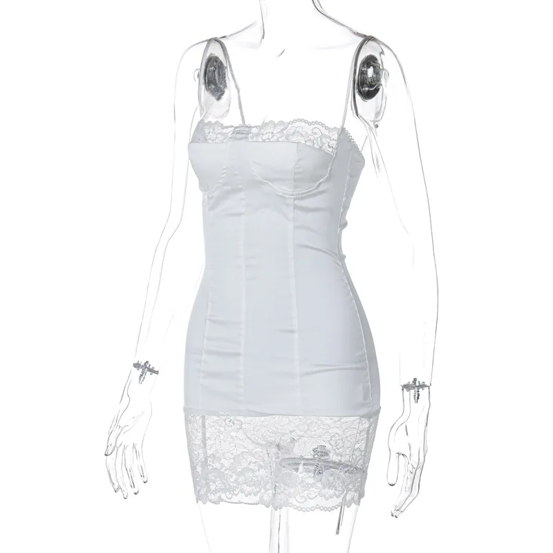 Sexy Lace Patchwork 2024 Summer Women's Dress New Bodycon Tight Wrap Hip Tie Up Dress Party Beach Vacation Vestidos