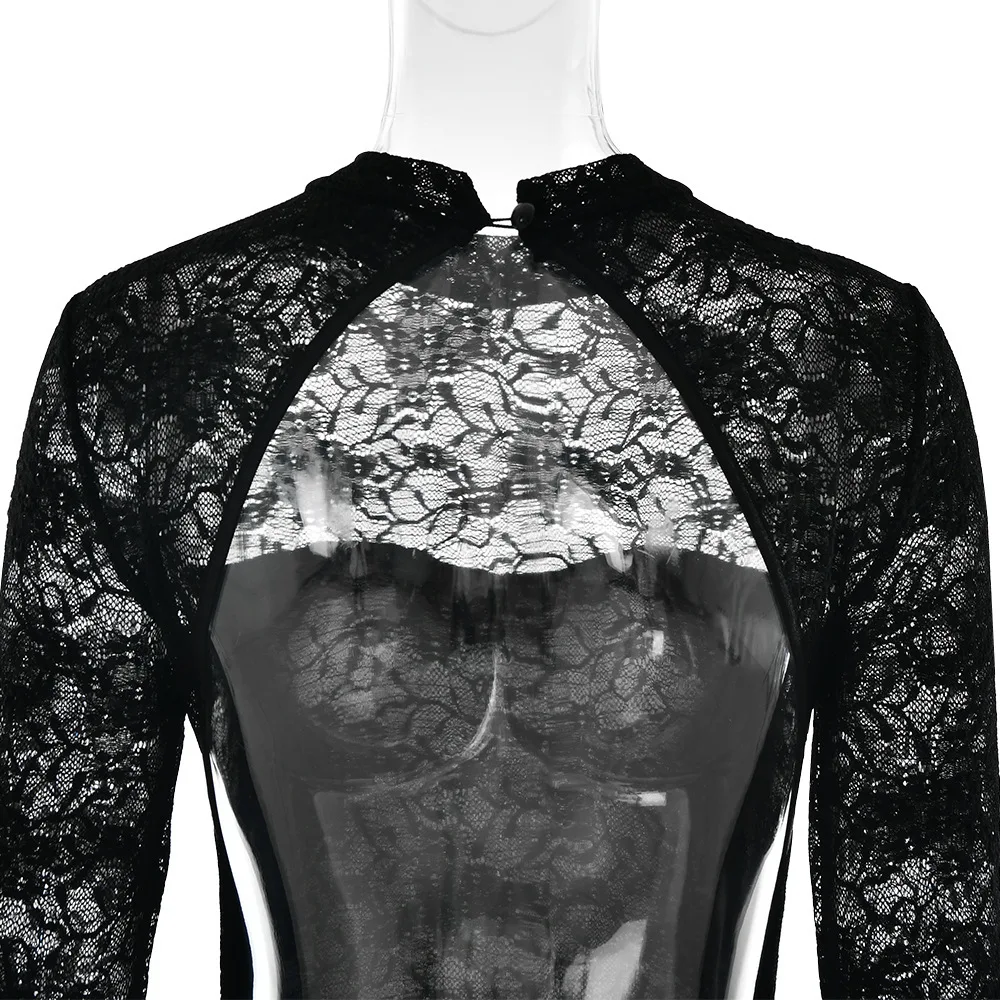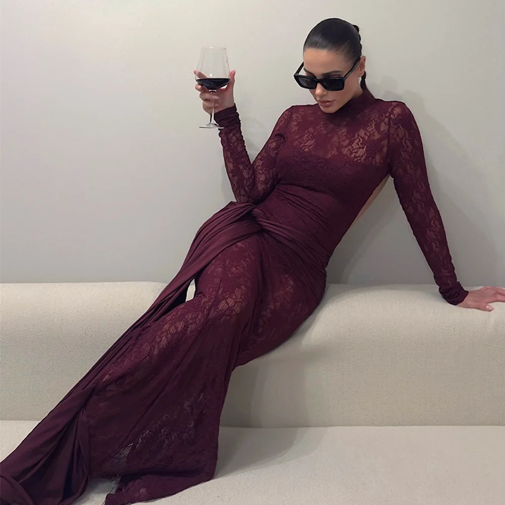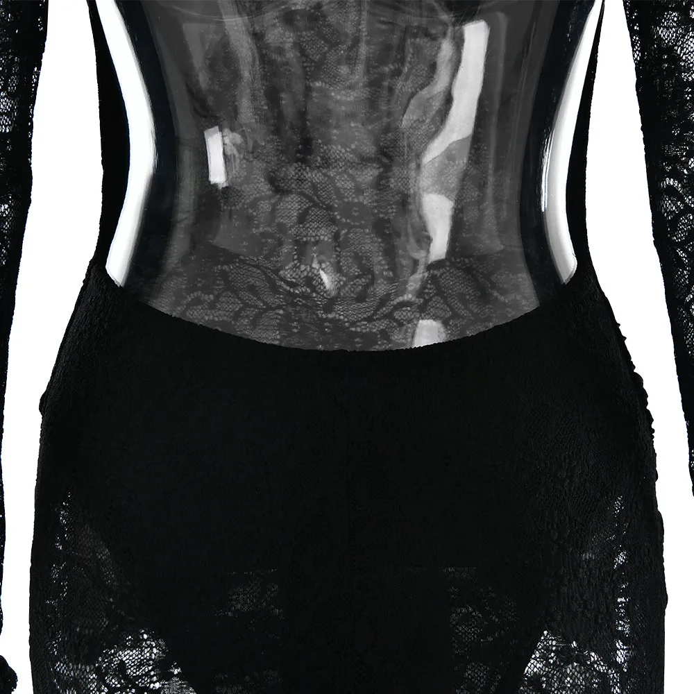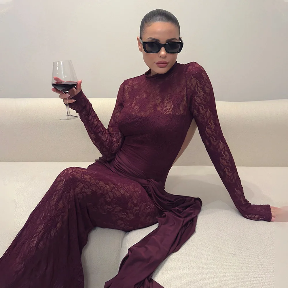 Sexy Lace Patchwork Backless Bodycon Party Club Evening Dress Women 2025 Winter New Female Dress Slim Fit Lace Vestido