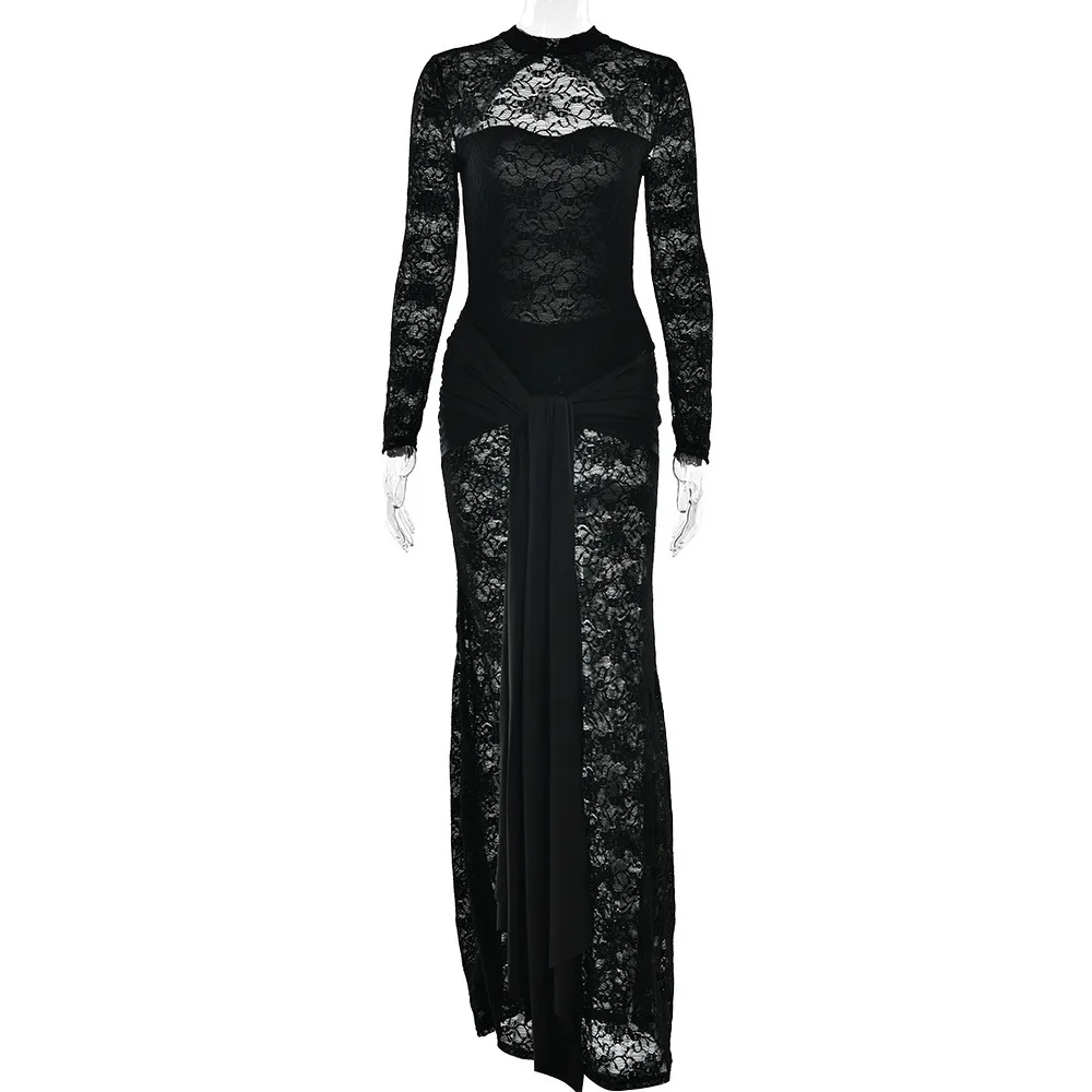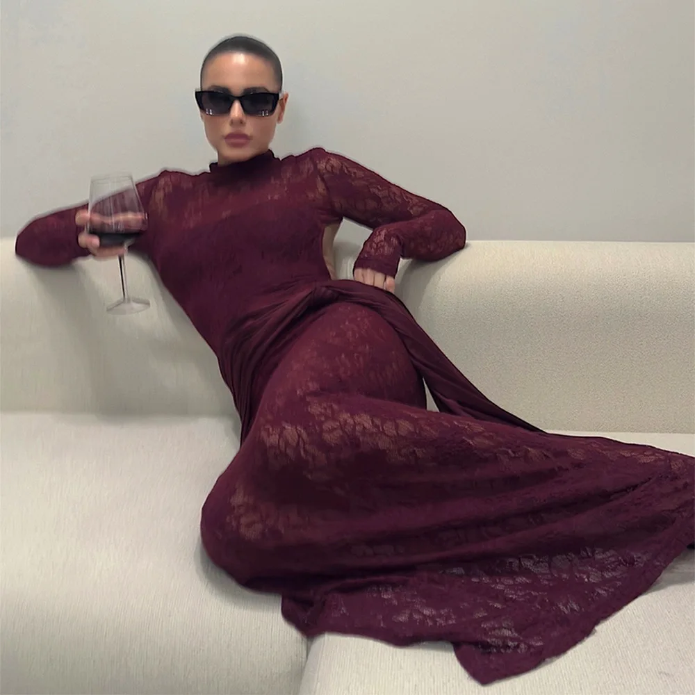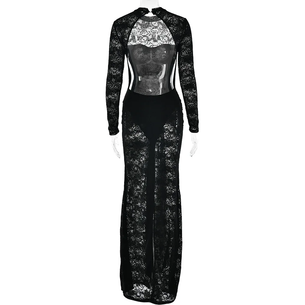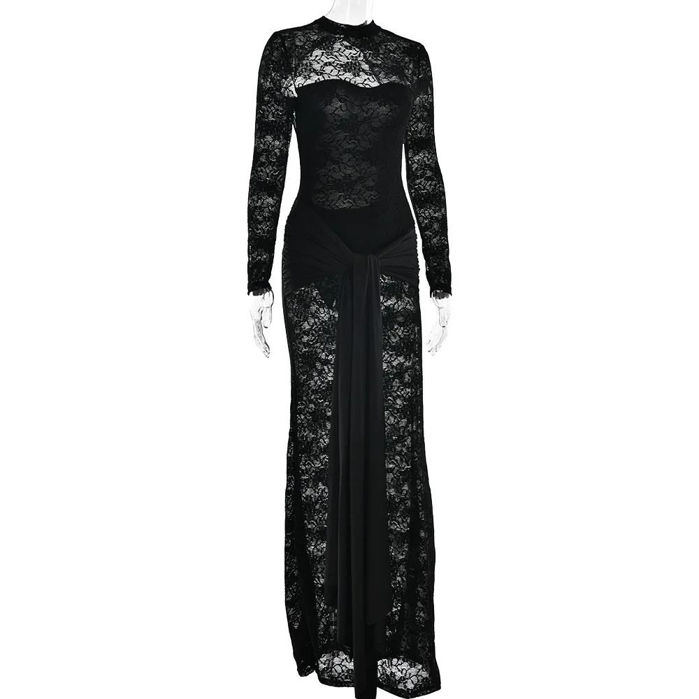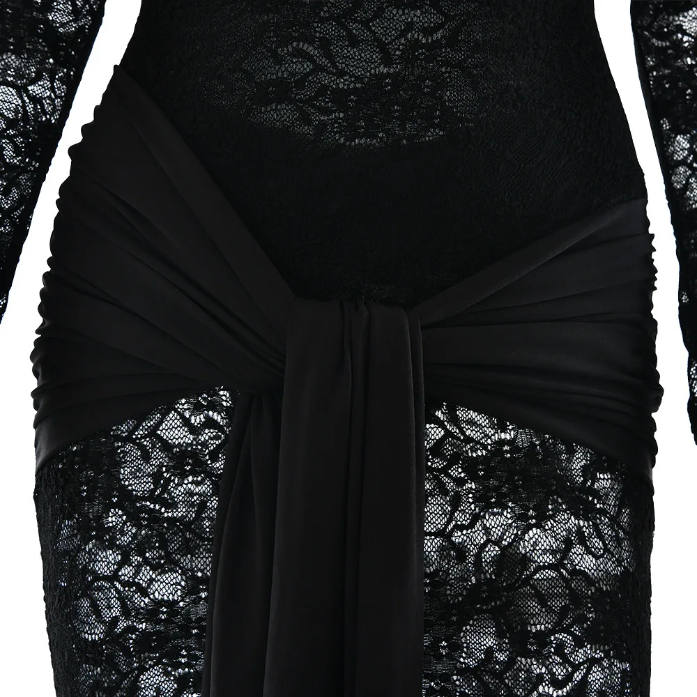 Sexy Lace Patchwork Backless Bodycon Party Club Evening Dress Women 2025 Winter New Female Dress Slim Fit Lace Vestido