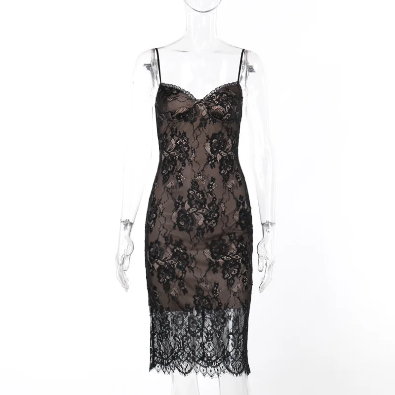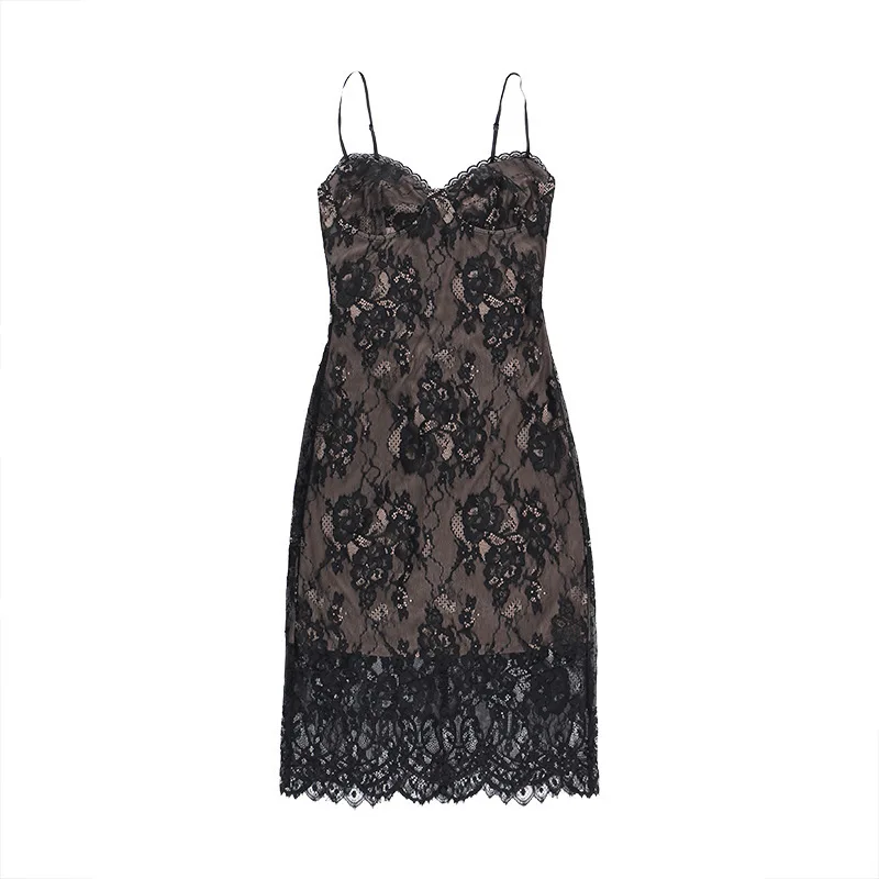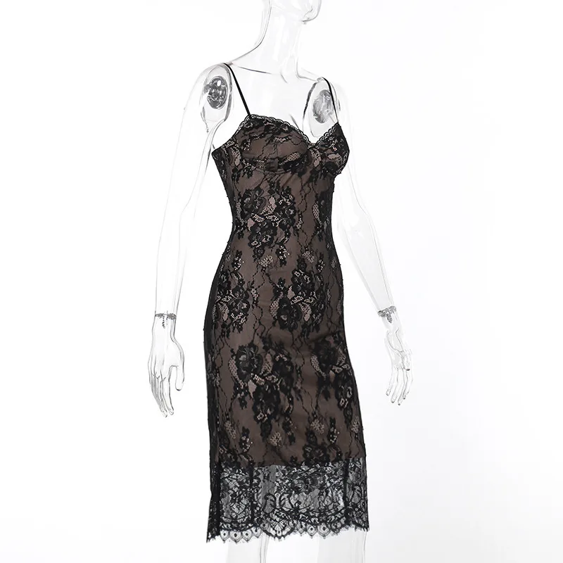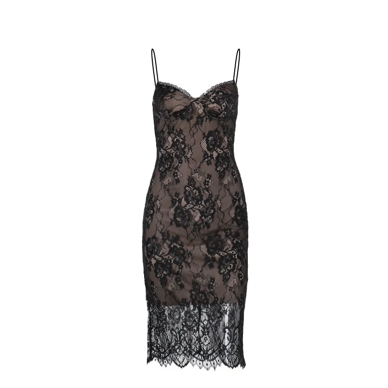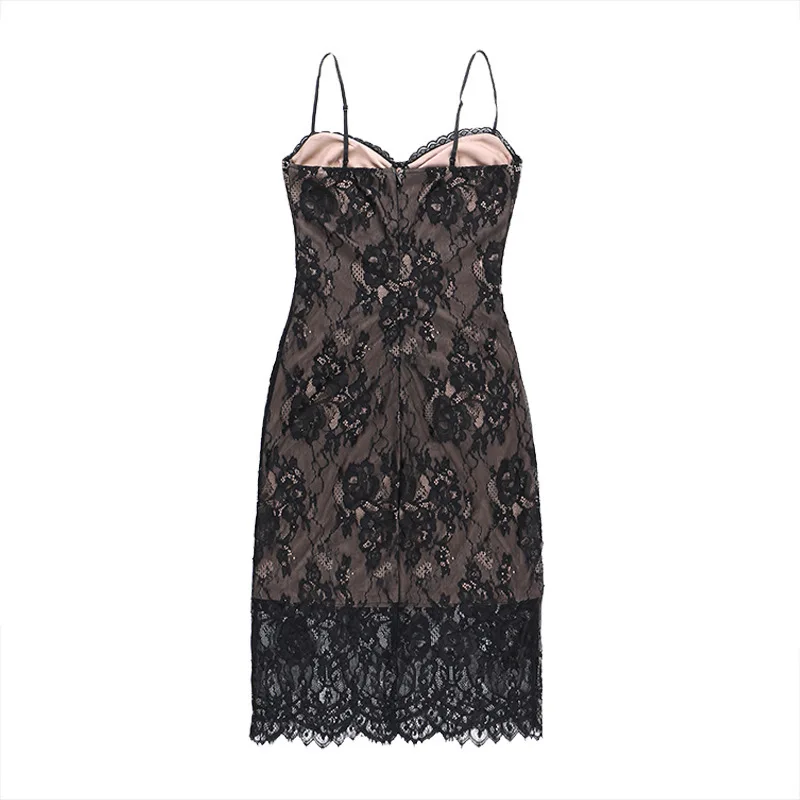 Sexy Lace Patchwork Lace Up Dress For Women's 2024 Summer Season New Elastic Tight Waist Pack Hip Party Club Clothing