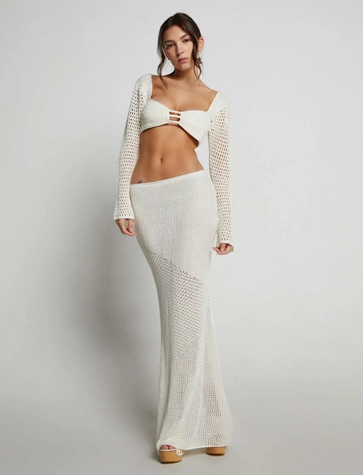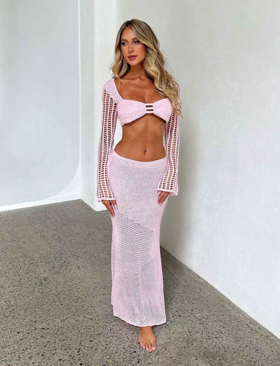2022 summer women's new vest Hip Wrap casual knitted Skirt Set