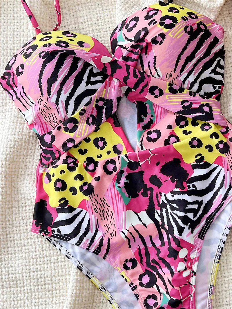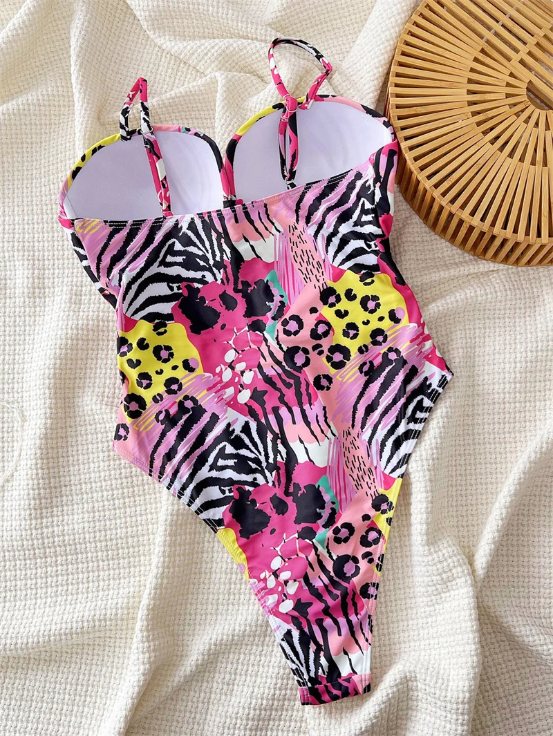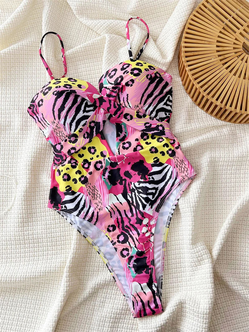 Sexy Leopard Print Women One Piece Swimwear 2025 High Waist Backless Monokini Hollow Out Bathing Suit