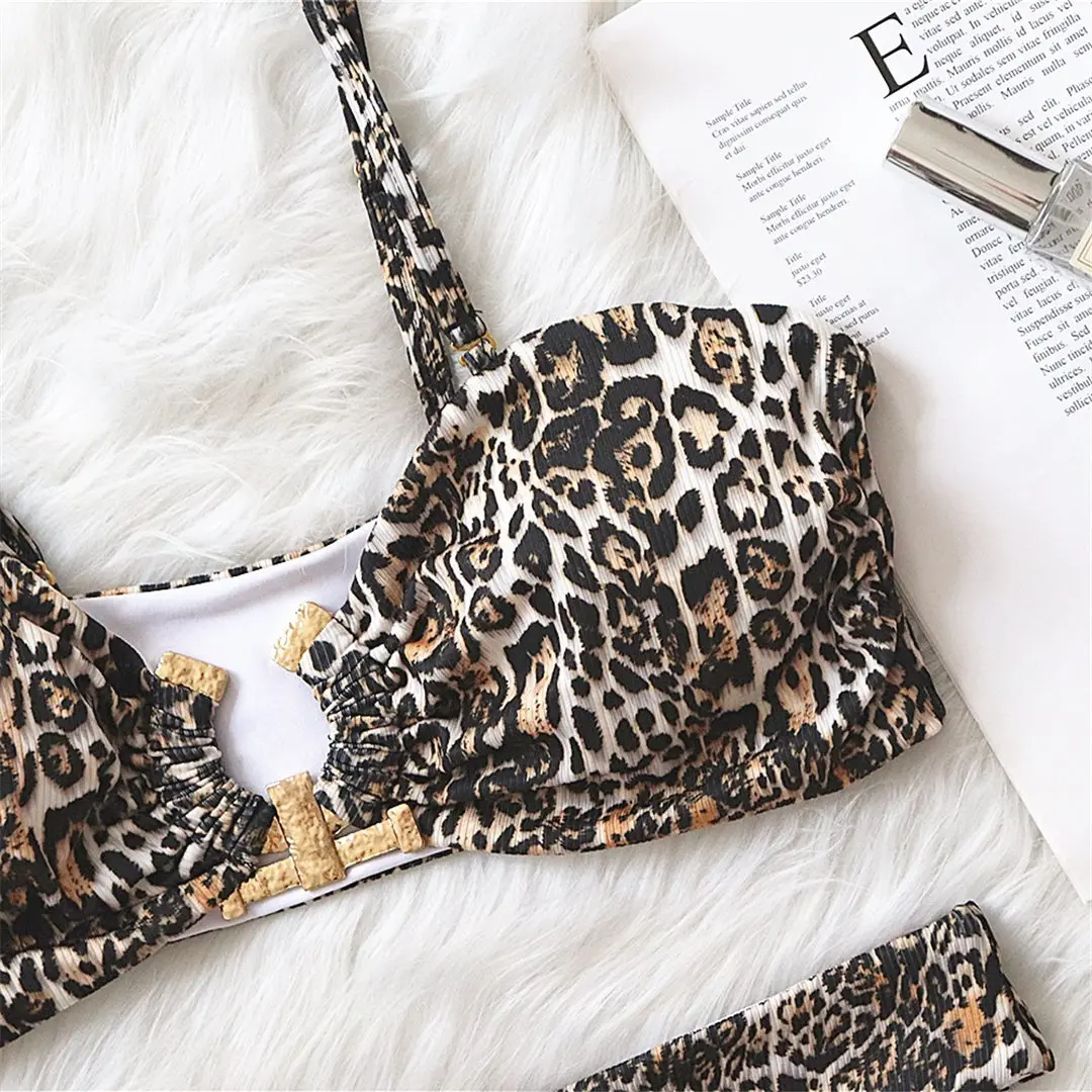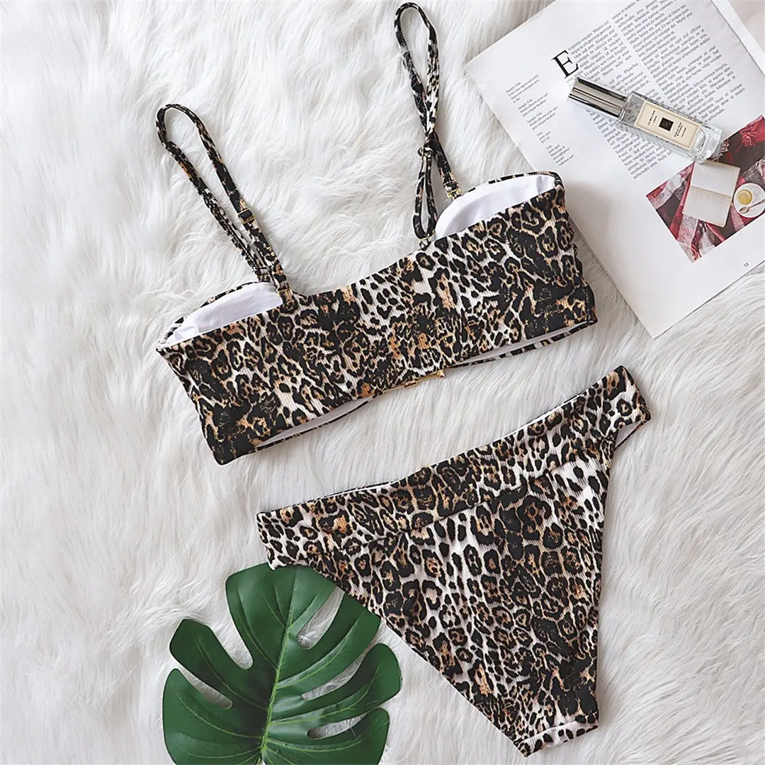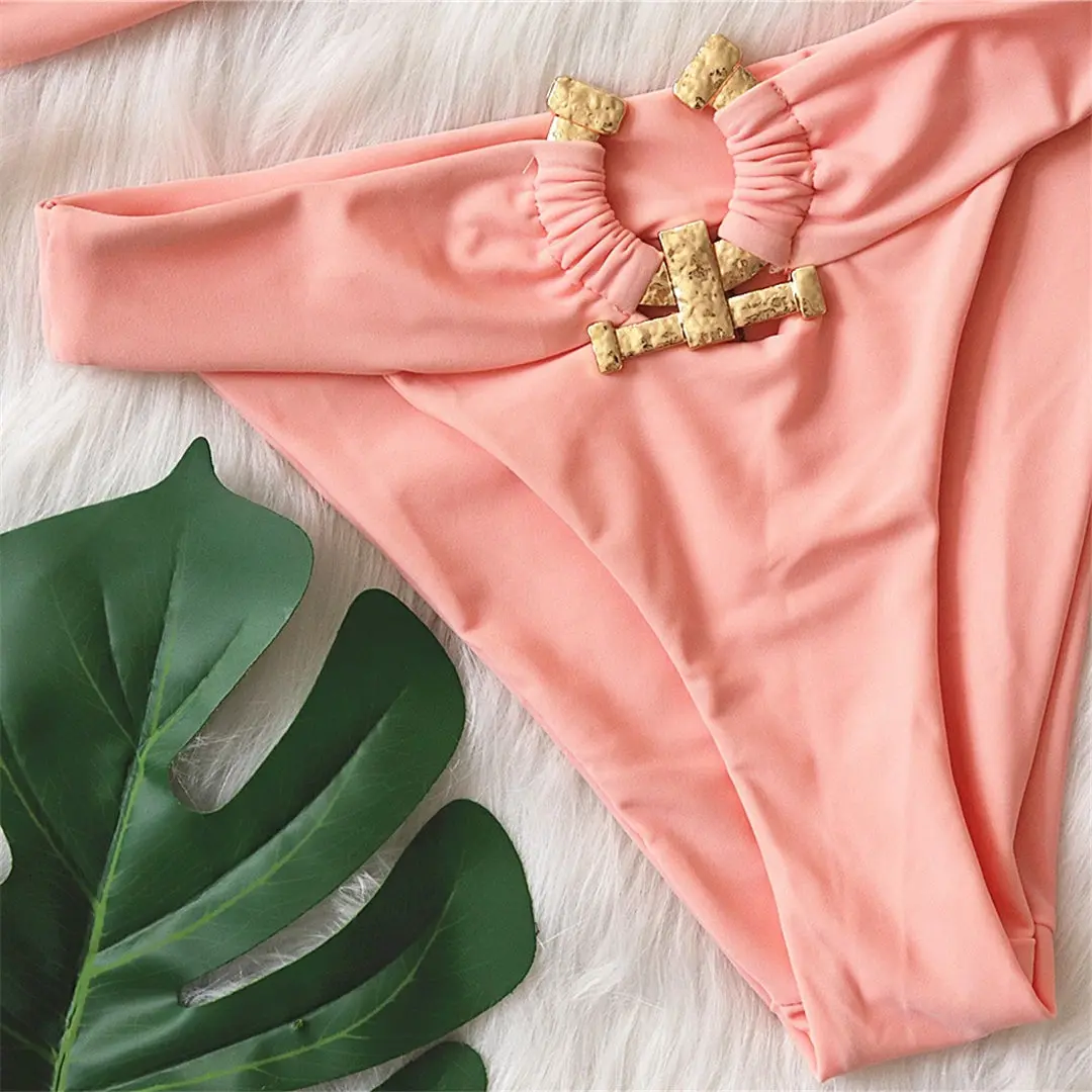 Sexy Metal Ring Strapless Bikini Women Swimwear Female Swimsuit Two-pieces Bikini set Bandeau Bather Bathing Suit Swim V2855W