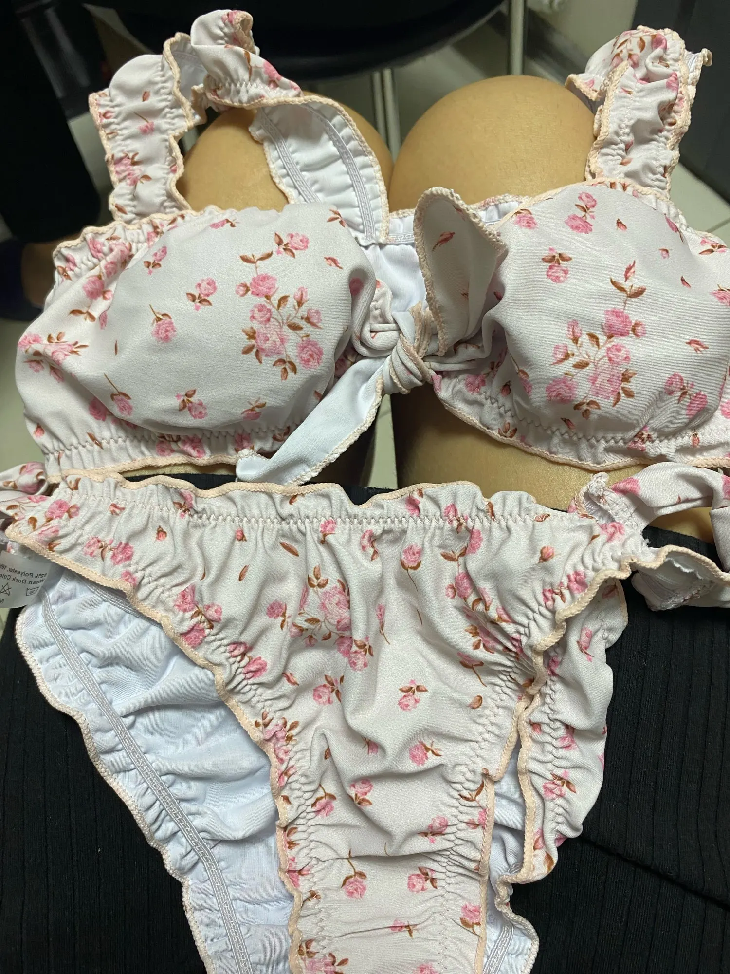 Beautiful swimsuit, but uncomfortable. The bodice is sewn with a current, ahead of the tie is an imitation. In it you can only sunbathe, in the water it will rise up.