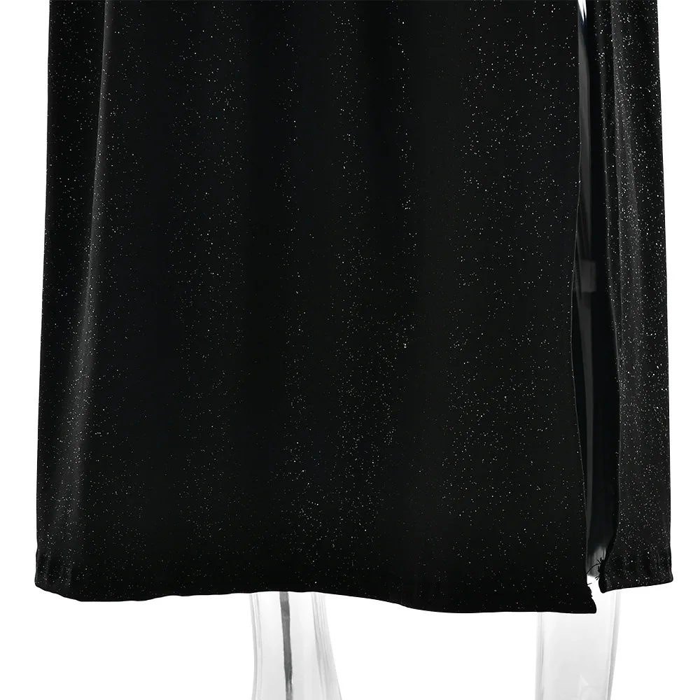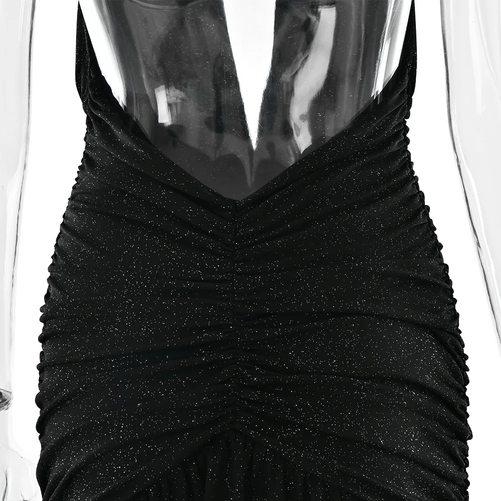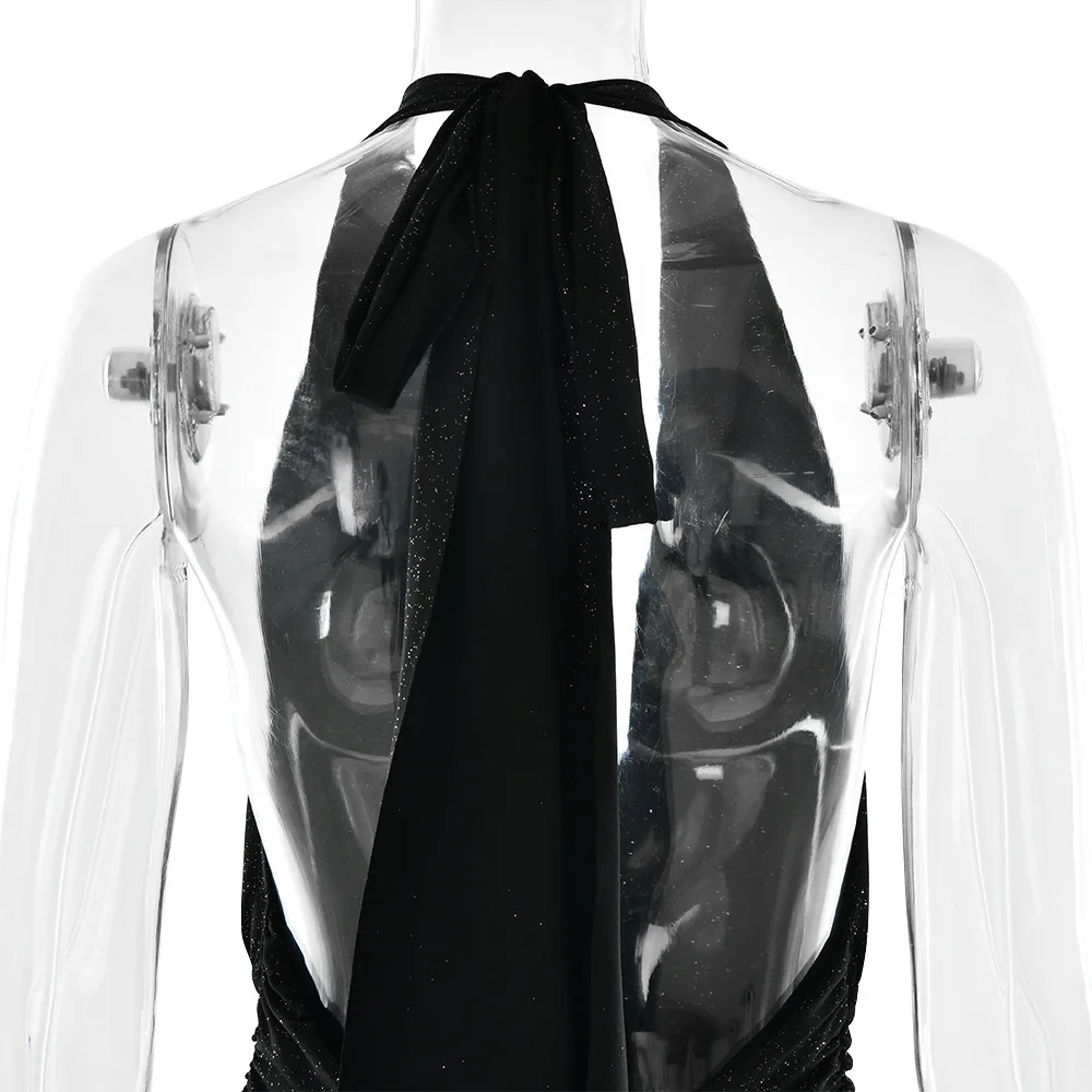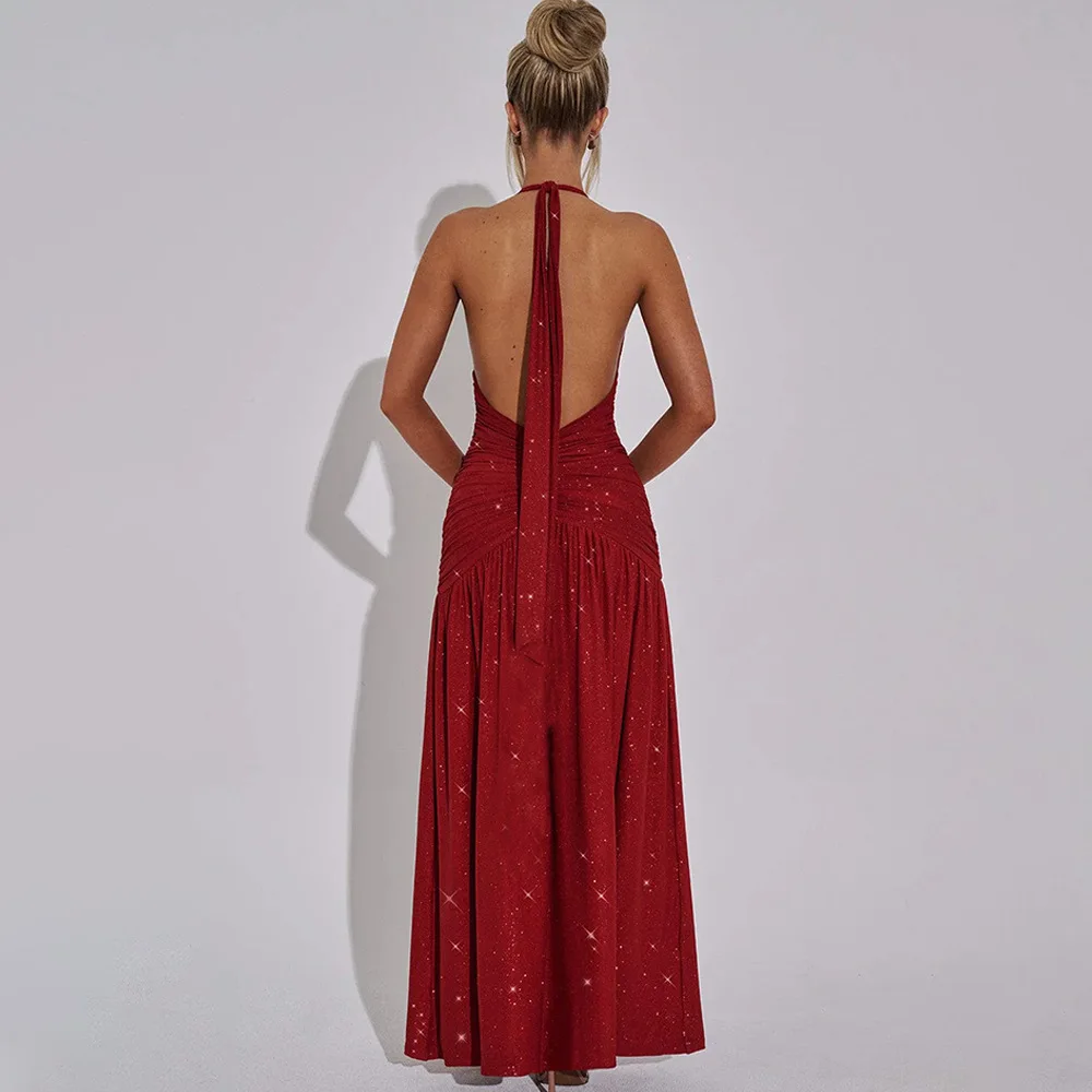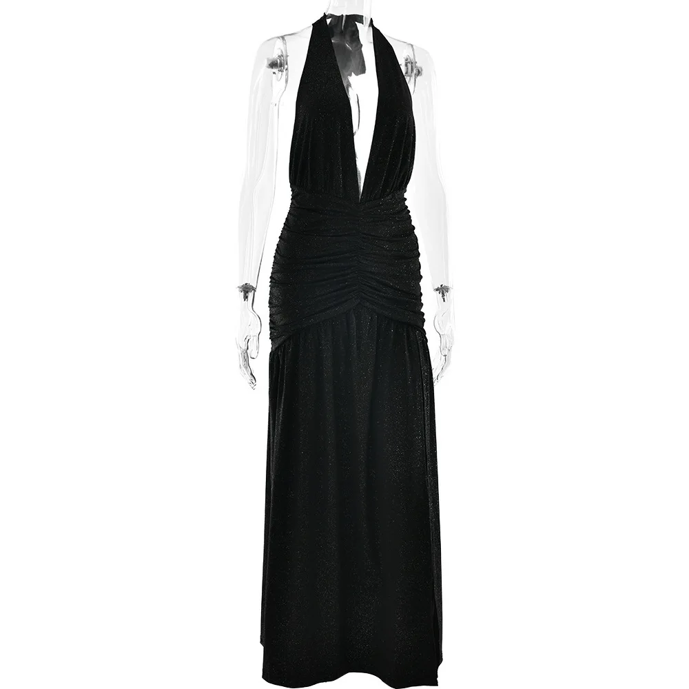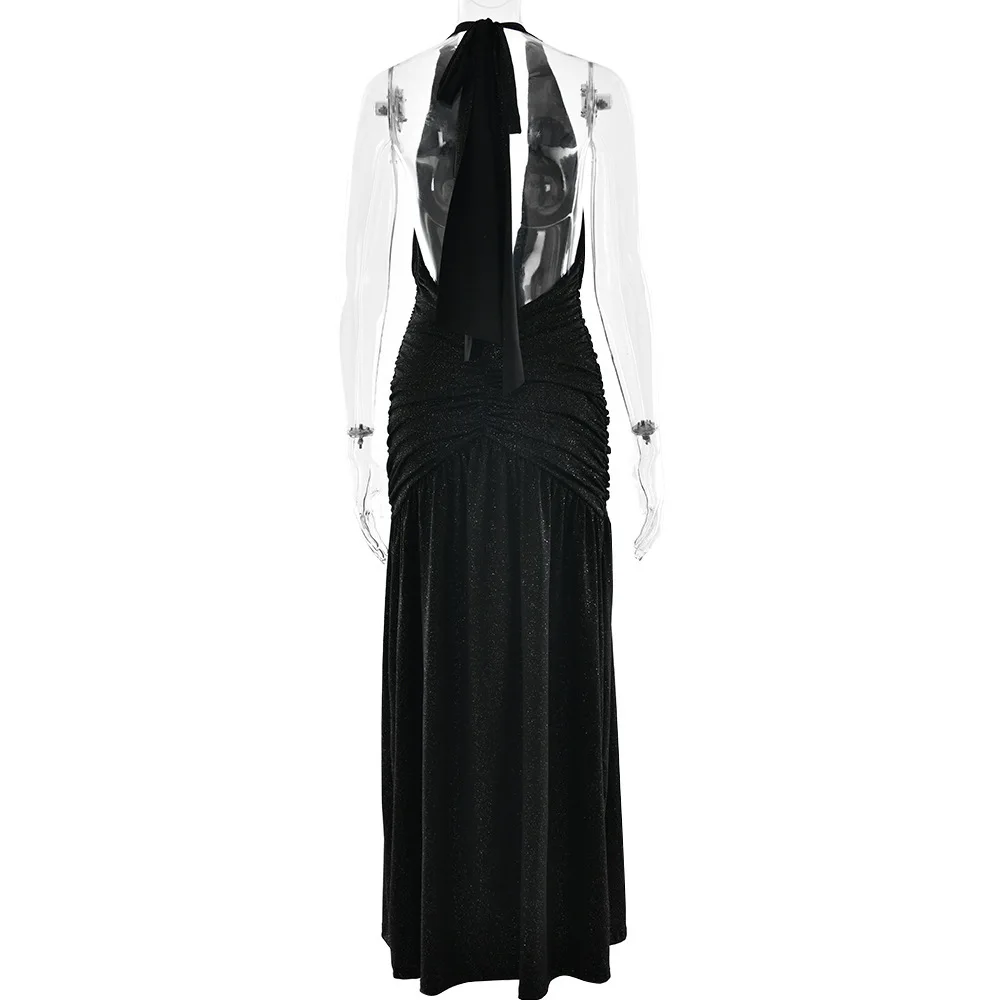 Sexy Sleeveless Backless Shiny Silver Silk Strap Dress For Women Spring 2025 Vestidos Slit Slim Party Evening Dress