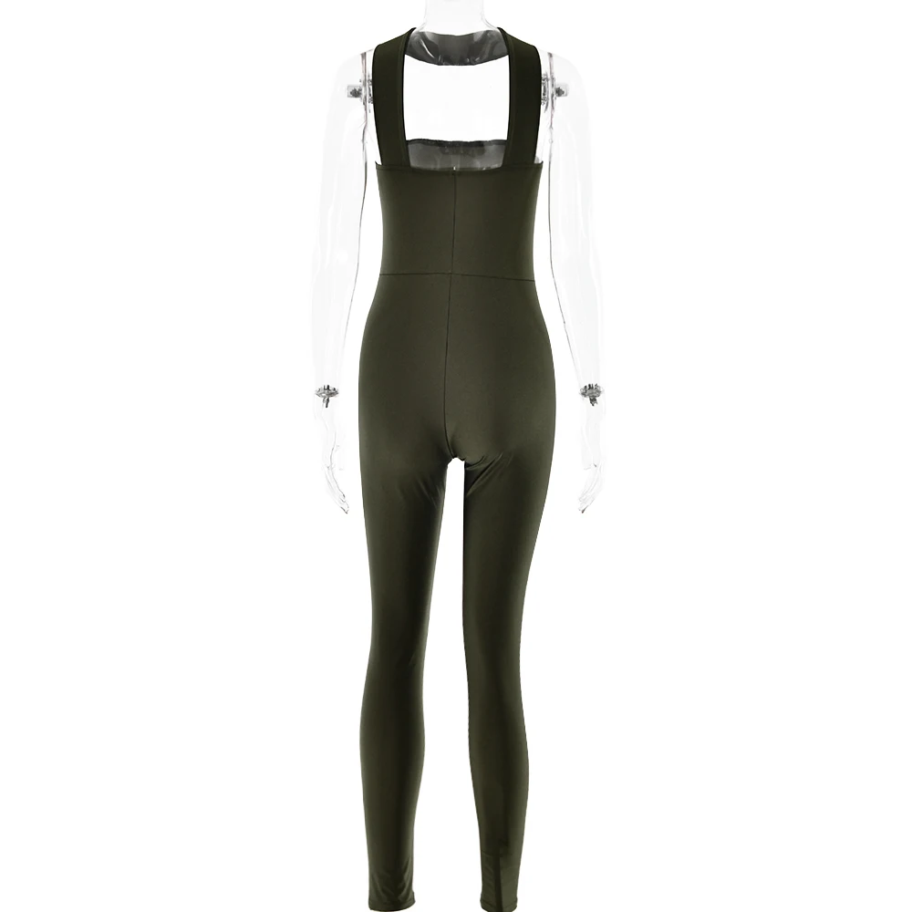 Sexy Sleeveless Collar Elastic Tight Fitting Jumpsuit Women Slim Pencil Pants Female Jumpsuit Dance Party Clubwear 2024