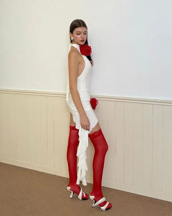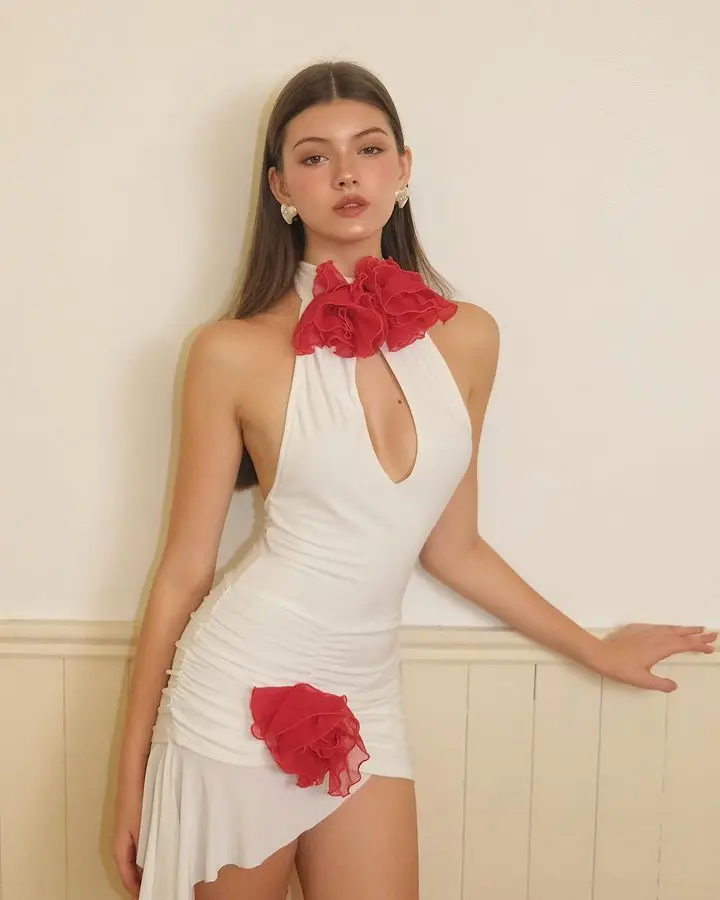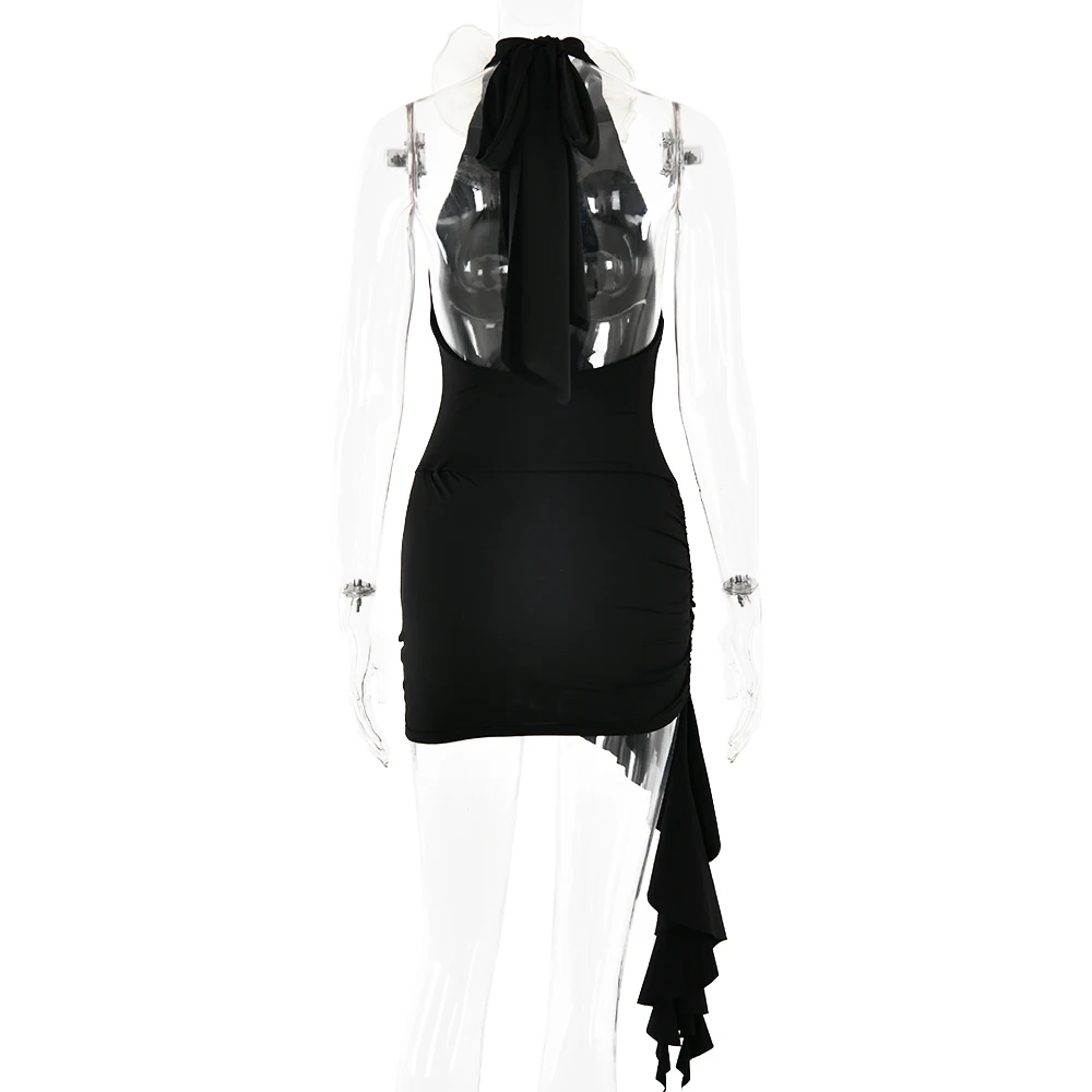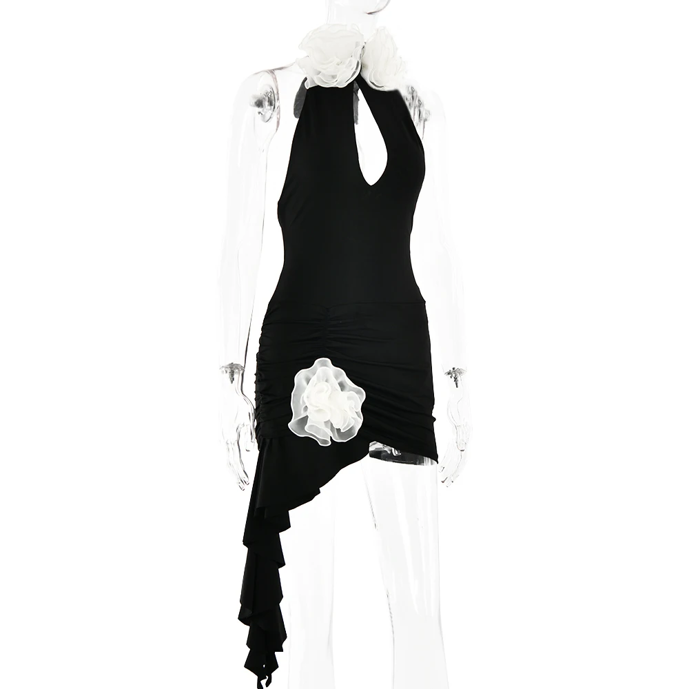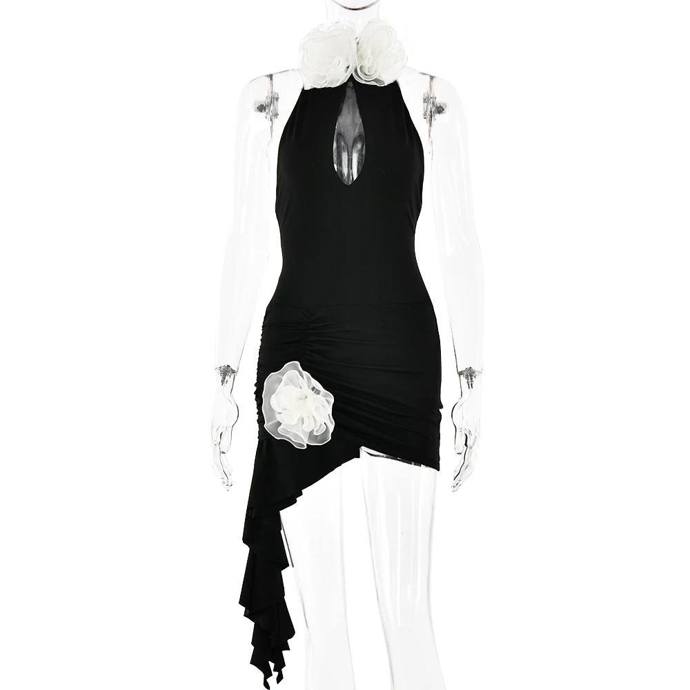 Sexy Sleeveless Flower Decorative Backless Dress For Women Slim Ruffles Flowing Straps Vestidos Party Club Evening Dress