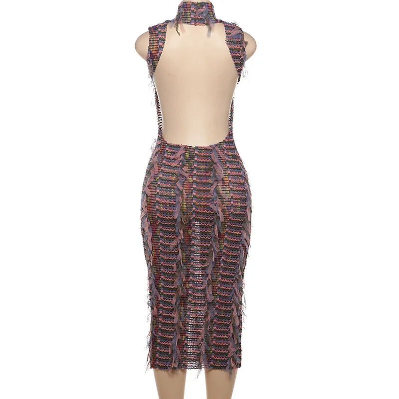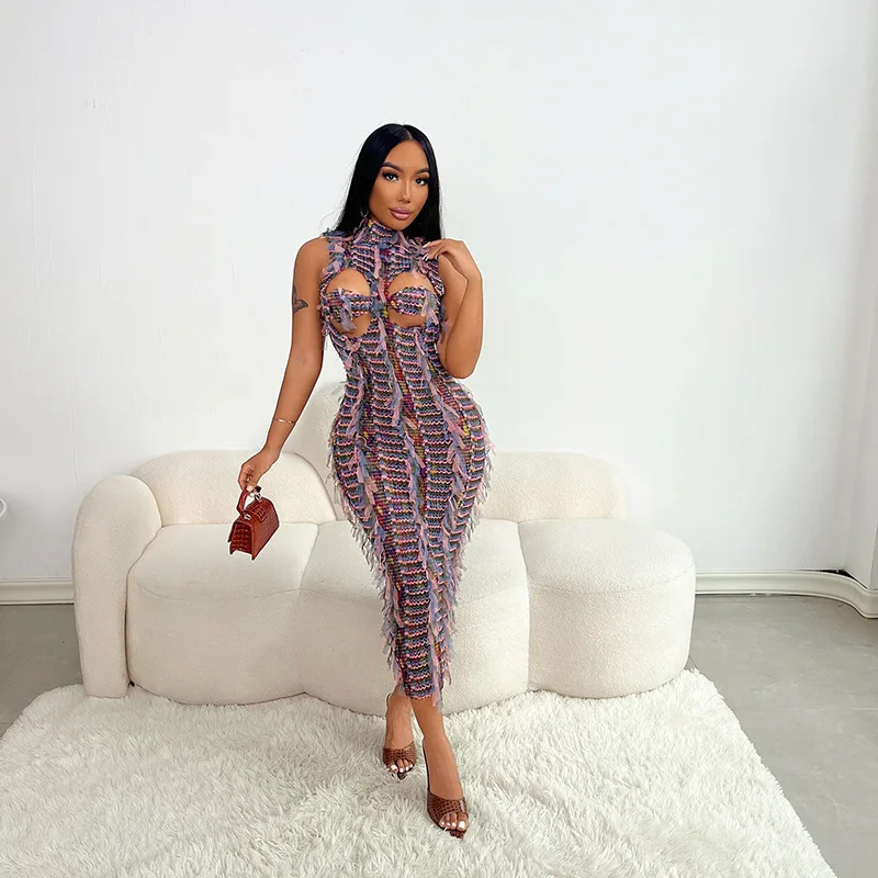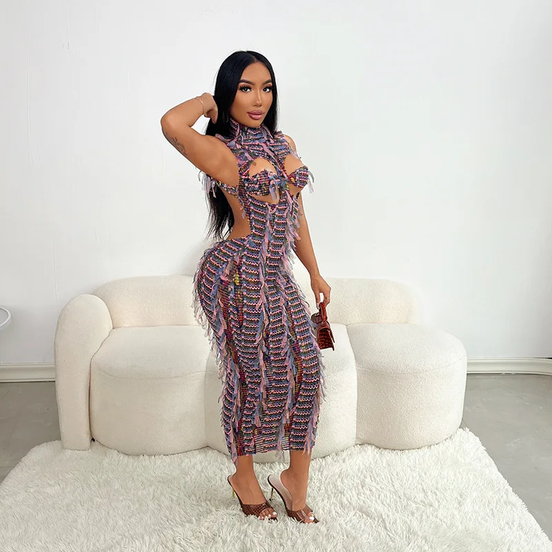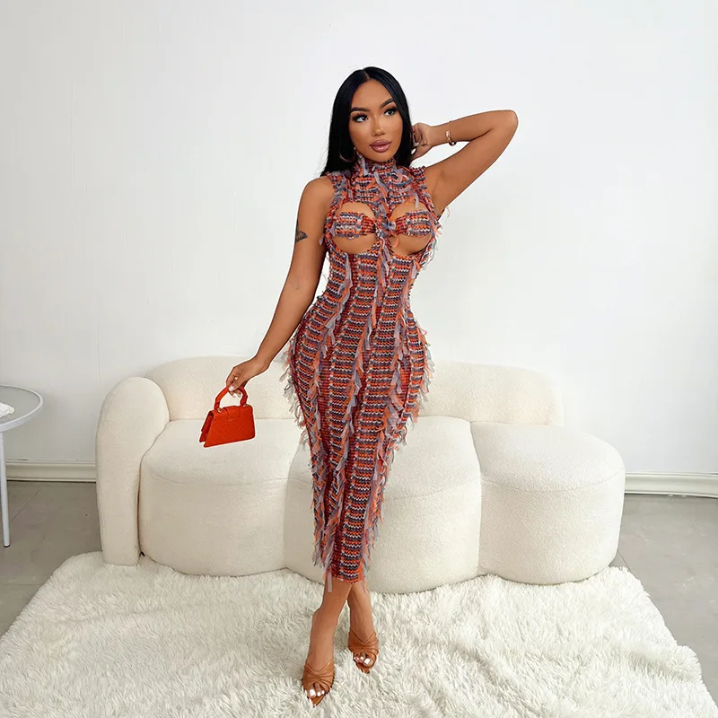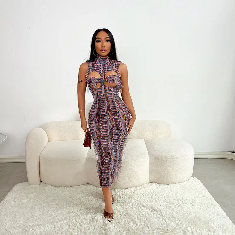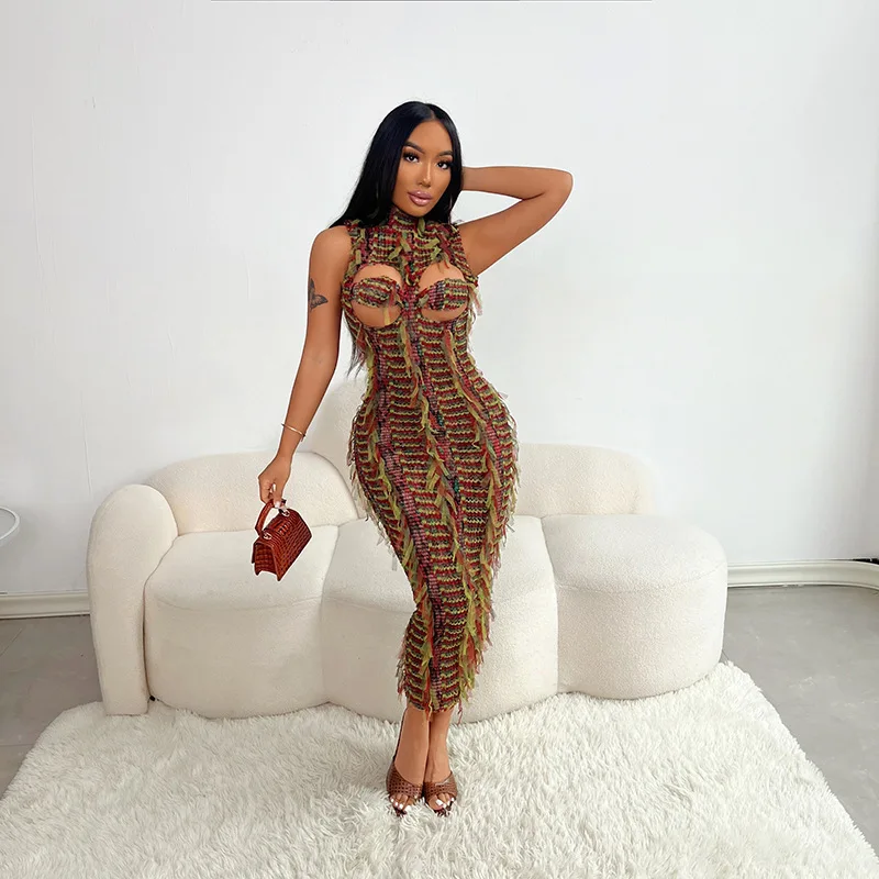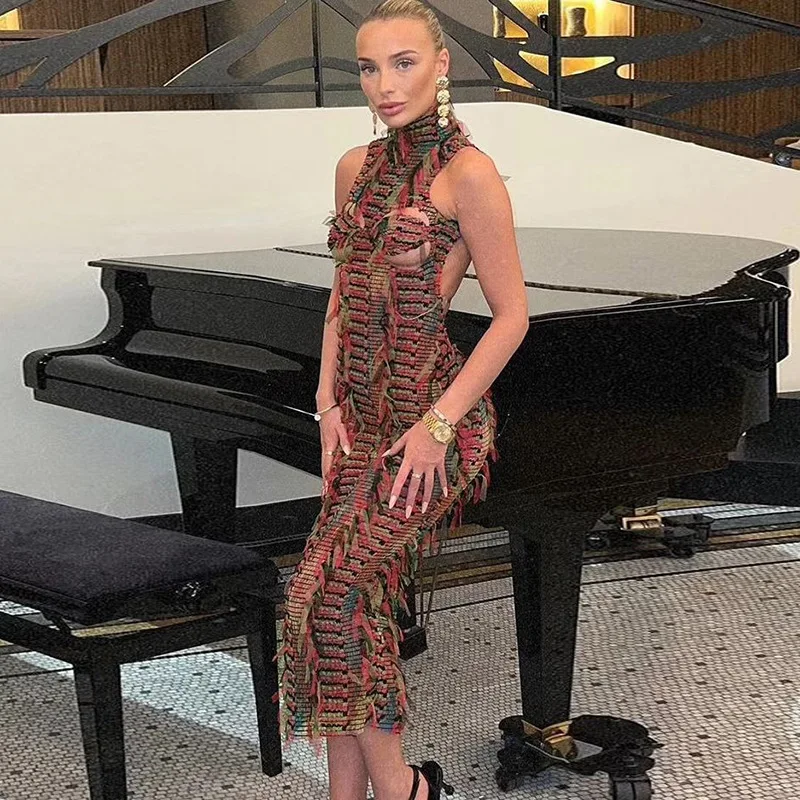 Sexy Sleeveless Hollow Out Bodycon Long Dress For Women 2025 New Women High Neck Street Fashion High Waist Slim Vestidos