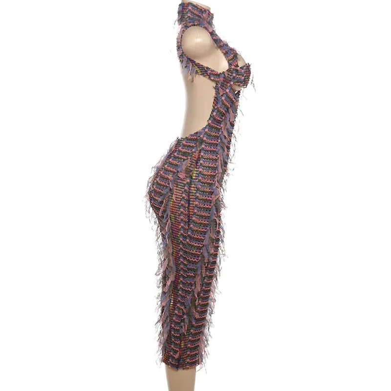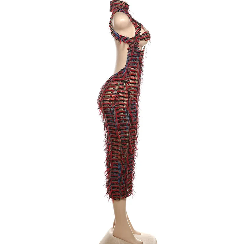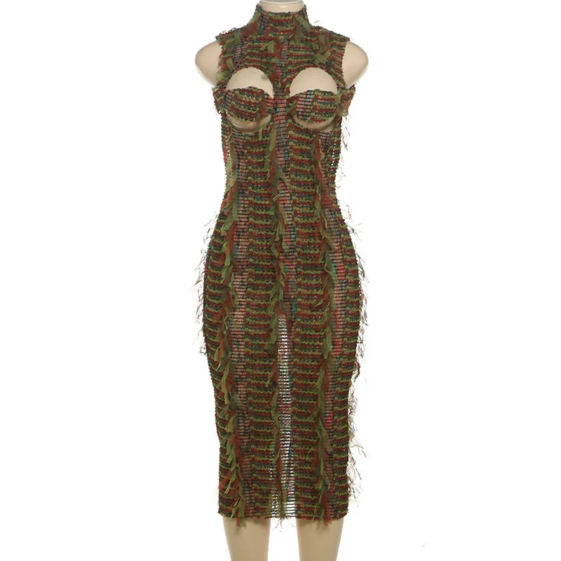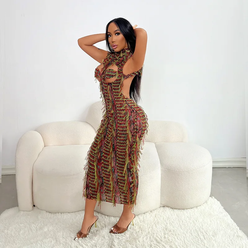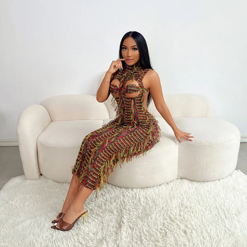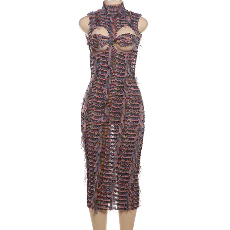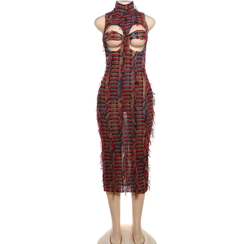 Sexy Sleeveless Hollow Out Bodycon Long Dress For Women 2025 New Women High Neck Street Fashion High Waist Slim Vestidos