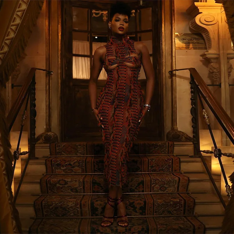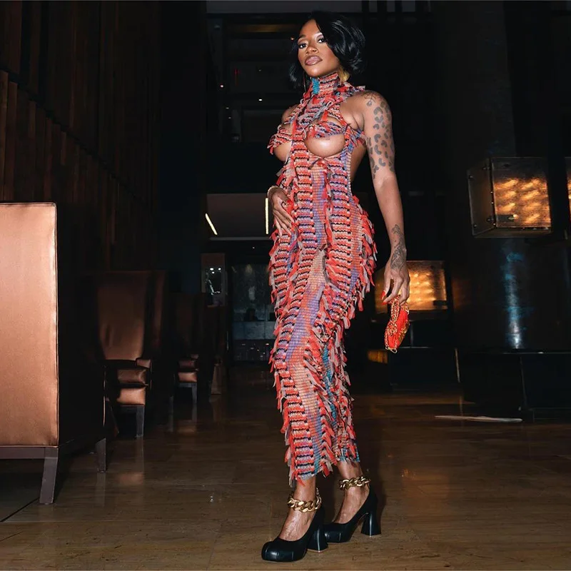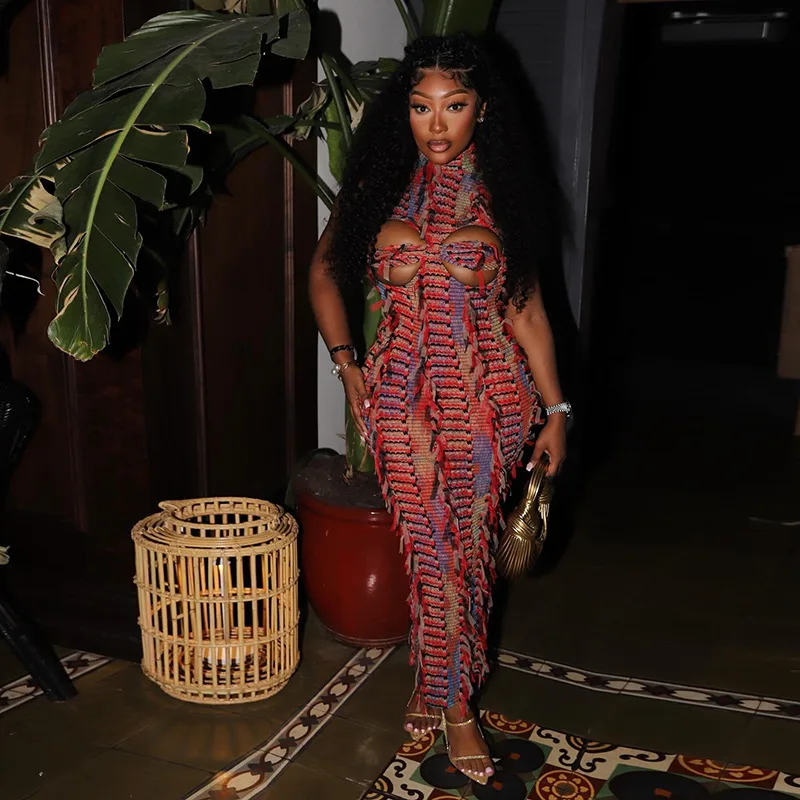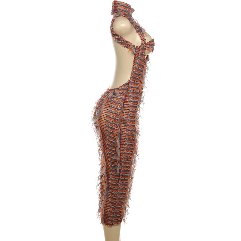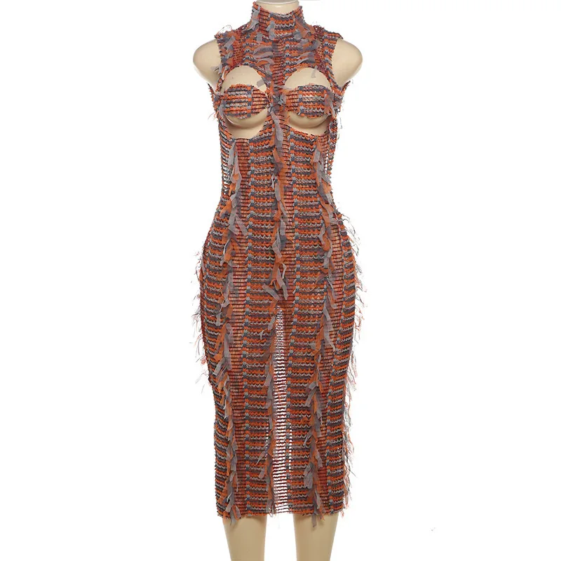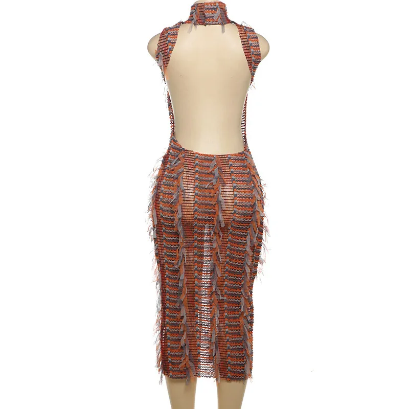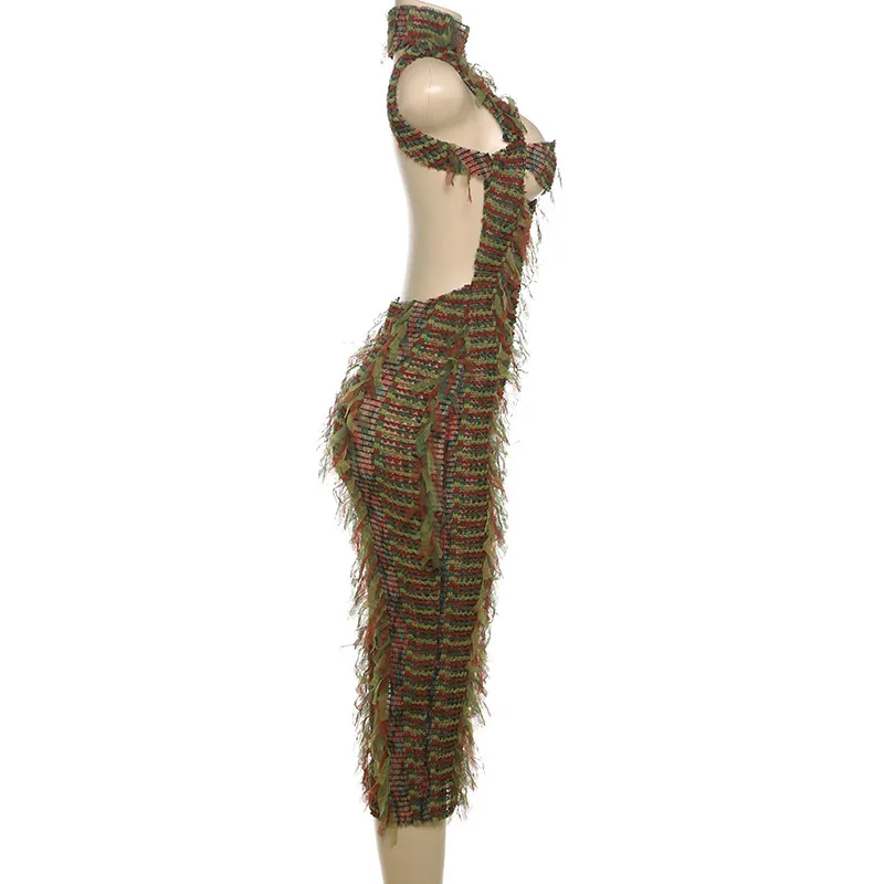 Sexy Sleeveless Hollow Out Bodycon Long Dress For Women 2025 New Women High Neck Street Fashion High Waist Slim Vestidos