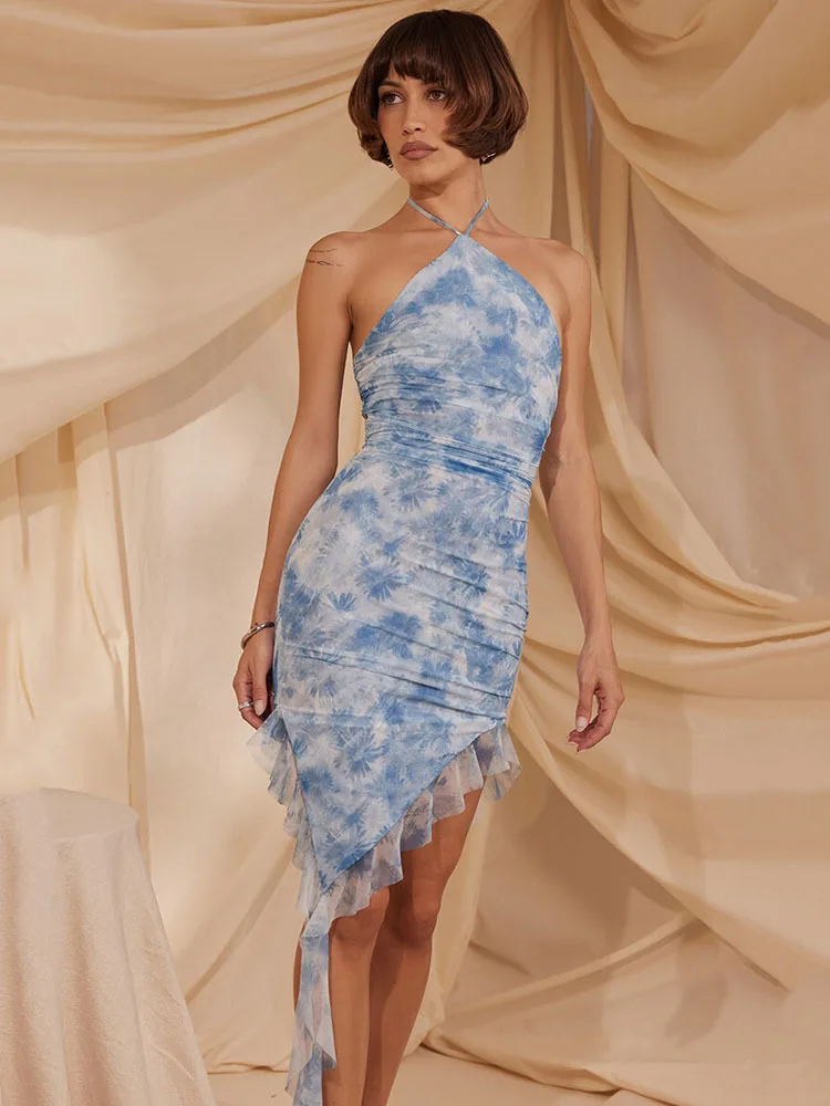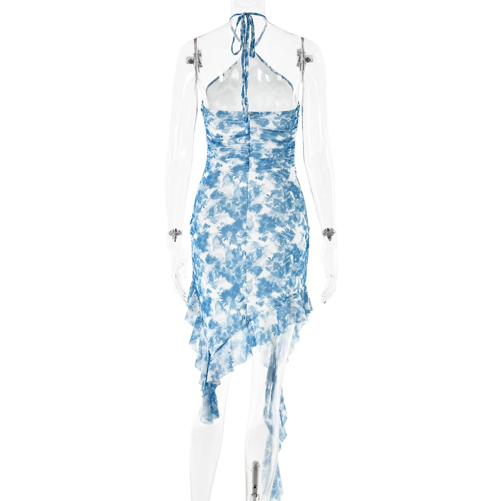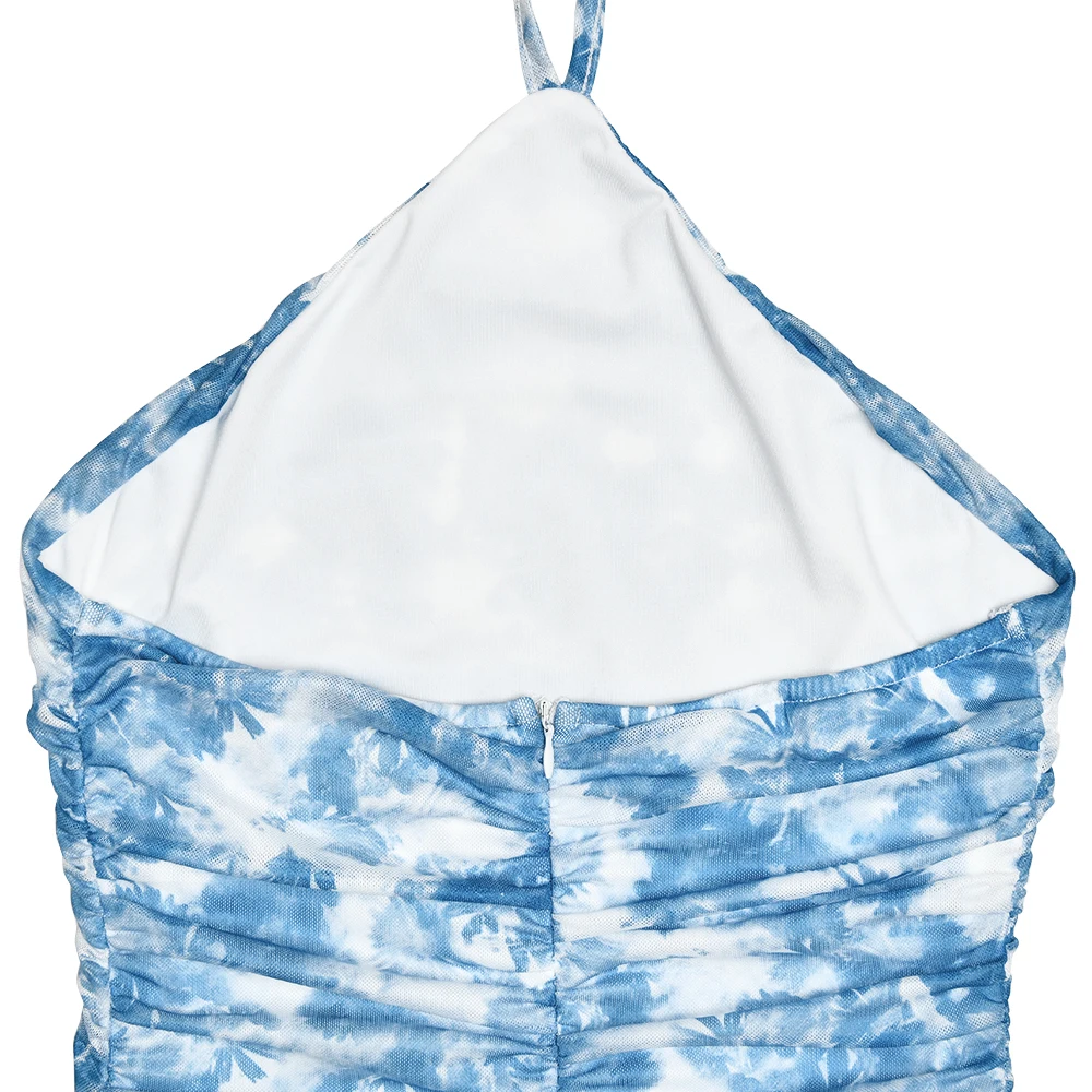 Sexy Sleeveless Mesh Patchwork Open Back Zipper Dress Women Bodycon Printed Mini Dress Female Party Club Evening Dress