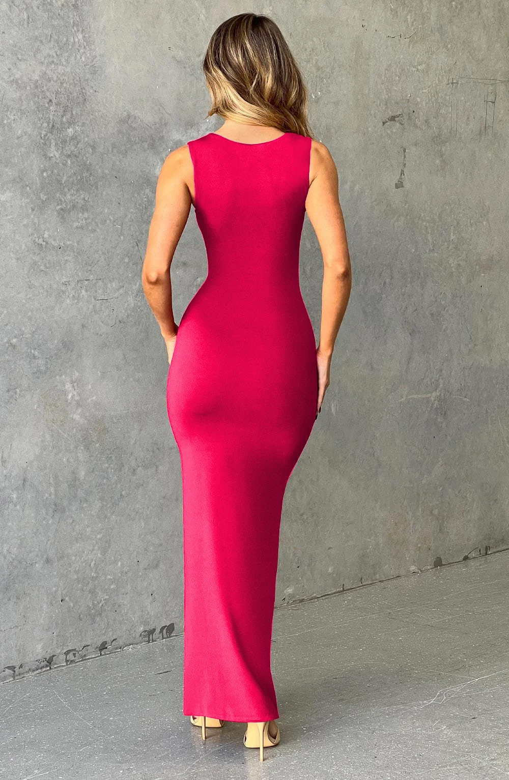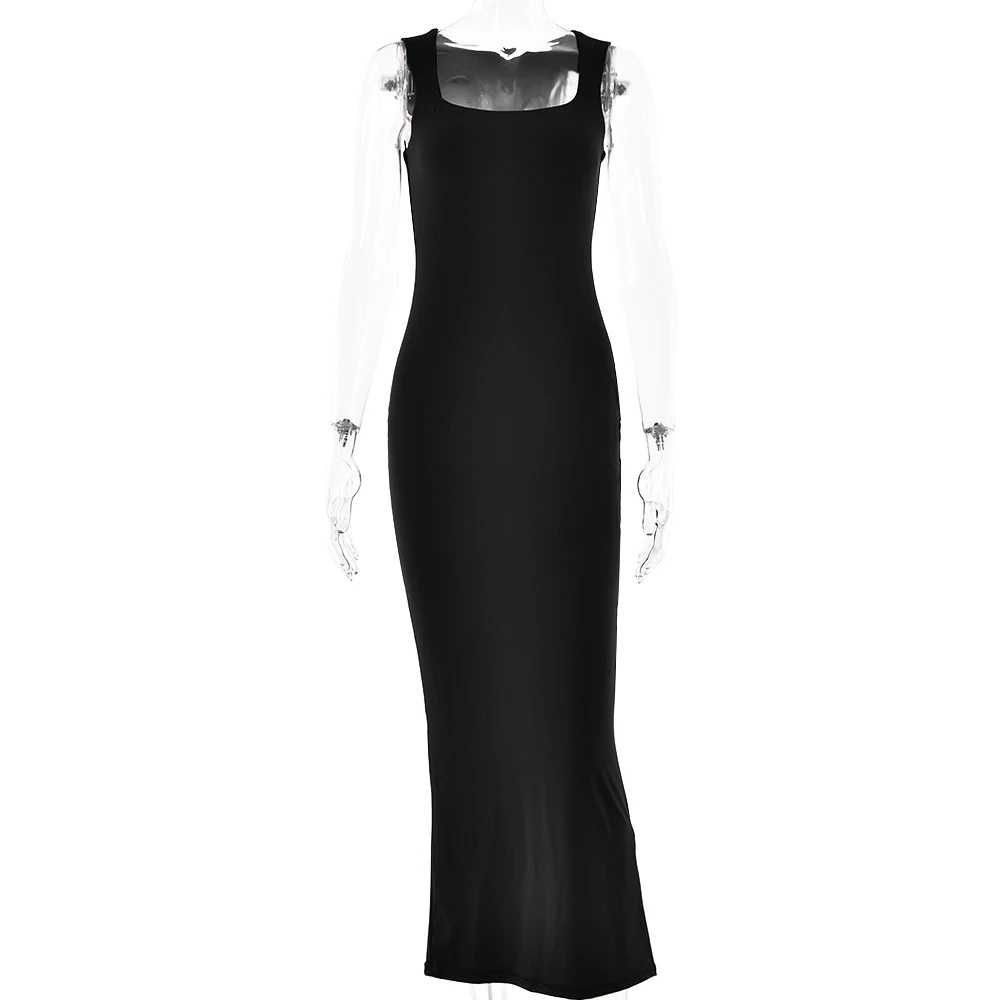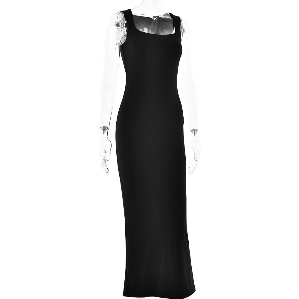 Sexy Sleeveless Square Neck Bodycon Dress Women's Elastic Tight Long Dress Female Elegant Party Club Evening Dress 2024